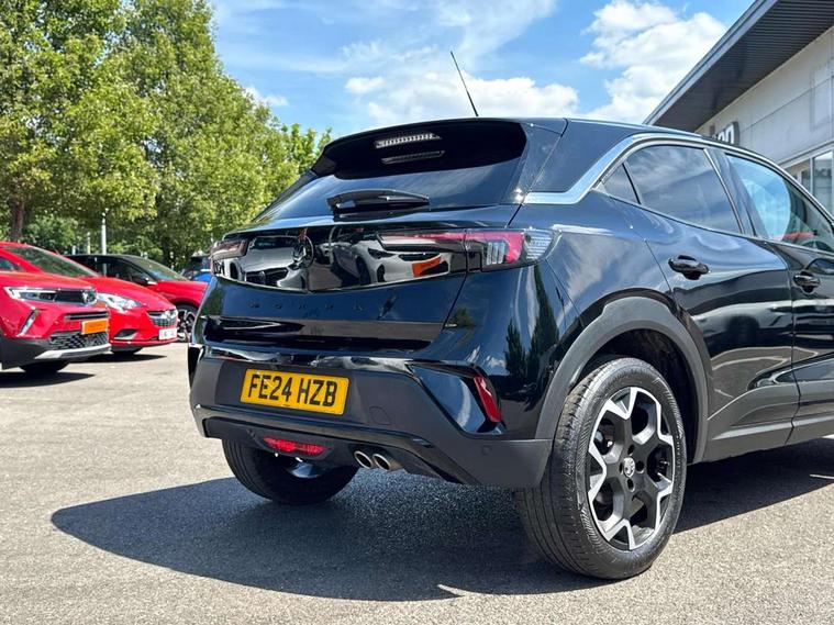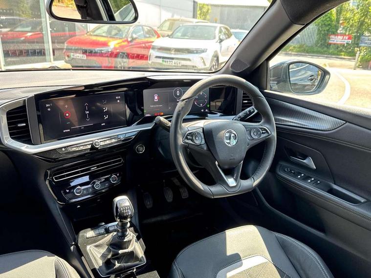 12" digital instrument cluster, Adaptive cruise control with speed limiter, Digital instrumentation with digital speedometer, rev counter, fuel and water temperature gauge, Driver drowsiness alert system, Driver information display with multi function trip computer, audio info, digital clock and outside air temperature with ice warning function, Engine start/stop button, EV information display, Extended traffic sign recognition, Front and rear parking distance sensors, Front camera and radar system, Gearshift up/down indication light, Lane keep assist system (LAS) with Lane departure warning system (LDWS), Lights on audible warning, Panoramic rear view camera, Power assisted speed sensitive steering, RDS with traffic programme, Side blind spot alert and flank guard, Smartphone integration compatible with Apple CarPlay and Android Auto, Sports switch with engine sound enhancement, Start/stop system, Vauxhall connect with e-Call, 6 speed manual transmission, 6 speakers, AM/FM stereo radio with 36 station presets, DAB Digital radio, Flexible Roof Mounted Radio Aerial, Front USB connection, Mobile phone portal - bluetooth connect, vehicle microphone, handsfree calls, SMS read out and reply, phone book access, Multimedia Navi Pro with 10" colour touchscreen, Steering wheel mounted controls, Two rear USB sockets, Adaptive brake lights, Auto high beam assist, Automatic headlamp levelling, Automatic lighting control with tunnel detection, Automatically dimming anti dazzle rear view mirror, Black door mirror housings, Black front and rear bumper inserts, Black Griffin logo and vizor frame, Black upper window moulding, Body colour door handles, Body colour front and rear bumpers, Dark tinted rear side windows + tailgate window, Electric adjustable/heated/folding door mirrors + puddle lights, Electrically operated front and rear windows with safety auto reverse and one touch up/down facility, Hazard warning lights, Heated rear window+rear wash/wipe, Integrated black tailgate spoiler, IntelliLux Matrix LED headlights with adaptive forward lighting with anti glare beam, LED 3rd brake light, LED daytime running lights, LED front fog lamps, LED side repeat indicators, LED tail lights, Rear foglight, Rear side wing doors, Reversing light, Solar heat absorbing windscreen and windows, Two speed rain-sensitive windscreen wipers with variable intermittent wipe, Windscreen and side window demist vents, 12V Accessory socket, 3 seat bench in 2nd row, 3 spoke flat bottomed leather effect steering wheel with satin chrome effect bezel, 4 speed fan with illuminated controls, 4 Way driver seat with lumbar and massage function, 6 way manual adjustable driver fore/aft, up/down with reclining seatback, 6 way manual adjustable front passenger fore/aft, up/down with reclining seatback, 60/40 split folding rear seat, Air recirculation system, Alcantara/leather upholstery, Black headliner, Cabin particulate filter - removes dust, airborne particles and pollen, Centre console with two cup holders at front and one in rear, Chrome effect interior door handles, Door pockets with two litre capacity, Driver and passenger sun visors with vanity mirror, Electronic climate control (ECC), Four adjustable facia vents, Four load restraint lashing eyes, Front centre armrest with storage, Front head restraints, Front map reading lights, Front seat back storage pockets, Fully carpeted load area, Heated front seats, Heated steering wheel, Interior courtesy light, Interior tailgate handle, Luggage compartment cover, Luggage compartment lighting, Movable boot floor, Reach + rake adjustable steering column, Single front passenger seat, Three height adjustable rear seat head restraints, Twin gas assisted tailgate struts, Black Pack with badge - Mokka, 2x Isofix child seat fitting on outer rear seats, 3x3 point rear seat belts, Anti-lock braking system (ABS), Child proof locks on rear doors, Cornering brake control, Deactivation switch for front passenger front and side impact airbags, Drag torque control, Driver and front passenger airbags, front seat side impact airbags, full size curtain airbags, Electronic brake force distribution, Electronic Stability Programme (ESP), Emergency brake assist, Enhanced automatic emergency braking with pedestrian detection, Forward collision alert at all speed, Hill start assist, Inertia reel lap and diagonal seatbelts for all seats, Seatbelt unfastened audible warning and warning light, Straight line stability control, Traction control, Tyre pressure monitoring system, Electronically protected audio equipment, Engine deadlock immobiliser, Freewheeling door locks, Key left in ignition audible warning, Keyless entry and start, Locking wheel nuts, Remote control central locking, Remote control ultrasonic security alarm system, Visible vehicle identification number, Black facia with silver trim insert, Instrument panel bar in polar silver, Light grey trim inserts on front doors, 18" bi colour alloy wheels,
