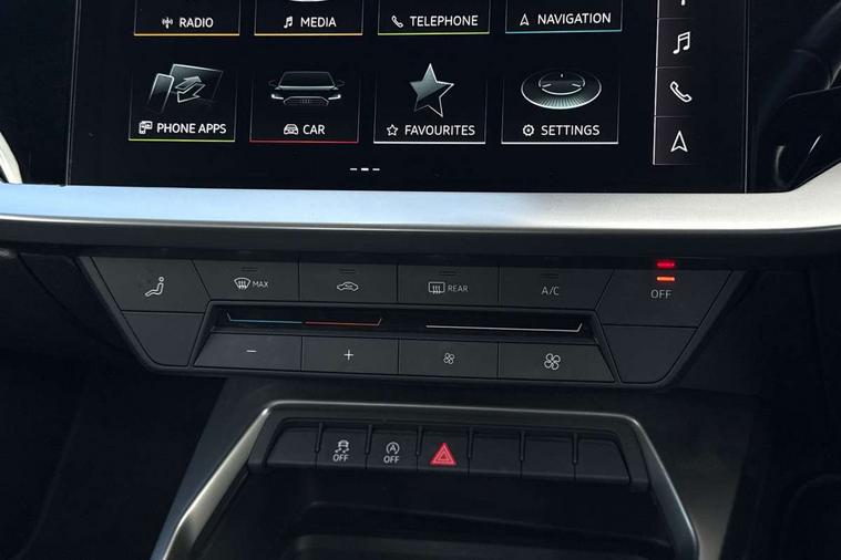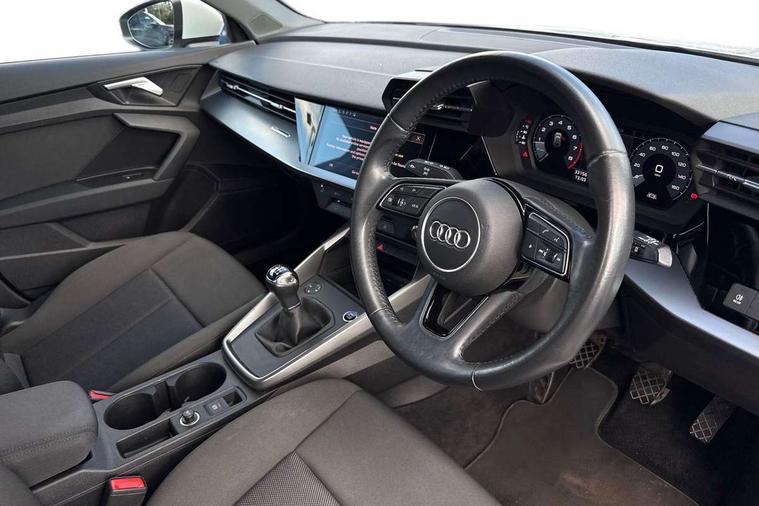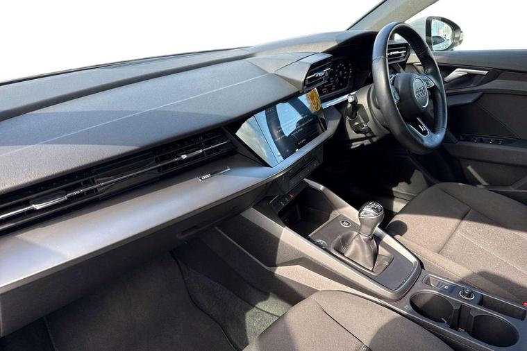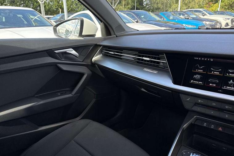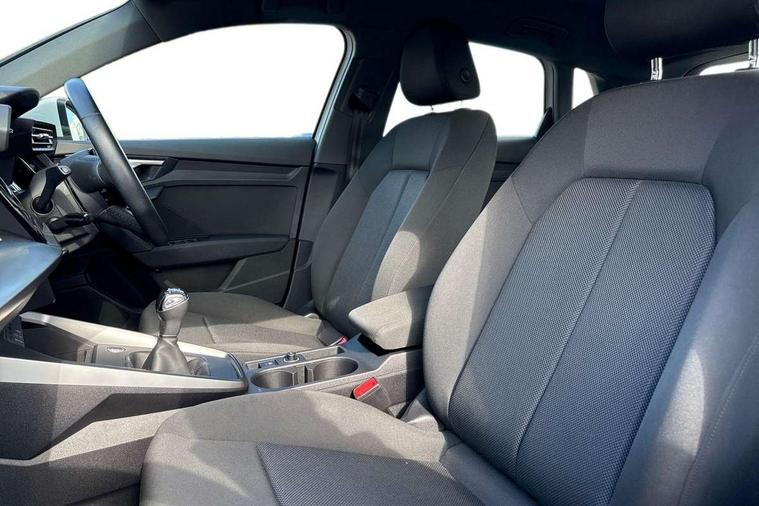 Black decorative window trim, Inlays with silk effect paint in platinum grey, 16" 5 double arm alloy wheels, Anti theft alarm, Anti-theft wheel bolts, Electronically operated child lock, Immobiliser, Remote control central locking, 1xUSB-A and 1xUSB-C connection, 6 passive loudspeakers, DAB Digital radio, 3x3 point rear seat belts, Driver and front passenger airbag with passenger airbag deactivation, Electronic Stabilisation Control (ESC) including ABS, ASR and EDL, First aid kit with warning triangle and 2 safety vests, Hill hold assist, Pre-sense front with pedestrian and cyclist detection, Seatbelt monitoring, Tyre pressure loss indicator, Acoustic glass windscreen, Auto dimming frameless rear view mirror, Body colour exterior mirrors, Body colour front spoiler blade, Body colour roof spoiler, Electrically adjustable/heated/folding/dimming door mirrors with kerb view includes integrated LED indications + kerb view function for passenger side, Front electric windows, LED daytime running lights, LED headlights and halogen rear lights, Light and rain sensors, Radiator grille and frame in grained matt black and honeycomb look, Rear diffuser in grained matt black, Rear electric windows, Rear side air outlets in grained matt black, Rear window, rear door windows and rear side windows in clear glass, Rear wiper, Side air inlets in grained matt black, 12V socket and storage compartment in front centre console, 3 spoke leather multifunction steering wheel, 60/40 split folding rear seat, Front and rear headrests, Front centre armrest, Front/rear floor mats, Height and reach adjustable steering wheel, Interior lighting - Front and rear roof module including reading lights, glove compartment light and right hand side, Luggage compartment floor covering, Manual air conditioning, Manual boot compartment lid, Manually adjustable front seats, Seat side bolsters, Steel grey cloth headlining, Audi connect emergency call and service, Audi smartphone interface, Audi Virtual Cockpit - 10.25" digital and colour instrument cluster, Automatic start/stop system with recuperation, Bluetooth interface, Collision avoidance assistant, Cruise control, Electromechanical power speed sensitive steering, Lane departure warning system, MMI Navigation Plus with high resolution 10.1" colour touch screen display, Rear parking sensors, Service indicator, Trip computer, Voice control system with natural language interaction, Standard suspension,
