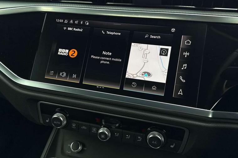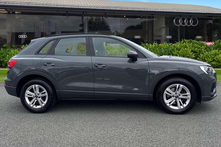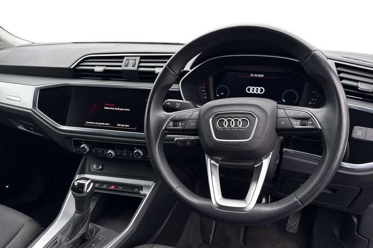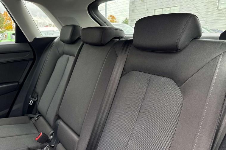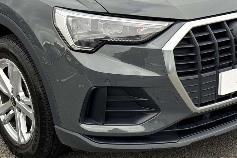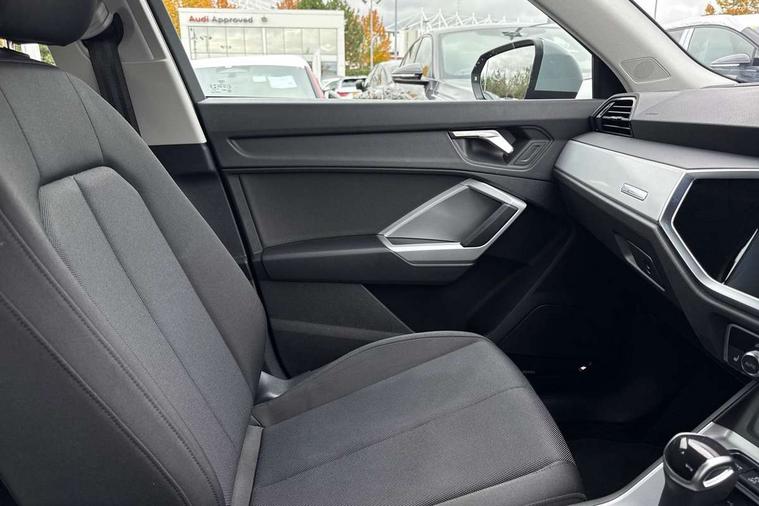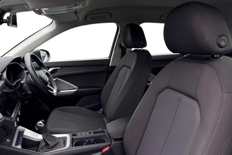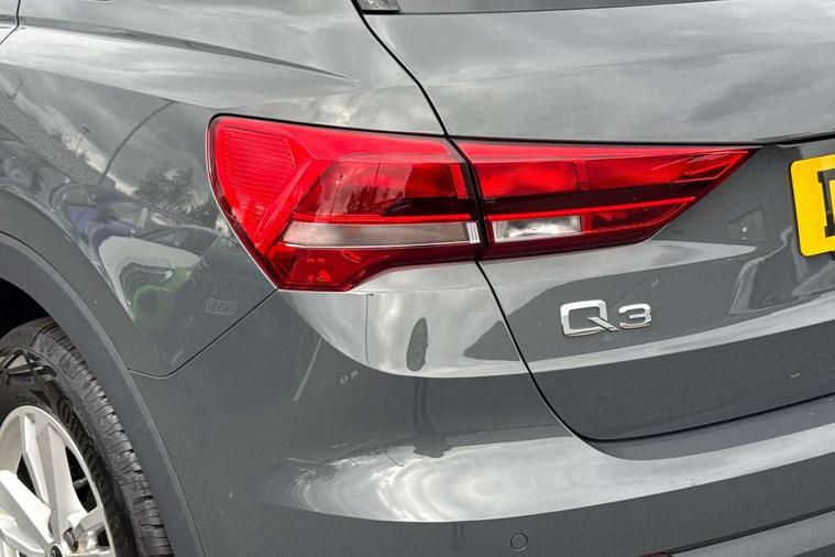 Amazon alexa Integration, Audi drive select, Audi lane departure warning, Audi Virtual Cockpit - 10.25" display, Bluetooth interface, Camera based traffic sign recognition, Legal emergency call, MMI Navigation Plus with high resolution 10.1 inch touchscreen colour display, Power operated tailgate, Progressive steering, Service interval indicator, Smartphone interface includes wireless Apple carplay/Android Auto, Start stop system with recuperation, Voice control system with natural language interaction, Standard suspension, 2 USB-C ports with charge and data functions, 6 passive loudspeakers, DAB digital radio module, Acoustic windscreen, Auto dimming frameless rear view mirror, Black roof rails, Body colour door mirrors, Diffuser in grained anthracite, Electrically folding, adjustable and heated door mirrors with integrated LED side indicators and kerb view function for passenger side, Exterior bumper with wheel arch trims and side sill trims in grained black matt, Front and rear electric windows, Grained radiator protective grille, Halogen rear lights, LED headlights with LED daytime running lights, Rain and light sensors, Rear side wing doors, Rear wiper, Third brake light, Variable front intermittent wipers, 12V socket in rear centre console, 3 seat bench in 2nd row, 3 spoke multi-function leather steering wheel, 40:20:40 folding with manual adjustment for 60:40 forwards/backwards position and backrest angle, Dual zone electronic climate control, Front and rear floor mats, Front and rear headrests, Front and rear roof module including reading lights, Front centre armrest, Glove compartment lighting, Height and reach adjustable steering wheel, ISOFIX child seat mounting for front passenger with airbag deactivation and outer rear seat including top tether attachment point for outer rear seats, Luggage compartment light, Lunar silver cloth headlining, Manual front seats with height adjustment, Single front passenger seat, Stainless steel luggage compartment sill finisher, Non smoking pack - Q3, 3x3 point rear seatbelts, 6 airbags - Driver, front passenger, curtain and side windows, Audi pre-sense front with pedestrain and cyclist recognition, Electrically operated child locks on rear doors, Electromechanical parking brake, Electronic stabilisation control including ABS, ASR and EDL, Front seatbelt reminder, Hill descent control, Hill hold assist, Pre sense basic, Seatbelt monitoring, Tyre pressure warning, Warning triangle and first aid kit, Anti theft alarm, Anti theft wheel bolts, Immobiliser, Remote central locking, Detail dashboard around MMI touch colour display in glass look, black with surround in aluminium look, Micrometallic silver inlay, 17" 5 twin spoke design alloy wheels,