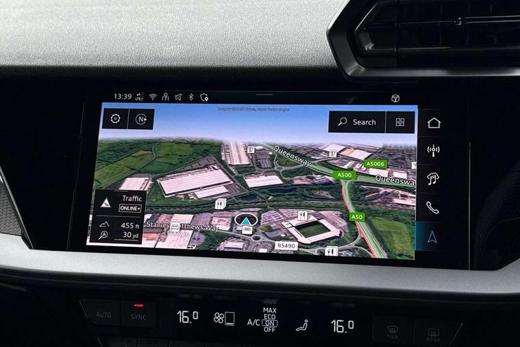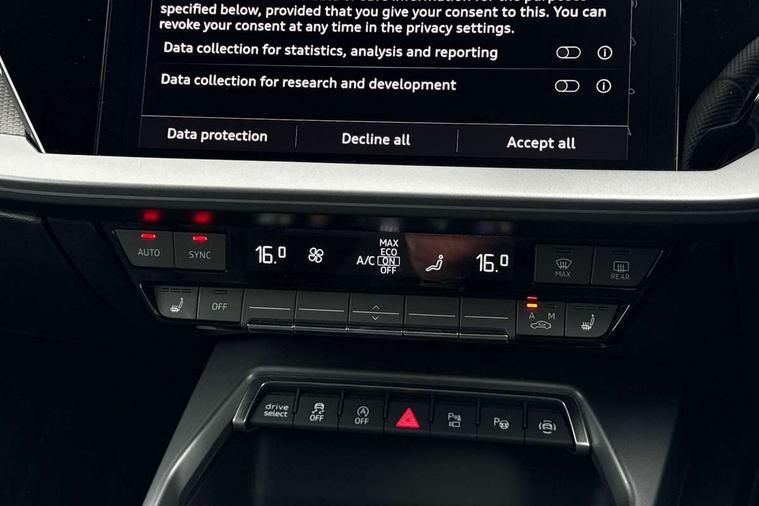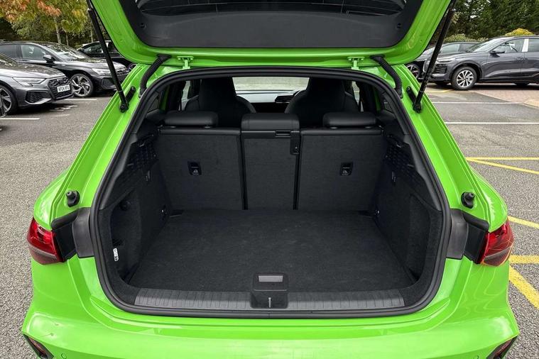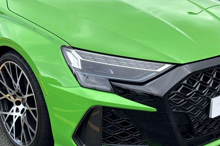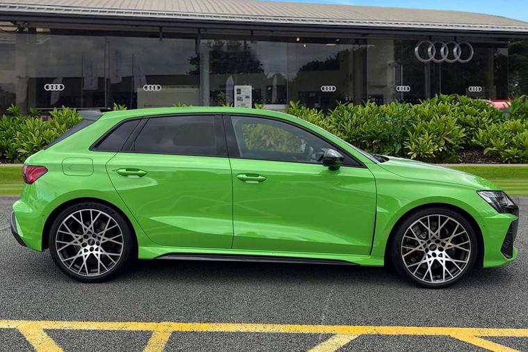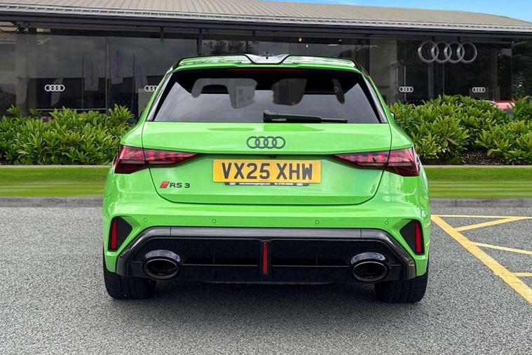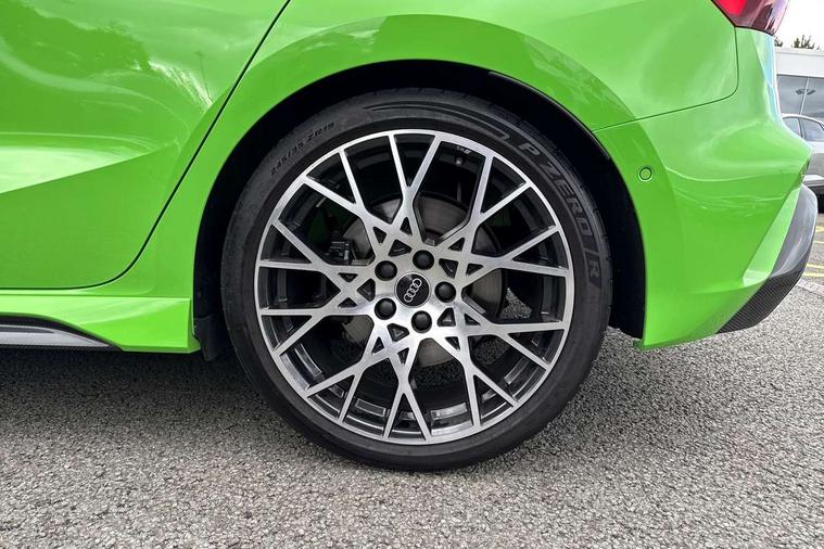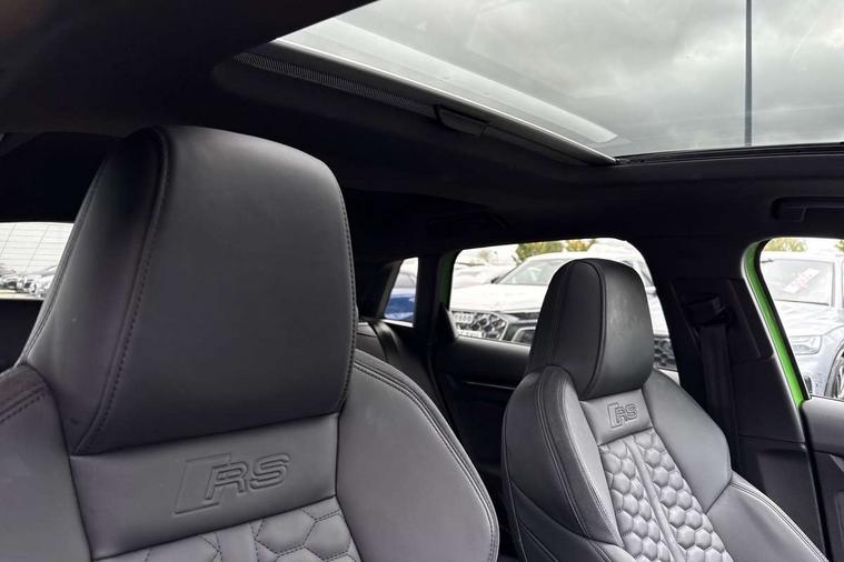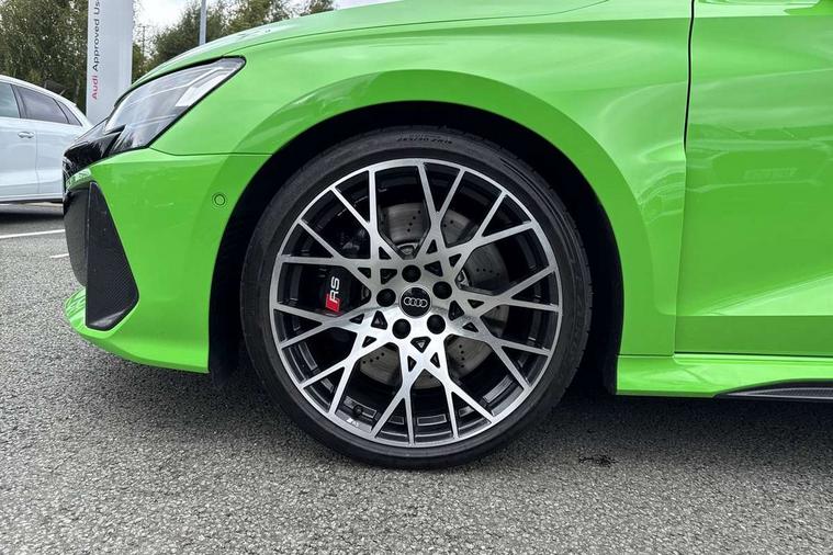 Adjustable speed limiter, Audi drive select comfort, auto, dynamic and efficiency, Audi smartphone interface with app store includes wireless Apple carplay, Android auto and Amazon alexa integration, Audi virtual cockpit plus with RS specific design and 12.3" display with additional graphic display options, Automatic start/stop system with recuperation, Bluetooth interface, Camera based traffic sign recognition, Collision avoidance assistant, Distraction and Fatigue warning, e-Call (emergency call), Lane departure warning system, MMI Navigation Plus with high resolution 10.1" colour touch screen display, Park Assist with parking system Plus, Progressive steering, RS specific driving modes - RS Individual, RS Performance and RS Torque rear, Voice control system with natural language interaction, Adaptive suspension with audi drive select, Increase of top speed to 174 mph, Quattro permanent four wheel drive, Audi Phonebox light with wireless charging, DAB Digital radio, USB ports with charging function in the rear, Audi beam LED projection of RS logo on ground as you exit, Auto dimming frameless rear view mirror, Automatic dynamic range control, Carbon door mirror housings, Carbon fibre engine cover, Dipped beam, main beam, position light and turning light, Electrically adjustable/heated/folding/auto dimming door mirrors with integrated LED indications + kerb view function for passenger side, Exterior model badging, Front electric windows, Heat insulating glass windscreen, LED 3rd brake light, LED brake lights, LED daytime running x3, LED rear number plate lights, LED reverse light, LED tail lights, Light and rain sensors, Privacy glass - dark tinted rear window, rear door and side windows, Rear electric windows, Rear side wing doors, Rear wiper, Roof edge spoiler in carbon, RS dual branch exhaust system with two chrome plated oval tailpipe trims, 12V socket and storage compartment in front centre console, 3 seat bench in 2nd row, 3 Spoke flat top and bottomed black leather multi function steering and gear shift paddles, 3-zone deluxe automatic air conditioning, 40/20/40 split folding rear seat bench, Black cloth headlining, Front and rear headrests, Front centre armrest, Front door sill trims with RS 3 logo, Front sports seats RS embossed logo, Front/rear floor mats, Heated front seats, Height and reach adjustable steering wheel, Manual boot compartment lid, Rear centre armrest with cupholder, Seat side bolsters, Single front passenger seat, Stainless steel pedals and front footrest in black, Vanadium look - Interior door handles, Door trim, power latching, Air vents, window controls, mirror adjust, rear door lock, Selector lever in centre console, Black Styling plus package - RS3, Extended ambient lighting package Pro with Multi-coloured contour lighting of instrument panel - RS3, RS exterior features pack in carbon and gloss black - RS3, RS sport suspension pack - RS3, Storage package - RS3 Sportback, 3x3 point rear seat belts, Driver and front passenger airbag with passenger airbag deactivation, Electronic Stabilisation Control (ESC) including ABS, ASR and EDL, First aid kit with warning triangle and 2 safety vests, Hill hold assist, Pre-sense front with pedestrian and cyclist detection, RS steel brakes, Seatbelt monitoring, Tyre pressure loss indicator, Anti theft alarm, Anti-theft wheel bolts, Electronically operated child locks, Inlays in carbon atlas structure, Tyre repair kit,