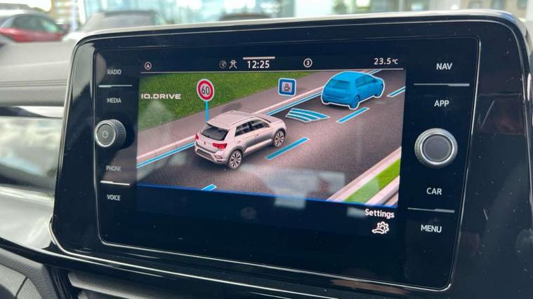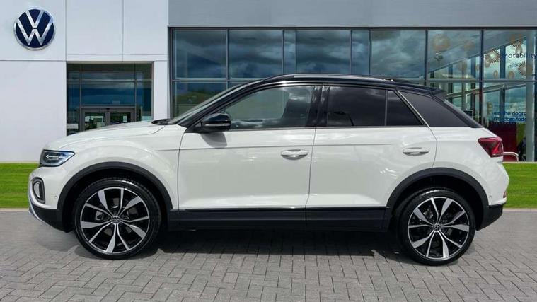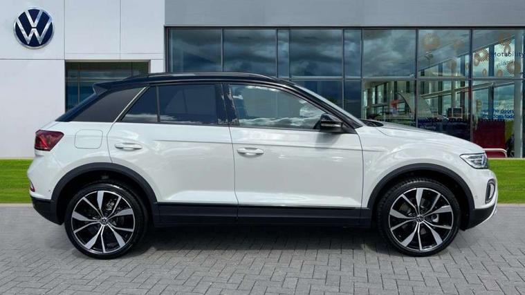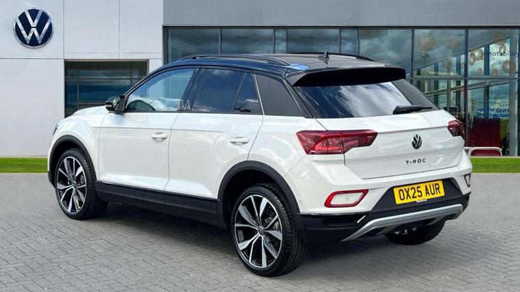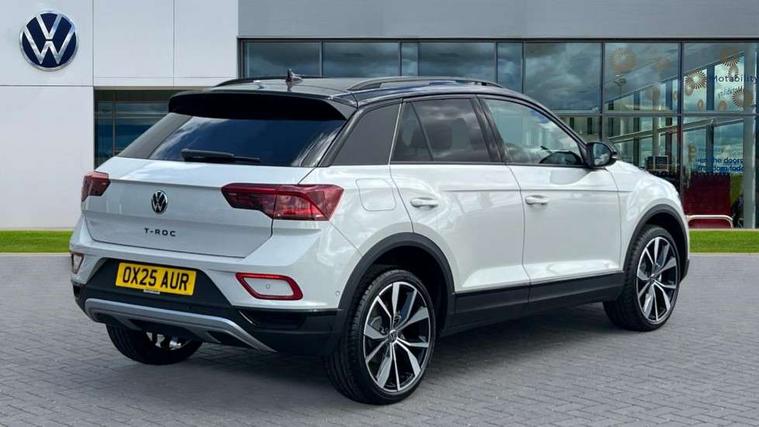 10.25" Digital cockpit pro, Advanced driver attention and drowsiness monitor, Dynamic road sign display, Emergency call service, Lane keeping system Lane Assist, Mobile phone interface, Modified key software - reduce switch off time for key status change to Long no motion, Online services, Park assist including front and rear parking sensors, Power assisted speed sensitive steering, Rear view camera, Service interval indicator, Tailgate/trunk lid release from outside, Think blue trainer driver tips and journey analysis, Warning sound and light for front seatbelts unfastened, Wireless app connect, Battery regeneration during braking, Start/stop function with battery regeneration, DAB Digital radio, Diversity antenna for FM reception, Music playback - MP3, WMA and AAC files, Premium USB cable in choice of either Apple or Android smartphone compatibility, SD card slot, Simultaneous pairing of 2 compatible mobile devices, Title and cover art display, We Connect and We Connect Plus functionality, Adhesive film in carbon look on the C-pillars, Advanced dynamic light assist for LED matrix headlights, Auto dimming interior rear view mirror, Automatic hazard lights activation under emergency braking, Black roof rails, Body colour sports bumpers with silver metallic underbody fascia, Body coloured exterior mirror housings and door handles, Dynamic cornering light, Dynamic headlight range control with self adjusting whilst driving, Electrically adjustable and heated door mirrors, Extended roof spoiler, Exterior ambient lighting, Exterior mirrors aspherical on driver side, convex on front passenger side, External USB type C socket and charging sockets, Front windscreen wiper with intermittent wipe and 4 position delay, Heated rear window, Illuminated front grille, IQ LED matrix headlights, LED 3rd brake light, LED rear number plate lights, LED rear tail lights with dynamic turn signal, LED separate daytime running light, Light mode for poor weather, rain, fog or snow, Power windows with comfort operation and circuit breaker, Privacy glass for rear side windows and rear window, Rain sensor, Rear exhaust tailpipe, Rear fog light on one side and reversing lights on both sides, Rear side wing doors, Rear wash/wipe with intermittent wipe setting, Remote electrically foldable door mirrors, puddle lights and reverse activated passenger's door mirror, Tilting and sliding panoramic sunroof with rear panoramic sunroof, 12V power socket in centre console, 3 rear head restraints, 3 seat bench in 2nd row, 4 load lashing points in luggage compartment, Air care climatronic air conditoning system with active combination filter and 2-zone temperature control, Black roof lining, Chrome plated radiator grille inserts, air vent surrounds and light switch surrounds, Door and side trim panel with leatherette insert, Drawer under drivers seat, Front + rear carpet mats, Front centre armrest, Front comfort sports seats, Front cupholders x 2, Front footwell illumination, Front seat back storage pockets, Glove compartment door with light, Instrument lighting, white adjustable panel illumination, Interior ambient lighting and surround lighting, Interior light delay, Isofix child seat preparation, Leather gearshift handle, LED interior light with switch off delay/dimmer and 2 front/rear LED reading lights, Load-through provision with cup holder when folded down ('Unsplit rear seat bench, split folding backrest, with centre armrest), Luggage compartment lighting, Non-folding front passenger seat backrest, Single front passenger seat, Storage compartment in left and right luggage area, Storage compartment in rear doors, Storage compartments in driver and front passenger doors, Sunvisors with illuminated vanity mirrors, Variable boot floor, height adjustable and removable, Black design pack - T-Roc style design, Driver assistance pack without proactive passenger protection - T-Roc, Easy open package with safelock - T-Roc, 3 point height adj front seatbelts + pretensioners, 3 point seatbelts in outer rear with ECE label, ABS, Child locks on rear doors, City emergency braking and pedestrian monitoring, Driver and front passenger airbag with front passenger airbag deactivation, Driver and front passenger safety-optimised head restraints, Drivers seatbelt reminder, Electronic parking brake, Electronic Stability Control (ESC) inc EDL (Electronic Differential Lock) and ASR (Traction Control), Front and rear passengers curtain airbag system including front side airbags, Predictive pedestrian protection, Rear disc brakes, Two tone horn, Tyre pressure loss indicator, Volkswagen roadside assistance, Black decorative trims, Piano black decorative inserts in dashboard and front door trim panels, Tool kit, Trims for alloy wheels, Tyre mobility kit including compressor and sealing foam,