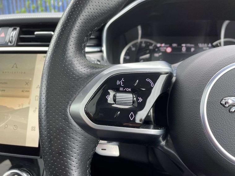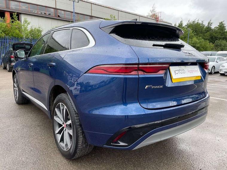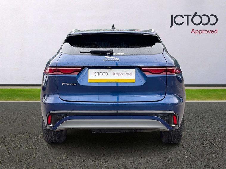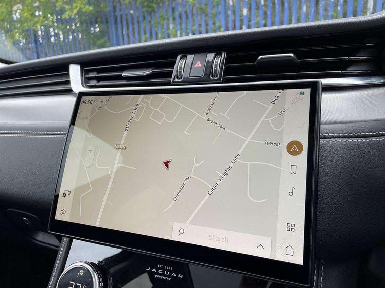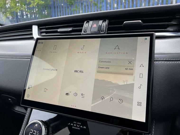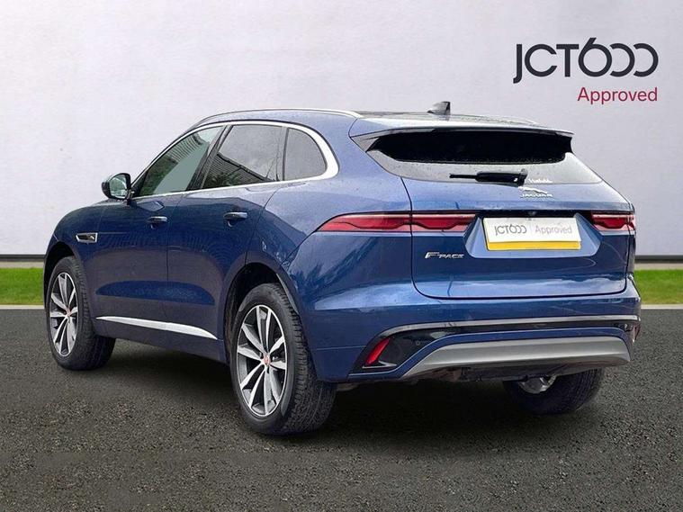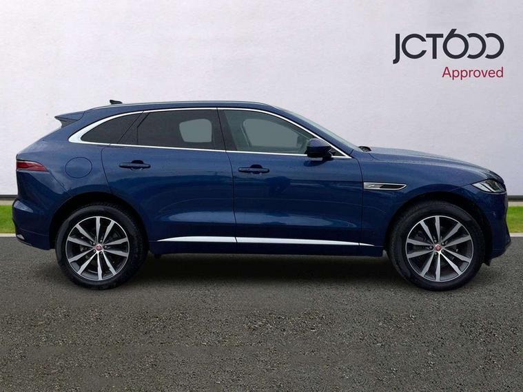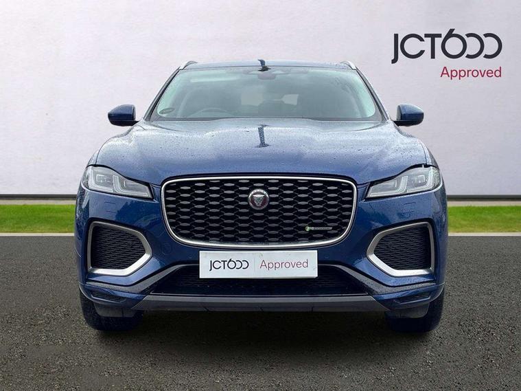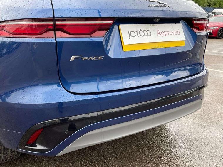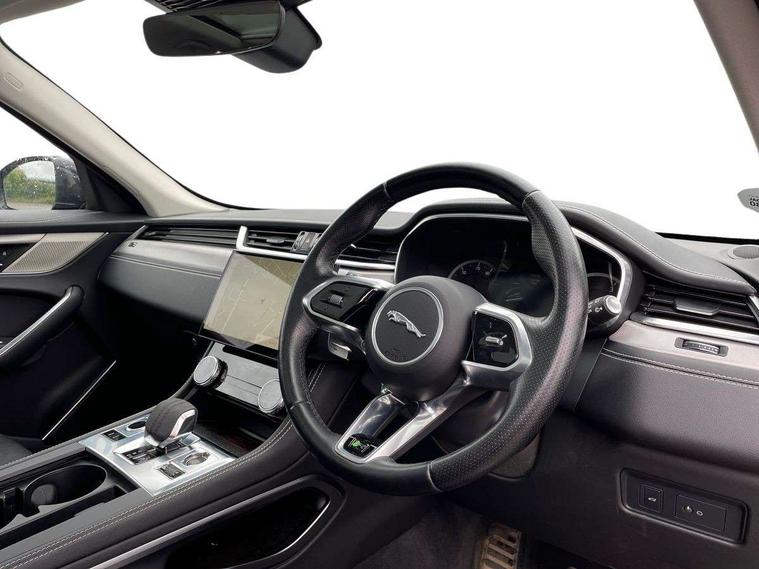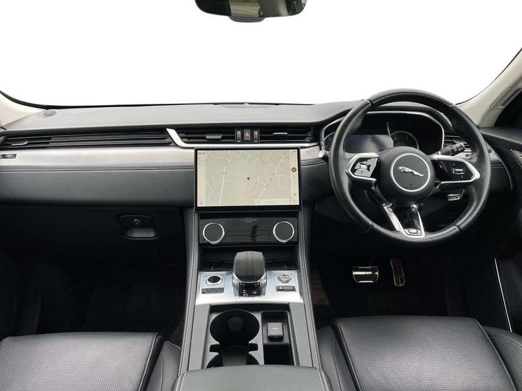 11.4" touchscreen, Android Auto, Apple car play, Blind spot assist, Bluetooth connectivity, Clear exit monitor, Driver alert system, Driver condition monitor, eCall emergency call system, Eco driving style assistant, Electric power assisted steering, InControl remote, Jaguar Toggle shift selector, Lane departure warning system, Lane keep assist, Outside temperature gauge, Personalisation profile management, Pivi pro connected navigation system with app interface and media storage, Pro services and wifi hotspot, Push button starter, Rear traffic monitor, Service interval indicator, Speed proportional steering, Start up sequence with movement in dials and lighting, Traffic sign recognition with adaptive speed limiter, Trip computer, Voice control system, 8 speed automatic transmission, All terrain progress control, All Wheel Drive (AWD), Open differential with torque vectoring by braking, AM/FM radio, Bluetooth streaming, DAB Radio (Digital Audio Broadcasting), Dynamic volume control, InControl apps, InControl protect, iPod integration, 3 flash lane change indicators, Animated directional indicators, Approach Illumination, Auto dimming rear view mirror, Automatic headlights, Body colour door mirrors, Electric heated/power fold memory door mirrors with approach lights and auto dimming driver side, Electric windows with one touch open/close and anti trap, F-Pace and R Dynamic badge, Green tinted glass, Heated front windscreen + heated washer jets, Heated rear window with timer, Jaguar script and leaper, LED High level third brake light, LED tail lights, Non acoustic front windscreen, R Dynamic badge on side door, Rain sensor windscreen wipers, Rear fog lights, Rear metal tread plates, Rear side wing doors, Rear wiper, Trailer stability assist, Variable front intermittent wipers, 12V power point front, 3 rear headrests, 3 seat bench in 2nd row, Air distribution speed, Bright metal foot pedals, Centre armrest console, Centre console with side storage, Deletion loadspace storage rails, Door sill tread plates, Fold flat front seats, Front centre armrest with storage compartment, Front door storage space, Glovebox finisher with jaguar script, Heated steering wheel, Hooks in loadspace, Illuminated glovebox, Interior front door handles with separate locking switches, ISOFIX on outer rear seats, Jaguar sense, Luggage tie downs in loadspace, Mist sensing, Multifunction steering wheel, Overhead lighting console, Overhead stowage for sunglasses, Passive front head restraints, Premium cabin lighting, Premium carpet mats, R-Dynamic branded leather steering wheel, Rear air vents, Rear armrest with twin cupholders, Rear centre headrest, Rear door storage space, Reversible boot floor, Satin chrome gearshift paddles, Shopping bag hook, Single front passenger seat, Sunvisors with illuminated vanity mirrors, Twin front cupholders with cover, Online Pack with data plan - F-Pace, 355mm front brakes and 325mm rear brakes, 3x3 point rear seatbelts, ABS, All surface progress control (ASPC), Brake pad warning light, DSC - Dynamic Stability Control, Electric parking brake (EPB), Emergency brake assist, Front airbags with passenger seat occupant detector, Front and rear seatbelt reminder, Front side airbags, Full length side window curtain airbag, Hill launch assist, Power operated child locks, Torque vectoring brake, Traction control, Tyre pressure monitoring system, Immobiliser, Keyless entry, Keyless Start, Locking wheel nuts, Perimeter alarm, Remote central locking, Valet mode,