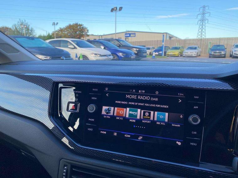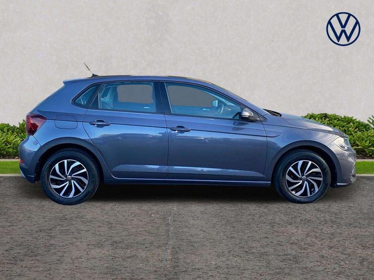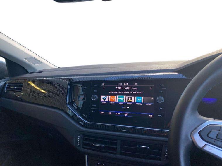 Adaptive cruise control without follow-to-stop and speed limiter, Advanced driver attention and drowsiness monitor, Bluetooth mobile phone interface, Dynamic road sign display, Emergency call service, Power assisted speed sensitive steering, Preparation for navigation system with media and internet package, Preparation for We connect and We connect plus, Speedo and rev counter, electronic odometer, trip, service interval display and exterior temperature gauge, Standard rear axle, Travel Assist - Lane keeping system and traffic jam assist, Travel assist including emergency assist, Trip computer, Warning signal and warning light for front and rear seatbelts not fastened, Washer fluid level indicator, Wireless app connect, Front wheel drive, Rear shock absorpion, Start-stop system with battery regeneration (recuperation - energy recovery during braking), DAB Digital radio, Diversity antenna for FM reception, Front and rear 6 speakers, Automatic dimming interior rear view mirror, Automatic headlight control with LED separate daytime running lights with coming/leaving home function, Body colour bumpers with chrome inserts, Body colour door handles, Body colour door mirrors, Electric front windows, Engine badge deletion, Headlight range adjustment, Heat insulating and laminated safety glass windshield, Heat insulating darkened glass in side and rear windows, Heat insulating glass windscreen, LED Headlights, LED rear combination lamps, Power folding adjustable/heated exterior mirrors and front passenger exterior mirror lowering function, Rain sensor, Rear electric windows, Rear fog light, Rear side wing doors, Rear windscreen washer and wiper with interval delay, Third brake light, 12V power socket in centre console, 2 front and 2 rear reading lights with switch off delay and dimmer, 2 USB-C ports in the front, 2 USB-C charging sockets on the center console in the rear, 3 rear head restraints, 60/40 split folding rear seat and rear seat bench not split, Ceramique roof lining, Chrome plated radiator grille inserts, air vent surrounds and light switch surrounds, Door and side trim panel, Driver and front passenger seat height adjustment, Driver/passenger sunvisors with illuminated vanity mirrors, Front centre armrest, Front seat backrest storage pockets, Front standard seats, Handbrake lever handle in leather, Hartley/Thomas cloth upholstery, Headliner in recycled material, Isofix child seat preparation easy-fit (for two outer rear seats, and front passenger seat) compatible with I-size, Leather trimmed gear knob, Luggage compartment cover, Luggage compartment lighting, Removable luggage compartment floor, Single front passenger seat, Standard climatic zones, Standard pedal cluster, Three spoke leather wrapped multifunction steering wheel, Light and vision pack - Polo, 3 point height adj front seatbelts + pretensioners, 3x3 point rear seatbelts, ABS, Driver and front passenger airbag with front passenger airbag deactivation, Drivers and front passengers safety optimised head restraints, ESC (Electronic stability control) + EDL (Electronic Differntial lock) and ASR (Traction control), Extended and predictive pedestrian/ cyclist protection, Front assist with autonomous emergency braking (for Adaptive Cruise Control ACC up to 130 mph), Front curtain and side airbags with center airbag, Front disc brakes, Hill hold control, Manual child lock in rear doors, Rear drum brakes, Single tone horn, Tyre pressure loss indicator, Alarm with interior protection, Anti-theft alarm system with interior monitoring, backup horn, and towing protection, Anti-theft wheel bolts, Electronic engine immobiliser, Lava stone black gloss/matt decorative inserts in dash and front door panels, Low rolling resistance tyres,