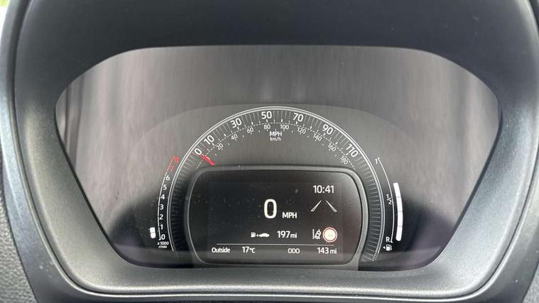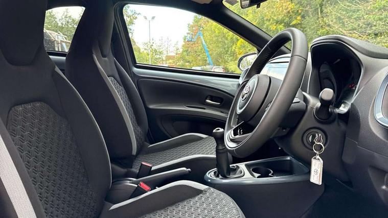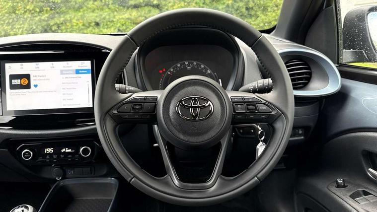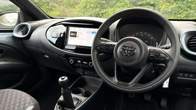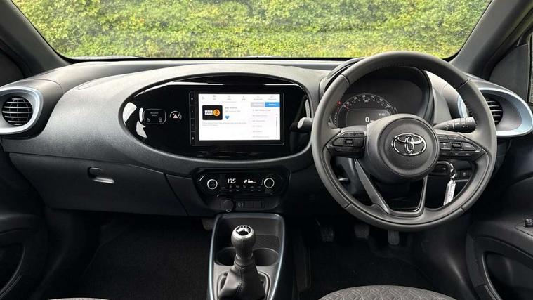 4.2" TFT colour screen, Adjustable speed limiter, Analogue speedometer, Bluetooth connectivity, Digital tachograph, Driver attention alert system, eCall emergency call system, Electric power steering, Intersection turn assist, Key reminder warning, Noise reduction kit, Pre collision system with emergency steering assist, Reversing camera with static guide lines, Smart phone integration with Apple car play/Android Auto, Speed limit display, Start and stop, Vehicle Stability Control (VSC), 4 speakers, 9" HD multimedia display touch screen with Toyota smart connect, DAB digital audio broadcast, USB connector, Auto headlights, Auto wipers, Automatic headlights cut-off, Bicycle towing hook, Black contrast roof, Black side protection mouldings, Black wheel arch mouldings, Body colour door handles, Body coloured front bumper, Boot door scuff plate, Eclipse black rear bumper, Electric heated door mirrors, Follow me home headlights, Front fog lights, Front power windows, Gloss black door mirrors, Gloss black upper front grille, Headlight cut-off reminder, LED daytime running lights, LED front light guide, LED High mounted stop lamp, Manual day/night rear view mirror, Manual headlight levelling, Pagoda roof, Power adjustable door mirrors, Power back door, Privacy glass, Projector halogen headlights, Rain sensor, Rear combination lights LED bulb type, Rear side wing doors, Rear windscreen defogger, Rear windscreen wiper, Short antenna, Variable intermittent windscreen wipers, 12v power outlet - front, 2 seat bench in 2nd row, 3 spoke leather steering wheel, 50/50 split folding rear seat, Adhesive roof headlining, Adjustable speed limiter switch on steering wheel, Audio and telephone switches on steering wheel, Auto air conditioning, Black insert on steering wheel, Black roof lining, Boot light, Centre room light, Chrome interior door handles, Chrome surround on air conditioning buttons, Clean air filter, Console box storage in body color, Fabric upholstery, Floor mats, Front and rear cup holders, Front head rest deco art, Front head restraints, Height adjustable driver seat, Intelligent adaptive cruise control switch on steering wheel, ISOFIX child restraint system on rear seats, Lane departure alert switch on steering wheel, Leather gearshift knob, Manual tilt steering wheel, Manually reclining and sliding driver seat, Manually reclining and sliding front passenger seat, Multimedia switches on steering wheel, Pollen filter, Rear door pockets, Rear head restraints, Satin silver insert on gear shift knob, Single compartment glovebox with lights, Single front passenger seat, Soft tonneau cover, Sun visors with mirror on driver and passenger side, Voice recognition switch on steering wheel, Toyota safety sense pack - Aygo X, Anti lock braking system + Electronic brake force distribution, Child safety door lock, Emergency brake light signal (EBS), Hill start assist control (HAC), Passenger airbag on/off switch, Seat belt reminder for front and rear seats, Supplement restraints system (SRS) - 6 airbags, Traction control, Tyre pressure warning system, Immobiliser, Remote power door locks, Black wheel centre caps, Tyre repair kit,
