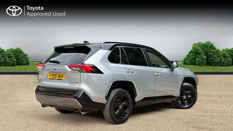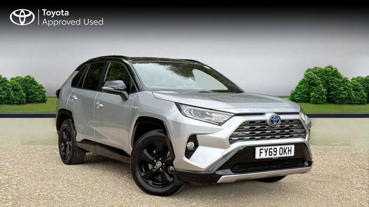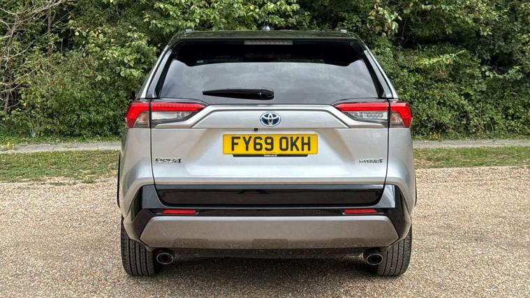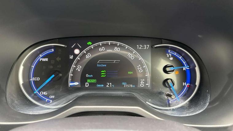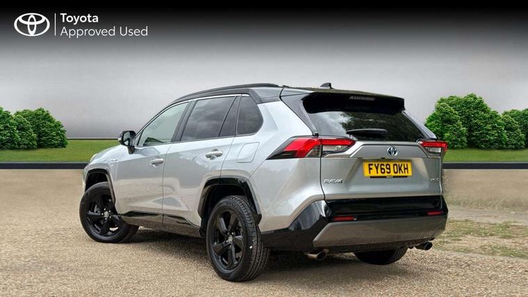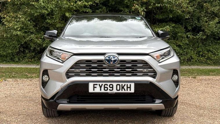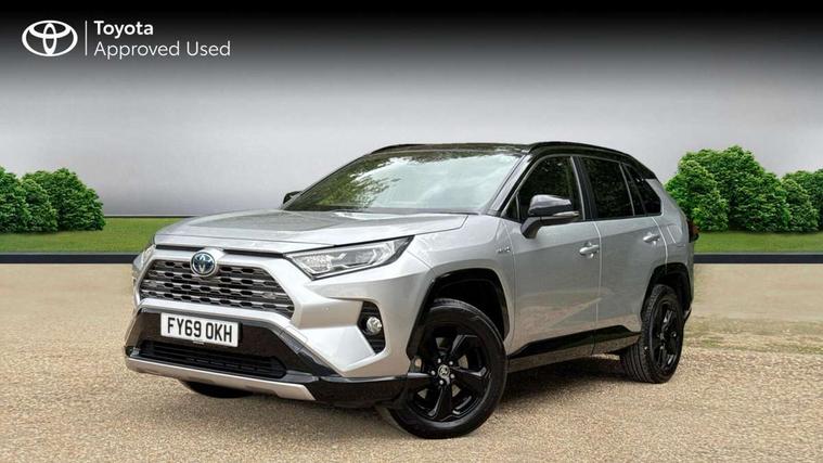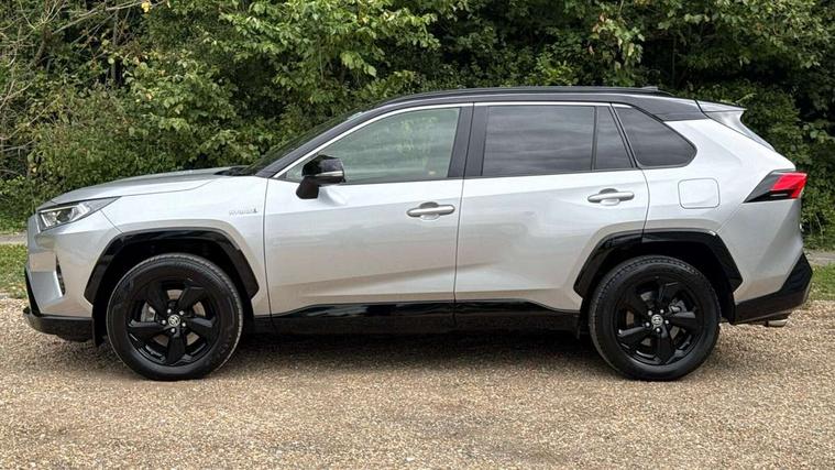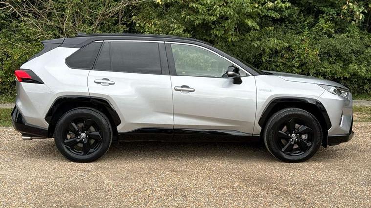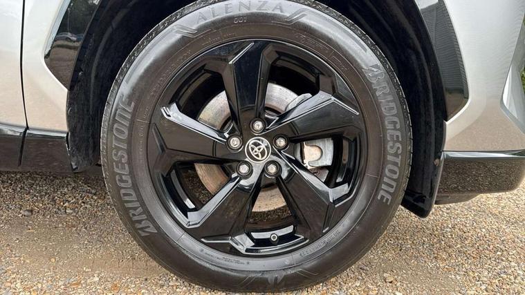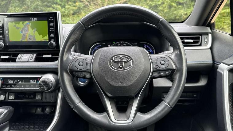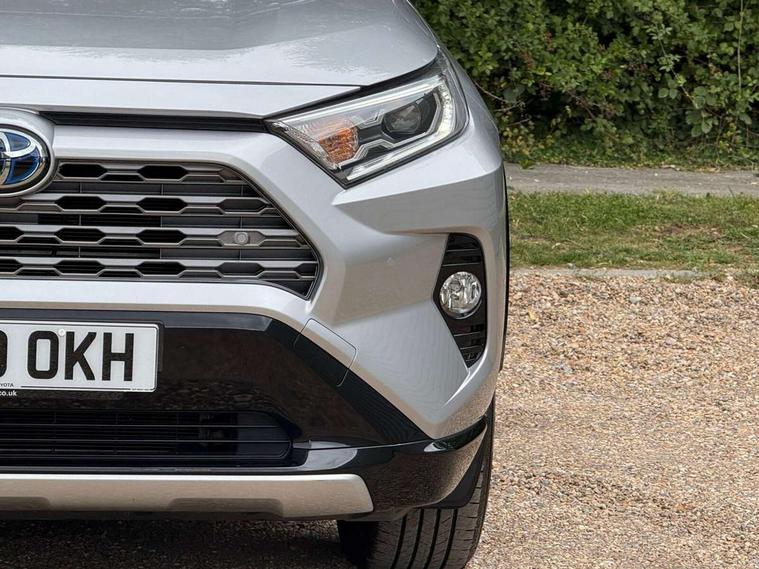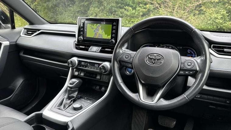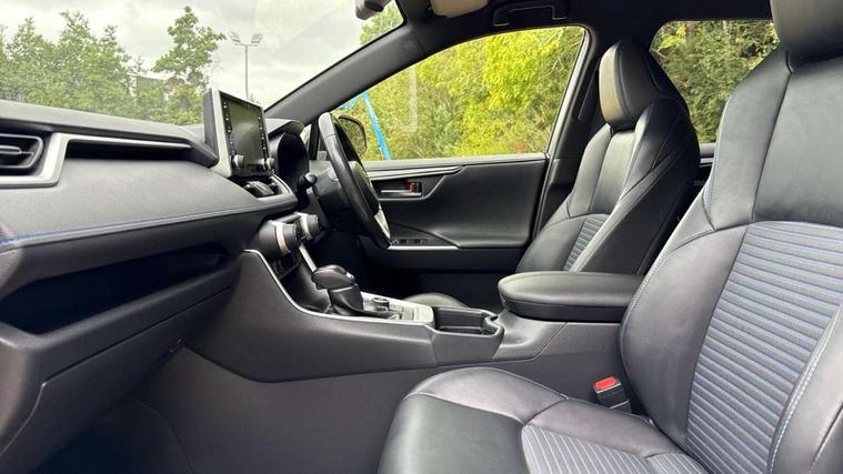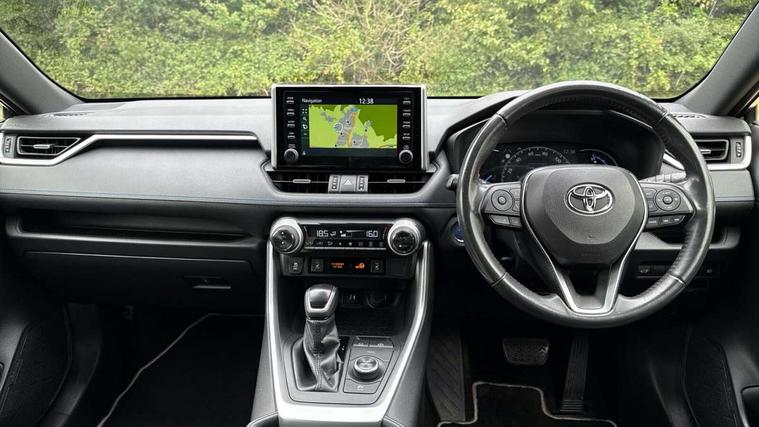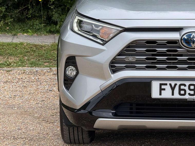 7" colour TFT display, Adaptive cruise control with lane trace assist, Adjustable speed limiter, Blind spot monitoring with rear cross traffic alert, Bluetooth system, Cyclist Detection, Drive mode selector, eCall emergency call system, ECO-driving indicator, Electric power steering, Hybrid system indicator, Lane departure warning system, Lights on warning, Night Time Pedestrian Detection, Pedestrial detection, Power boot opening and closing, Rear parking camera, Rear parking sensors, Remote boot door release in cabin, Tachometer, Touch 2 Go navigation system including 3D maps and voice control, Traffic sign recognition, Trip computer, Voice control system, Vehicle Stability Control (VSC), 6 speakers, 8" Multimedia display touch screen, Auxiliary socket for external MP3 player, DAB audio, Steering wheel mounted audio controls, Toyota touch media system, USB connection, Auto dimming interior mirror, Auto high beam, Automatic headlamp levelling, Automatic headlights, Automatically retractable door mirrors, Bi-tone black roof, Black door mirrors, Black rear spoiler, Black roof rails, Black Shark-fin antenna, Body colour door handles, Body coloured bumpers, Door mirror puddle lights, Electric adjustable door mirrors, Emergency brake-light signal (EBS), Follow me home headlights, Front fog lights, Gloss black front bumper insert, Gloss black rear bumper insert, Headlight cleaners, Heated door mirrors, LED daytime running lights, LED High mounted stop lamp, LED rear lights, Meshed upper front grille, Power front windows, Power rear windows, Privacy glass, Projector LED headlights, Rear screen wiper - intermittent, Rear windscreen defogger, Silver front under-run, Silver rear under-run, Trailer sway control, Turning signal integrated indicators in door mirrors, 3 rear headrests, 60/40 split fold rear seat back, Black roof lining, Boot light, Clean air filter, Driver and front passenger personal light, Driver and front passenger Whiplash Injury Lessening seats, Driver and passenger sunvisors with illuminated vanity mirrors, Dual sided deck board in boot, Dual zone automatic air conditioning, Floor mats, Folding rear centre armrest, Front and rear bottle holders, Front centre armrest, Front footwell lights, Front headrests, Front seat and rear pockets, Front sport seats, Front/rear roof mounted assist grips, Heated driver and front passenger seats, Isofix child seat preparation, Leather gear shift with chrome surround, Light blue ambient lighting on front cupholders and open tray, Manual telescopic and tilt 3-spoke leather steering wheel with Chrome insert, Manually reclining and sliding front passenger seat, Pollen filter, Power height-adjustable sliding reclining and lumbar support for driver seat, Rear coat hooks, Rear door armrests, Rear passenger air vents, Reclining rear seats, Satin chrome interior door handles, Sunglasses holder, Synthetic leather upholstery, Parking pack - Rav4, 3x3 point rear seatbelts, ABS/EBD, Adjustable front driver and passenger seat belt extender, Brake assist function, Child proof door locks, Collision mitigation braking system, Driver/Front Passenger airbags, Driver/front passenger side airbags, Drivers knee airbag, Electronic parking brake, Electronic Stability Programme (ESP), Emergency brake light system (EBS), Front and rear curtain airbags, Front and rear seatbelt reminder, Hill start assist, Passenger airbag cut-off device, Seatbelt pretensioners with load limiters, Traction control, Tyre pressure warning, Alarm/immobiliser, Glass-breaking alarm sensors, Light - on and Key in reminder, Remote central locking, Smart entry + Smart start, Speed sensitive auto door locking, Tilt detection sensors, Piano black centre console with silver insert, Soft-touch black lower dashboard, Soft-touch black upper dashboard with silver insert, Full size spare wheel,
