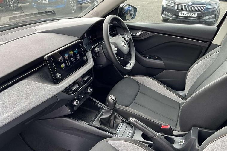 8" Digital display, Advanced driver attention and drowsiness monitor, Bluetooth system, E-call, Front assist system, PAS, Rear parking sensors, Service indicator, Speed limiter, Traffic sign recognition, Wireless smartlink, 4 USB C ports, 8 Speakers, 8.25" Skoda infotainment display, DAB Digital radio, Auto dimming rear view mirror, Automatic headlight control with coming home and leaving home feature, Black roof rails, Body colour bumpers, Body colour door mirrors and handles, Chrome grille surround, Front and rear electric windows, Full LED headlights, Heated rear window, LED daytime running lights, LED front turning lights, LED high beam, LED low beam, LED third brake light, Rear LED fog light, Rear side wing doors, Rear wiper, Ticket holder inside windscreen, 12V socket in luggage compartment, 3 seat bench in 2nd row, Black hotstamping, Cargo elements, Chrome inner door handles, Driver and passenger sun visors with vanity mirror, Dual zone climate control, Front and rear roof lights, Front centre armrest, Front head restraints, Glove compartment with illumination, Height adjustable driver seat, Height adjustable front passenger seat, Ice scraper, Inner circulation control with pollen filter, ISOFIX on front passenger seat, Isofix preparation for back seats, Krepp recycled decor inserts, Leather gearknob and handbrake lever, Loft cloth upholstery, Manual lumbar support for front seats, Net package and top tether hooks in boot space, Net under rear shelf, Overhead glasses storage compartment, Pocket on the back of both front seats include mobile phone pockets, Rake/reach adjustable steering wheel, Reading lights, Satin black door inserts, Single front passenger seat, Textile floor mats, Third rear headrest, Top tether for front passenger seat, Umbrella in driver's door, 3x3 point rear seatbelts, Airbags - driver and front passenger, Disc brakes, ESP, Extended and predictive pedestrian/cyclist protection, Front passenger airbag deactivation switch, Front side airbags with curtain airbags, Hill hold control, Manual leather parking brake, Manual rear child locks, One tone horn, Seatbelt reminder for driver an co-driver, Traction control, Tyre pressure monitor, Anti-theft alarm system with interior monitoring, backup horn, towing protection and remote central locking with SAFE system, Anti-theft wheel bolts, Electronic engine immobilizer,