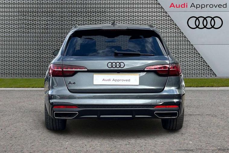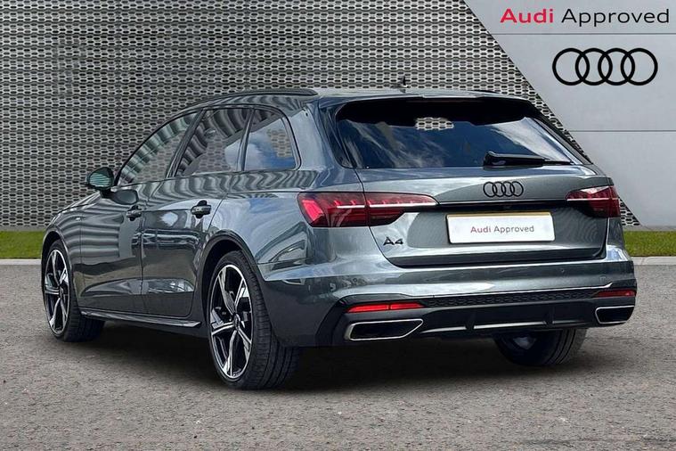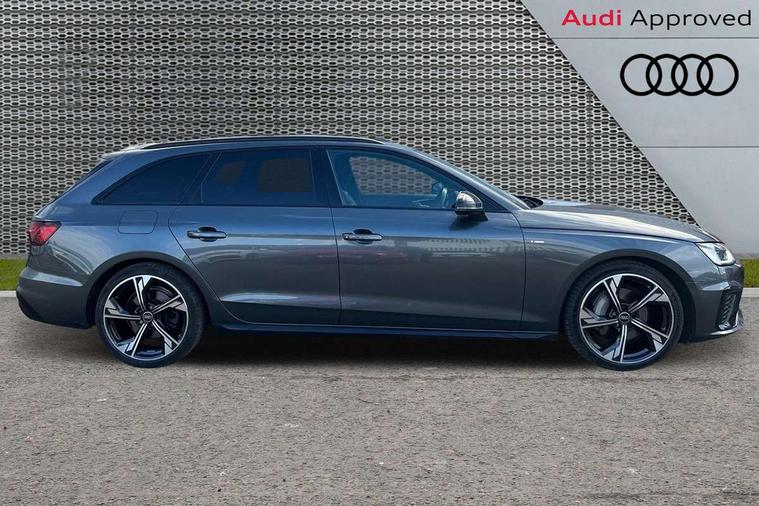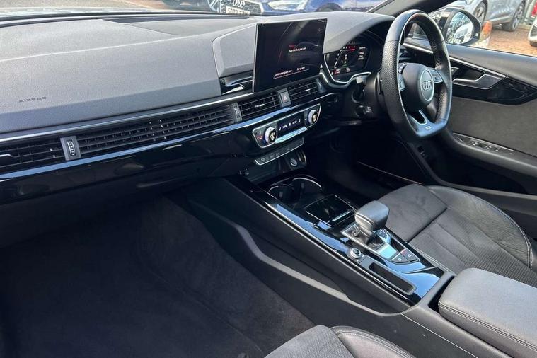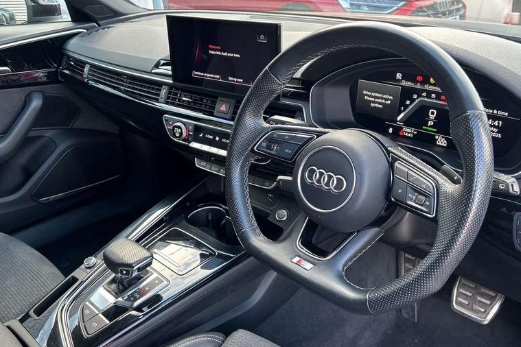 Audi connect safety and service (e-call), Audi connect with Amazon Alexa Integration, Audi drive select, Audi parking system plus with front and rear sensors, Audi smartphone interface, Audi virtual cockpit, Automatic start-stop system with coasting functionality and efficiency programme, Bluetooth interface, Electromechanical power steering, Email, calendar and text messages displayed via MMI, MMI Navigation plus with MMI touch includes 10.1" high resolution colour MMI display, 3D map, Power operated tailgate, Rear view camera, Voice control system, 54 litre fuel tank, Sports suspension lowered by 23mm, 2 USB charging ports, 8 passive loudspeakers, DAB digital radio reception, Auto dimming rear view mirror, Black Audi rings and black badging (model name in black badging, no engine badging), Black audi rings decal above rear sills, Body colour door handles, Body colour front spoiler lip, Body colour side sill trim, Electrically folding auto dimming/adjustable/heated door mirrors with LED side indicators and kerb view function for passenger side, Front and rear bumpers with side skirts, Front wing badges, Grained matt black side air inlets with matt aluminium silver inlay, High beam assistant, High gloss black B pillar trims and triangular rear door trim, LED headlights with LED rear lights + dynamic rear indicators + headlight adjustment and high beam, turning light + LED daytime running lights, LED third brake light, Matt aluminium silver tailpipe trim, Privacy glass, Rain and light sensors, Rear diffuser in matt titanium black with trim strip in matt aluminium silver, Rear side wing doors, RS4 rear spoiler in body colour, S Line roof edge spoiler, Variable intermittent front wash/wipe, Windscreen with acoustic glazing, 4 way electric lumbar support for driver and front passenger, 40/20/40 split folding 3 rear seat bench in 3 parts with rear centre armrest, Black cloth headlining, Black perforated leather gearknob, Contrast stitching on seats, steering wheel and gear lever gaiter, Deluxe 3 zone electronic climate control, Door sill trims with aluminium inlay, Electric load area cover, Front and rear head restraints, Front centre armrest, Heated front seats, Illuminated door sill trims with S logo, ISOFIX child seat mounting and top tether, Manual seat adjustment, Single front passenger seat, Stainless steel pedals and foot rest, Black styling pack - A4 Avant, LED Interior light pack - A4/S4, 3 rear seatbelts, 6 airbags - Driver, front passenger, curtain and side windows, Electronic Stabilisation Control (ESC) including ABS, ASR and EDL, Hill hold assist, Multi collision brake assist, Pop-up bonnet for pedestrian protection, Pre sense city, Seatbelt monitoring, Warning triangle and first aid kit, Anti theft alarm, Anti theft wheel bolts, Central locking, Keyless Go, Piano black finish inlay, Tool kit, Tyre repair kit,