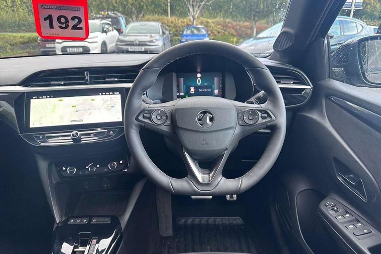 180 degree panoramic rear view camera, 7 inch digital instrument cluster display, Adaptive cruise control with speed limiter, Auto tele unit 3S vehicle communication system, Bluetooth connectivity, Central facia display with digital clock, outside air temperature and audio information, Driver drowsiness alert system, E-call, Engine oil life indicator, Enhanced traffic sign recognition, Front and rear parking sensors, Front camera system, Infotainment remote controls right side of steering wheel, telephone buttons on left side, Instrumentation - Speedometer, rev counter, low fuel gauge warning light + water temperature gauge warning light, Lane departure warning with lane assist, Lane positioning assist, Lights on audible warning, Multi function trip computer - Trip odometer, vehicle range, average speed and fuel economy, instantaneous fuel economy and driving time, Natural voice control, RDS with traffic programme, Satellite navigation system, Service indicator, Side blind spot alert, Speed sensitive power steering, Speed sign recognition, Sports switch, Start/stop system, Three driving modes (Normal, Sport, Eco), Vauxhall connect box, Voice recognition, Wireless Apple CarPlay/Android Auto, Wireless charger, Electronic returnless fuel system, Petrol Particulate Filter, Under body shield for aero, AM/FM stereo radio, Bluetooth A2DP audio streaming, DAB Digital radio, Multimedia Navi with 10-inch touchscreen, Rear USB port, Six speakers, Steering wheel audio, phone and cruise controls, USB type C port, 3rd brake light, Automatic headlamp levelling, Automatic headlight control system, Black DLO, Black door mirror housings, Black Griffin logo and vizor frame, Black lower side window mouldings, Body colour door handles, Body colour front and rear bumpers, Bonnet/headlight/wiper structure, Chrome effect tailpipe extension, Corsa lettering in tailgate, Dark tinted rear side windows + tailgate window, Electrically adjustable and heated door mirrors, Electrically folding door mirrors, Electrically operated front and rear windows with safety auto reverse and one touch up/down facility, Electrochromic automatic anti-dazzle rear view mirror, Glazed tailgate and heated rear window with wash/wipe facility, Hazard warning lights, Headlamps for left side traffic, High beam assist, High gloss black finish B pillar, IntelliLux Matrix LED Headlights, LED daytime running lights, LED fog lights, LED tail lamp, Rain sensitive windscreen wipers, Rear fog lamp, Rear reversing lights, Rear side wing doors, Rear wiper, Shark fin aerial, Solar heat absorbing windscreen and windows, Sports front and rear body styling for upper and lower bumper design, Two speed windscreen wipers with variable intermittent wipe, Ultimate badge and sill plate, Windscreen and side window demist vents, 12V power sockets, 3 bench rear seats in 2nd row, 3 spoke flat bottomed leather effect steering wheel with satin chrome effect bezel, 4 speed fan with illuminated controls, 6 way manual adjustable co-driver seat height up/down, reach fore/aft, backrest upright/recline, 6 way manual adjustable driver seat with massage function height up/down, reach fore/aft, backrest upright/recline, 60/40 split folding rear seat, Alcantara seat trim, Alloy effect sport pedals, Black headliner, Cabin particulate filter - removes dust, airborne particles and pollen, Comfort front seats, Driver's seat lumbar support, Driver/passenger sunvisors with vanity mirrors + covers, Electronic climate control (ECC), Four adjustable facia vents, Front centre armrest with storage, Front cupholder, Front headrests, Front map reading lights, Front seatback storage pockets, Gearshift paddles, Heated front seats + heated steering wheel, Height adjustable head restraints, Illuminated glovebox with lid, Illuminated load compartment trunk, Interior courtesy light, Internal chrome door handles, Jet black door panels on door trim, Jet black side bolsters and surrounds, LED ambient lighting, LED boot light, Luggage compartment lighting, Mistral fabric side bolsters and surrounds, Polyurethane gear knob/lever, Reach and rake adjustable steering column, Rear headrests, Right hand drive (RHD), Single dome lamp with dual front reading lamps, Single front passenger seat, Two litre open door pockets, 3 rear 3 point seatbelts, Anti-lock braking system (ABS), Cornering brake control, Deactivation switch for front passenger's airbag, Drag torque control, EBD - Electronic brakeforce distribution, Electrical child lock system in rear door latch, Electronic parking brake, Electronic Stability Programme (ESP), Emergency brake assist, Enhanced automatic emergency braking with pedestrian detection, Forward collision alert, Front seatbelt unfastened audible warning and warning light, Hill hold and start system, Inertia reel lap and diagonal seatbelts for all seats, ISOFIX child seat mountings incorporating top tether anchor points located on second row rear seats, Seatbelt pretensioners, Single tone horn, Six airbags - Driver's dual stage airbag/front passenger's dual stage airbag/front seat side impact airbags/full size curtain airbags, Straight line stability control, Traction control, Tyre deflation detection system, Tyre pressure monitoring system, 2 keys one folding with integral remote, Electronically protected audio equipment, Engine deadlock and immobiliser, Freewheeling door locks, Keyless entry and start, Locking wheel nuts, Remote control central locking, Remote control central locking activation switch on driver door, Remote control security alarm system, Remote locking fuel filler flap, Steering column lock, Visible vehicle identification number, Silent black facia with liquid palladium insert, 17" Diamond-cut hi-gloss black alloy wheels,
