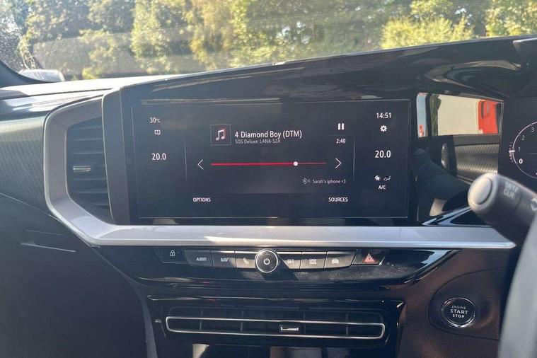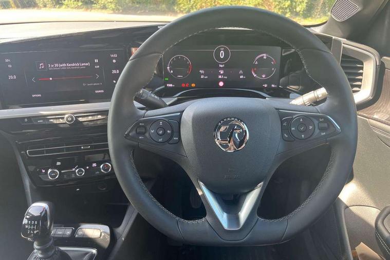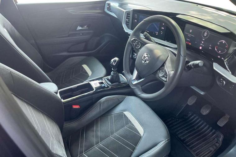 12" digital instrument cluster, Adaptive cruise control with speed limiter, Digital instrumentation with digital speedometer, rev counter, fuel and water temperature gauge, Driver drowsiness alert system, Driver information display with multi function trip computer, audio info, digital clock and outside air temperature with ice warning function, Engine start/stop button, EV information display, Extended traffic sign recognition, Front and rear parking distance sensors, Front camera and radar system, Gearshift up/down indication light, Lane keep assist system (LAS) with Lane departure warning system (LDWS), Lights on audible warning, Panoramic rear view camera, Power assisted speed sensitive steering, RDS with traffic programme, Side blind spot alert and flank guard, Smartphone integration compatible with Apple CarPlay and Android Auto, Sports switch with engine sound enhancement, Start/stop system, Vauxhall connect with e-Call, 6 speed manual transmission, 6 speakers, AM/FM stereo radio with 36 station presets, DAB Digital radio, Flexible Roof Mounted Radio Aerial, Front USB connection, Mobile phone portal - bluetooth connect, vehicle microphone, handsfree calls, SMS read out and reply, phone book access, Multimedia Navi Pro with 10" colour touchscreen, Steering wheel mounted controls, Two rear USB sockets, Adaptive brake lights, Auto high beam assist, Automatic headlamp levelling, Automatic lighting control with tunnel detection, Automatically dimming anti dazzle rear view mirror, Black door mirror housings, Black front and rear bumper inserts, Black Griffin logo and vizor frame, Black upper window moulding, Body colour door handles, Body colour front and rear bumpers, Dark tinted rear side windows + tailgate window, Electric adjustable/heated/folding door mirrors + puddle lights, Electrically operated front and rear windows with safety auto reverse and one touch up/down facility, Hazard warning lights, Heated rear window+rear wash/wipe, Integrated black tailgate spoiler, IntelliLux Matrix LED headlights with adaptive forward lighting with anti glare beam, LED 3rd brake light, LED daytime running lights, LED front fog lamps, LED side repeat indicators, LED tail lights, Rear foglight, Rear side wing doors, Reversing light, Solar heat absorbing windscreen and windows, Two speed rain-sensitive windscreen wipers with variable intermittent wipe, Windscreen and side window demist vents, 12V Accessory socket, 3 seat bench in 2nd row, 3 spoke flat bottomed leather effect steering wheel with satin chrome effect bezel, 4 speed fan with illuminated controls, 4 Way driver seat with lumbar and massage function, 6 way manual adjustable driver fore/aft, up/down with reclining seatback, 6 way manual adjustable front passenger fore/aft, up/down with reclining seatback, 60/40 split folding rear seat, Air recirculation system, Alcantara/leather upholstery, Black headliner, Cabin particulate filter - removes dust, airborne particles and pollen, Centre console with two cup holders at front and one in rear, Chrome effect interior door handles, Door pockets with two litre capacity, Driver and passenger sun visors with vanity mirror, Electronic climate control (ECC), Four adjustable facia vents, Four load restraint lashing eyes, Front centre armrest with storage, Front head restraints, Front map reading lights, Front seat back storage pockets, Fully carpeted load area, Heated front seats, Heated steering wheel, Interior courtesy light, Interior tailgate handle, Luggage compartment cover, Luggage compartment lighting, Movable boot floor, Reach + rake adjustable steering column, Single front passenger seat, Three height adjustable rear seat head restraints, Twin gas assisted tailgate struts, Black Pack with badge - Mokka, 2x Isofix child seat fitting on outer rear seats, 3x3 point rear seat belts, Anti-lock braking system (ABS), Child proof locks on rear doors, Cornering brake control, Deactivation switch for front passenger front and side impact airbags, Drag torque control, Driver and front passenger airbags, front seat side impact airbags, full size curtain airbags, Electronic brake force distribution, Electronic Stability Programme (ESP), Emergency brake assist, Enhanced automatic emergency braking with pedestrian detection, Forward collision alert at all speed, Hill start assist, Inertia reel lap and diagonal seatbelts for all seats, Seatbelt unfastened audible warning and warning light, Straight line stability control, Traction control, Tyre pressure monitoring system, Electronically protected audio equipment, Engine deadlock immobiliser, Freewheeling door locks, Key left in ignition audible warning, Keyless entry and start, Locking wheel nuts, Remote control central locking, Remote control ultrasonic security alarm system, Visible vehicle identification number, Black facia with silver trim insert, Instrument panel bar in polar silver, Light grey trim inserts on front doors, 18" bi colour alloy wheels,