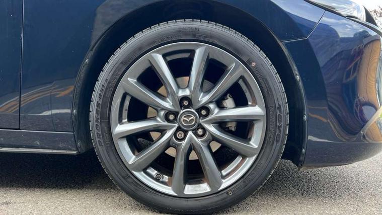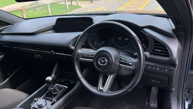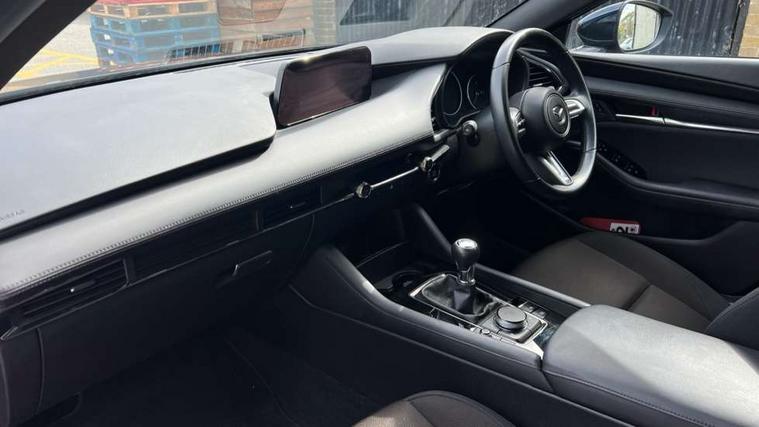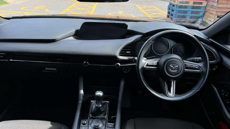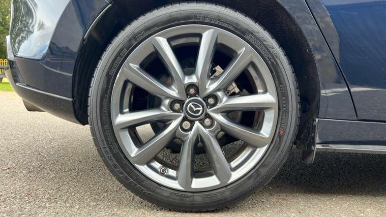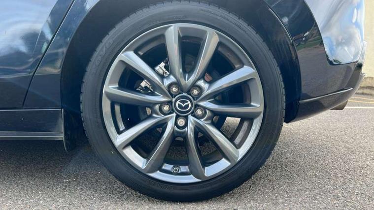 7" colour TFT display, 8.8" Colour centre touch screen display with Mazda Connect infotainment, Apple car play/Android Auto, Audio transfer from bluetooth devices, Blind spot monitoring with rear cross traffic alert, Colour active driving display inc Windscreen projected, Traffic Sign Recognition, turn-by- turn navigation and Mazda Radar Cruise Control information, Digital instrument cluster, Driver attention alert system, E-call with GPS, Emergency stop signalling system, Engine start/stop button, Front and rear parking sensor with audible and visual warning, Head up Display, Integrated bluetooth with steering wheel mounted controls, Intelligent speed assist, Lane keep assist system (LAS) with Lane departure warning system (LDWS), Mazda connected services, Mazda Navigation System with european mapping, Mazda Radar Cruise Control, Mobile App interface, Multimedia Commander, PAS, Reversing camera, Service indicator, Tailgate, Traffic sign recognition (TSR), Trip computer, Cylinder Deactivation, i-stop, Mazda Multimedia System with AM / FM / DAB radio with 8 speakers, Adaptive LED Headlights, Auto dimming driver's door mirrors, B-pillar garnish in piano black, Body coloured, electrically adjustable, heated auto power folding door mirrors with integrated indicators, Coming/leaving home lighting function, Dark metallic finish signature wing, Dual chrome tailpipes tip, Dusk sensing headlights, Electric front/rear windows with one touch/auto up/down, Frameless auto dimming interior rear view mirror, Front body coloured bumper with black lower bezel, Front kodo turn signal, Gloss black finish front grille, Gloss black rear roof spoiler, LED indicator lights, LED third brake light, Privacy glass with dark tinting on rear side windows and rear window, Rain sensing front wipers with adjustable sensitivity and speed, Rear colour coded bumper with gloss black lower moulding, Rear fog lights, Rear side wing doors, Signature LED daytime running lights, Signature LED rear combination lights, Speed adjustable rear wash wiper with intermittent wipe, 12v electrical power outlet, 3 seat bench in 2nd row, 60/40 split fold down rear seats, Black cloth door panel inserts, Chrome interior trim accents with steering wheel centre bezel, surround of engine start / stop button and glove box handle, Cloth upholstery, Dark roof headlining, ceiling and pillars, Driver, front passenger and two rear door pockets, Driver, Front passenger and two rear grab handles with coathooks, Driver/passenger sunvisors + vanity mirrors (drivers side with ticket holder), Drivers seat manual slide recline and height adjustment, Dual zone climate control air conditioning, Folding rear centre armrest with two cup holders, Front and rear courtesy lamps, Front armrest, Front centre storage with two cupholders, Front head restraints, Front passenger seatback pocket, Front passengers seat manual slide, recline and height adjustment, Gear shift indicator, Heated front seats with 3 stage setting, Illuminated glovebox, Interior colouration dashboard and doorcards in black with dark stitching, ISOFIX child seat anchorage points attached on outer rear seats, Leather wrapped gear shift knob, Leather wrapped steering wheel, LED interior light, Luggage compartment light, Power outlet in luggage compartment, Roof mounted sunglasses holder, Single front passenger seat, Three height adjustable rear head restraints, Tilt/height adjustable steering wheel, USB input, 3 point ELR front seatbelts with pretensioners, 3 rear 3 point seatbelts with ELR, Anti-lock braking system (ABS), Drivers knee airbag, DSC - Dynamic Stability Control, Dual stage driver and single stage passenger airbags, EBD - Electronic brakeforce distribution, Electronic parking brake with auto disengage function and auto hold function, Front and rear curtain airbags, Front passenger airbag cut-off switch, Front side airbags, Front smart city brake support, G-Vectoring control plus, Hill launch assist, Intelligent Traction Control system, Manual child lock in rear doors, Mild Hybrid system with regenerative braking, Seatbelt reminder for driver/front passenger and rear seats, Tyre pressure monitoring system (TPMS), Auto door lock when driving, Remote central locking + deadlocks, Smart keyless entry, Thatcham accredited alarm and immobiliser, 18" Grey alloy wheels, Emergency tyre repair kit,