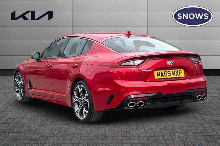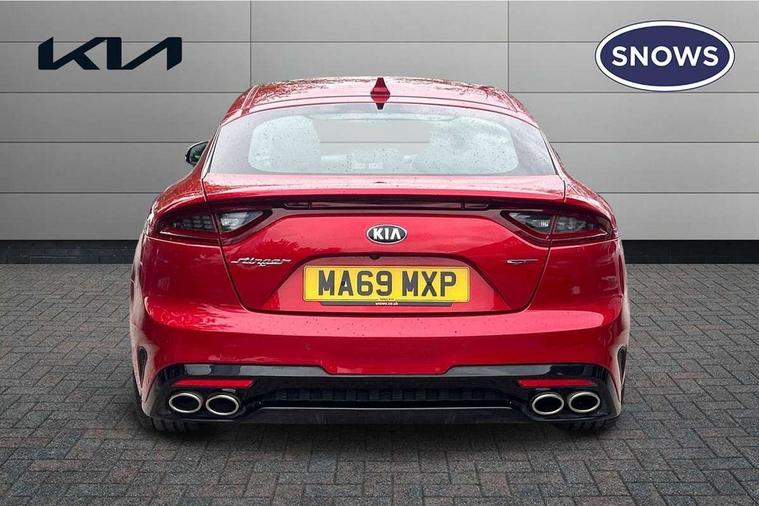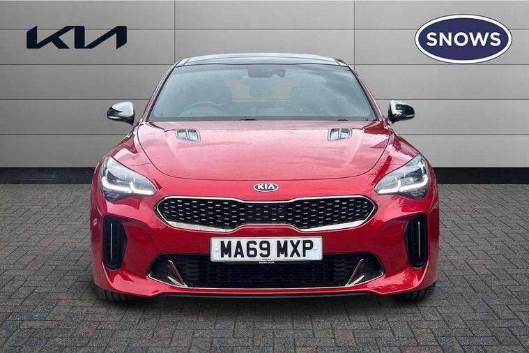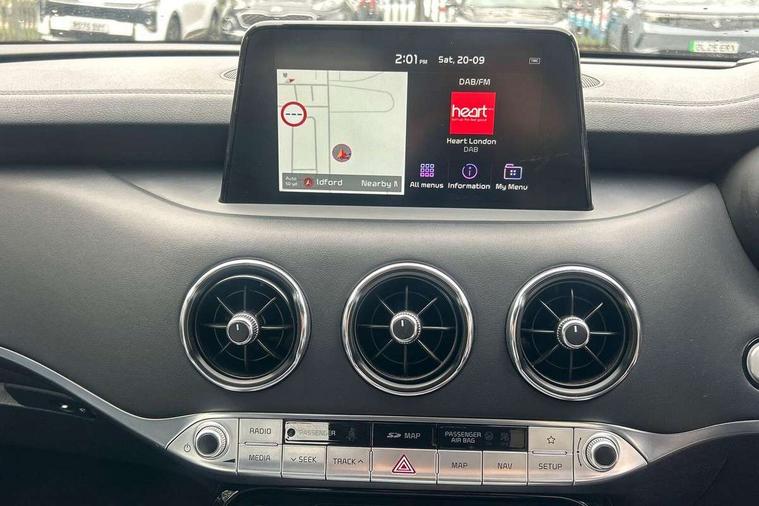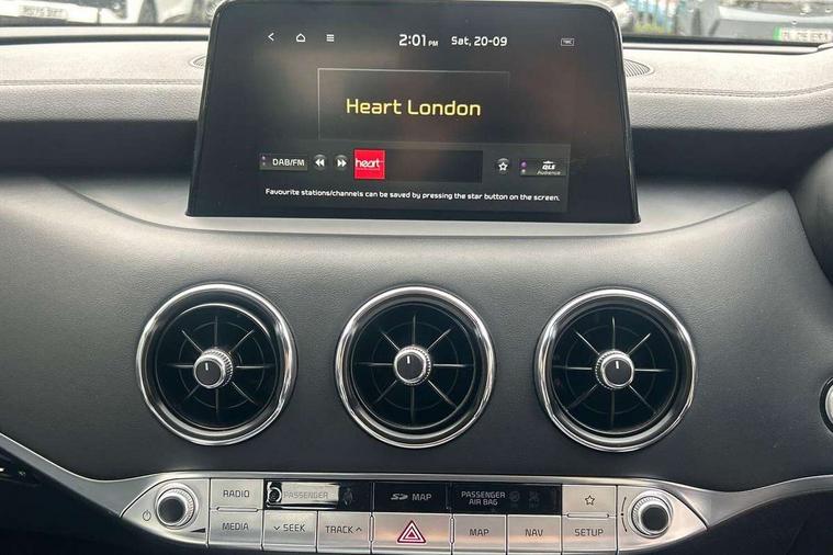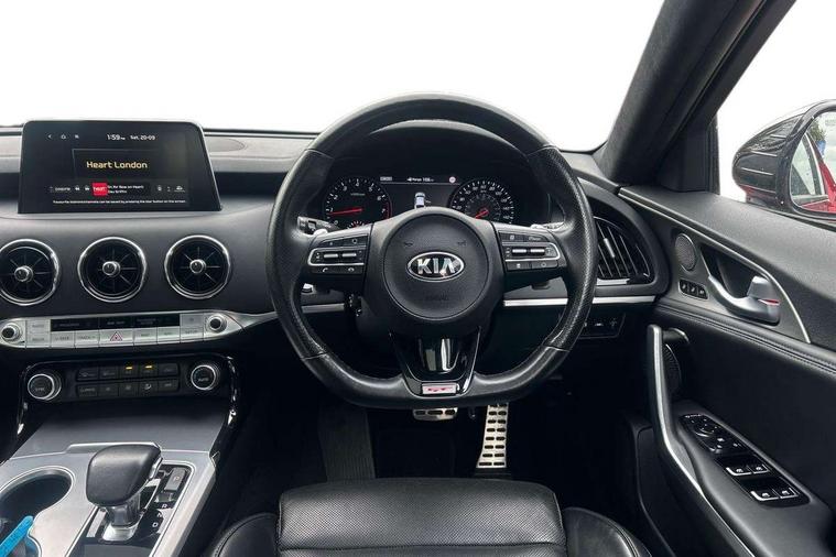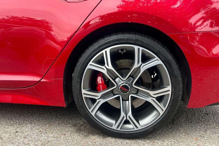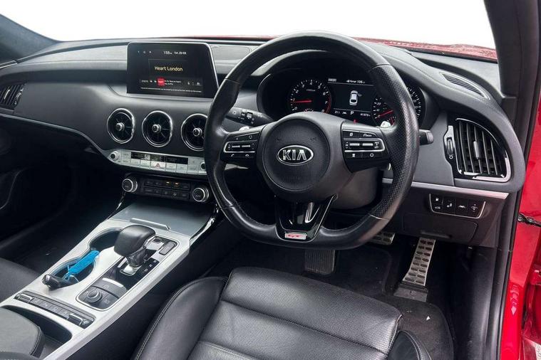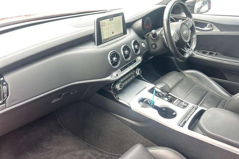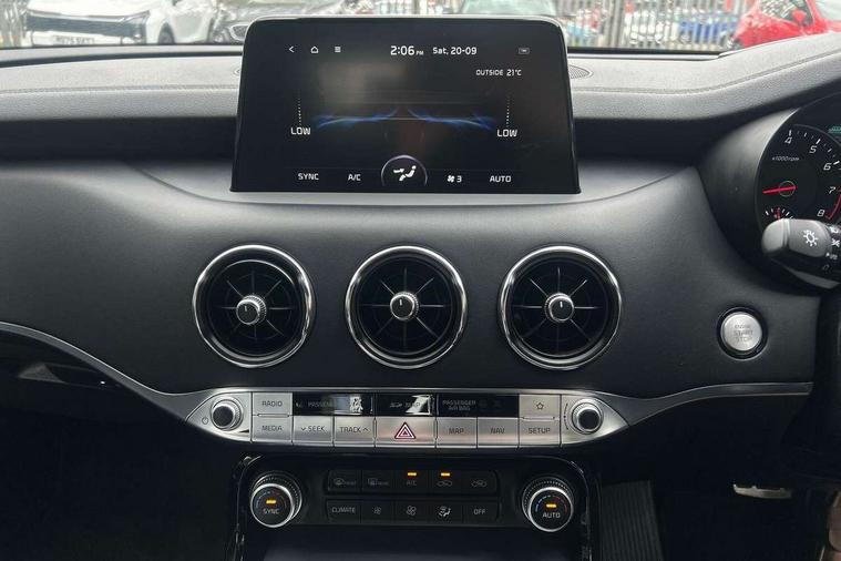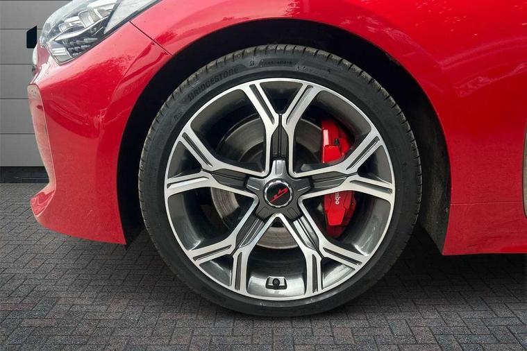 8" touch screen sat nav with TMC, Advanced smart cruise control & speed limiter, Apple car play/Android Auto, Around View Monitor, Blind spot monitoring with rear cross traffic alert, Bluetooth audio streaming with voice recognition, Digital clock, Drive mode selector, Driver attention warning, Electric power steering, Emergency stop signalling system, European mapping upgrade, External temperature gauge, Forward Collision-Avoidance Assist (FCA) - City/Pedestrian, Front and rear parking sensors, Gear selection indicator, Head up Display, Kia connected services, Lane keep assist, Low washer fluid warning light, Memory for cluster display, Memory for Head up Display, One touch facility for sunroof, Power tailgate, Rear parking sensor, Reversing Camera System (integrated into Sat Nav Screen), Roll over sensor, Speed limit information function (SLIF), Supervision cluster with 7" TFT display, Trip computer, Wireless Smartphone charger, Electronic suspension control, Intelligent Stop and Go, Limited slip differential, DAB Radio with MP3, Harman/Kardon Premium sound system with 15 Speakers + subwoofer and amplifier, Rear USB port, Steering wheel mounted controls, USB and auxiliary socket, Auto dimming exterior rear view mirror, Auto dimming rear view mirror, Automatic headlight levelling, Automatic headlights, Black beltline mouldings, Body colour bumpers, Body colour door handles, Body colour side sill mouldings, Chrome door mirrors, Chrome roof line trim, Dark chrome grille surround, Driver's door mirror memory, Driver's side wide angle mirror, Dynamic cornering light, Electric adjustable/heated/folding door mirrors, Exterior grab door handles, Front and rear electric windows, Front drivers side windows/one touch up/down, Front fog lights, Heated rear window, High beam assist, LED daytime running lights, LED Headlights, LED indicators in door mirrors, LED rear lights, Metallic effect stamped grille, Privacy glass, Puddle lights, Quad tailpipes, Rain sensing front wipers, Rear wash/wipe, Shark fin antenna, Tinted glass, UV-reducing solar glass, Visible VIN plate, Welcome home function, Windscreen wiper de-icer, 12V power points in front + rear centre consoles, 3 x passenger assist grips, 4 way electrically adjustable lumbar support for drivers seat aircell, 4 way electrically adjustable lumbar support for front passenger seat, 60/40 split/folding 2nd row of seats, 8 way electric adjustable drivers seat, 8 way electrically adjustable passenger seat with height, reach, till and backrest, Aluminium pedals, Centre cabin LED lights, Centre console storage box, Cupholders in centre console, Door storage trays, Driver seat memory function, Driver/passenger sunvisors with illuminated vanity mirrors, Dual zone automatic air conditioning, Electric tilt/telescopic steering wheel, Extended seat cushion - Driver, Front door courtesy lamps, Front seat and rear pockets, Front/rear centre armrests, Gearshift paddles, Glovebox illumination, Heated front seats, Heated outer rear seats, Heated steering wheel, Height adjustable headrests, ISOFIX top tethers and lower anchor points, Leather and chrome trimmed gearshift, Leather trimmed door armrests, Leather trimmed steering wheel, LED interior illumination, LED map reading lights, Luggage area lamp, Luggage compartment cover, Luggage net with hooks, Nappa leather upholstery, Rear armrests with cupholder, Rear coat hooks, Reclining/sliding front seat, Satin chrome interior door handles, Side bolster support adjustment for driver seat, Stainless Steel Scuff Plates, Suede cloth headlining, Ventilated front seats, Ventilation ducts to rear compartment, 3 point seatbelts on all seats, ABS, Active bonnet, Automatic unlocking of doors in case of impact, Autonomous emergency braking, Brembo brake callipers, Brembo braking system, Curtain airbags, Driver/Front Passenger airbags, Drivers knee airbag, Electronic parking brake, Electronic stability control, Fasten seatbelt reminder, Front passenger airbag deactivation, Height adjustable front seatbelts, Hill start assist control (HAC), Rear door child safety locks, Traction control, Twin front and side airbags, Tyre pressure monitoring system, Alarm system, Deadlocks, Immobiliser, Locking wheel nuts, Smart key entry system, Speed sensitive auto door locking, Aluminium finish to centre console, Leather dashboard, 19" Alloy wheels, Tyre mobility system,