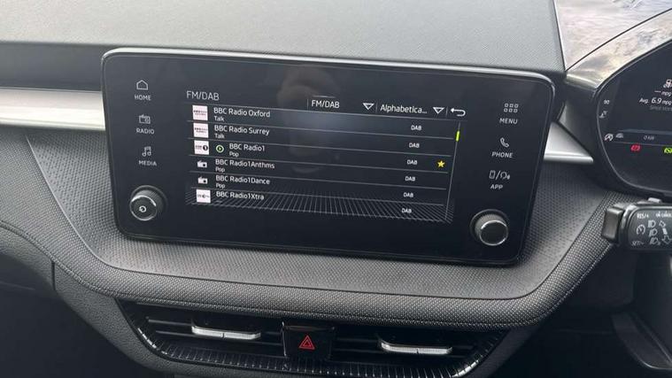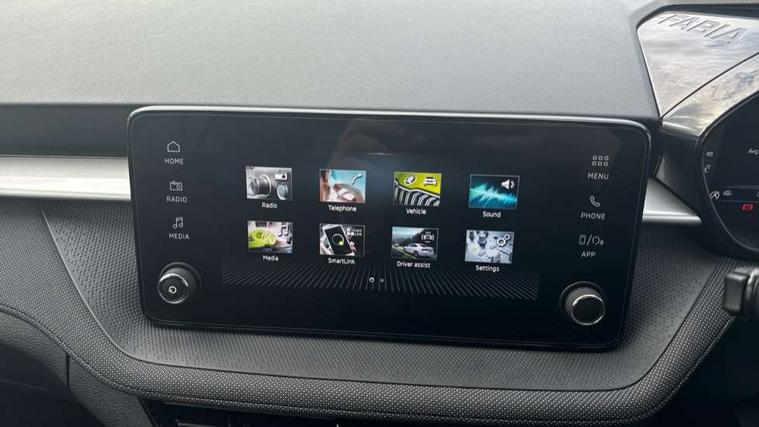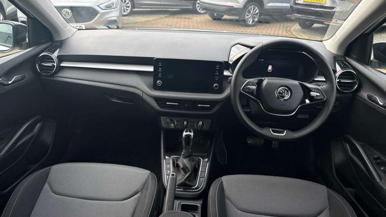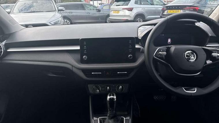 Advanced driver attention and drowsiness monitor, Bluetooth connection, Electromechanical power steering, Exterior temperature gauge, Service interval indicator, Traffic sign recognition, Virtual cockpit with 10.25" colour display, Wireless SmartLink for Apple CarPlay and Android Auto, 6 Speakers (4 in front and 2 in rear), Auxiliary socket for external MP3 player, DAB digital radio reception, Body coloured bumpers, Dimming rear view mirror with black frame, Door mirror integrated indicators, Front and rear electric windows, Front window wiper intermittent control, Headlight range control - Automatic, Ice scraper in fuel cap, LED daytime running lights with coming and leaving home feature, LED rear lights, Privacy glass, Rear LED fog light, Rear side wing doors, Rear window wiper with washing nozzles, Roof mounted spoiler, SKODA tailgate lettering in chrome, Third brake light, 2 reading lights in front and 2 reading lights in rear, 3 rear headrests, Backrest split and folding, Central console with removable cup holder and storage box, Chrome handbrake release button, Fabric upholstery, Front centre armrest, Gearshift knob/handle in leather, Grain satin black interior door handles, Hand brake lever handle in leather, Height adjustable front headrests, Height adjustable front seats, Height adjustable steering wheel, ISOFIX and TopTether anchorage points to the outer rear seats, ISOFIX and TopTether on the front passenger seat, Luggage compartment lighting, Manually adjustable lumbar support in front seats, Pollen filter, Rear seat bench unsplit, Single front passenger seat, Storm grey headlining, Sun visors with mirror and airbag label on passenger side, Textile floor mats, Ticket holder, Umbrella in drivers door, 3-point height adjustable front seats belts with pretensioner and force limiter, Automatic warning lights in case of crash, Driver and passengers airbag with switch off function, e-Call+, ESC including ABS, MSR, ASR, EDS, HBA and XDS, Front and rear seat belt warning, FRONT ASSIST (AEB City and AEB Inter Urban), Front side airbags, Head airbags, Hill hold control, One tone horn, Pedestrian protection, Three rear 3-points safety seat belts with pretensioner and force limiter including stop function for outer rear seat belts, Tyre pressure monitoring system, Anti-theft alarm system including immobiliser, interior monitoring, backup horn, and towing protection, Central locking with radio remote control, interior controls, SAFE function and 2 foldable keys, Colour Edition air vents, Grain satin black central console cover, Metallic grey upper decorative trim, Satin black door and side trim panel in front, Textile Kota grey lower decorative inserts, Anti-theft wheel bolts protection, Super-low rolling resistance tyres,