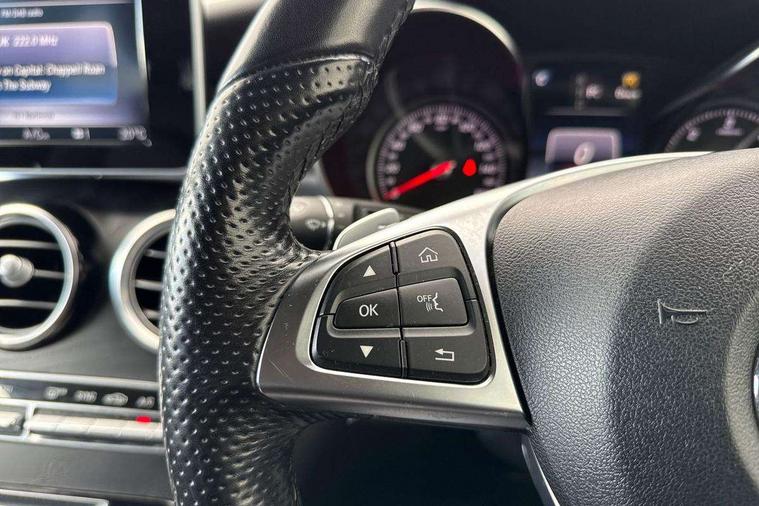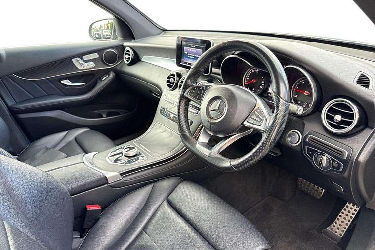 7" colour screen, Active park assist with parktronic system, Attention assist, Bluetooth interface for hands free telephone, Collision prevention assist plus, Crosswind Assist, DYNAMIC SELECT with a choice of driving modes (ECO, Comfort, Sport, Sport+ and Individual), Garmin Map Pilot navigation system with SD card, touchpad and voice control, Instrument cluster with 5.5-inch TFT multi-function display, Multi function trip computer, Outside temperature gauge, Power opening/closing tailgate, Remote boot release, Service indicator (ASSYST), Diesel particulate filter, 5 speakers, DAB Digital radio, Frontbass loudspeakers, Mercedes Audio 20 radio/single CD + telephone keypad, USB connection, Adaptive brake lights, Aerodynamic rear spoiler, AMG bodystyling, Automatic headlights, Body coloured bumpers, Chrome exterior trim, Electric panoramic sunroof with sunblind, Electric windows one touch open/close, Electrically adjustable and heated door mirrors, Exhaust tailpipe finisher, LED daytime running lights, LED rear lamps, Privacy glass (to rear of B post), Rain sensor windscreen wipers, Range adjustable headlights, Rear wiper, Tinted glass all round, 2 cupholders in front centre console, 2 way rear head restraints, 3 spoke flat bottom AMG steering wheel in nappa leather, 4 way adjustable front head restraints, 4 way electric lumbar support for driver and front passenger, 40:20:40 split folding rear seats, Ambient lighting, AMG floor mats, AMG sports seats, Auto Mercedes-Benz child seat recognition sensor, Automatic climate control, Black roof lining, Dividing net - rear, Easy-pack load compartment cover, Electric front seat height adjustment, Front armrest with storage box, Front door sills with Mercedes Benz lettering, Gearshift paddles, Heated front seats, Height/reach adjustable steering column, Lockable/illuminated glovebox, Multifunction steering wheel, Rear top tether child seat ISOFIX attachment, Sports pedals with stainless steel surfaces and rubber studs, Sunvisors with illuminated vanity mirrors, Interior lighting pack - GLC, Memory pack - GLC, Mirror pack - GLC, Storage pack - GLC, 3 rear 3 point seatbelts, ABS with Brake Assist, Active bonnet, Adaptive brake system, Brake calipers with Mercedes-Benz lettering + perforated brake discs, Child proof door locks, Drivers knee airbag, Dual stage driver/passenger airbags, Electronic parking brake, ESP with ASR, Front and rear seatbelt reminder, Front passenger seat occupancy sensor, Front side airbags, Hill hold function, Tyre pressure monitoring system, Warning triangle and first aid kit, Window airbags, Alarm system/interior protection/immobiliser, Automatic door locking, Keyless entry and keyless start, Remote central locking, Tyre inflation kit,