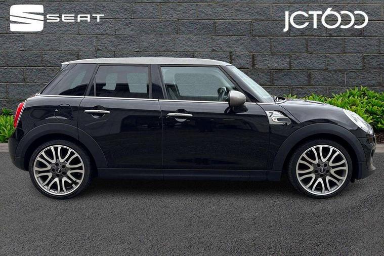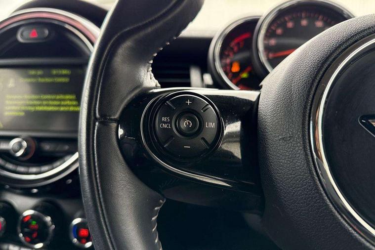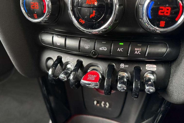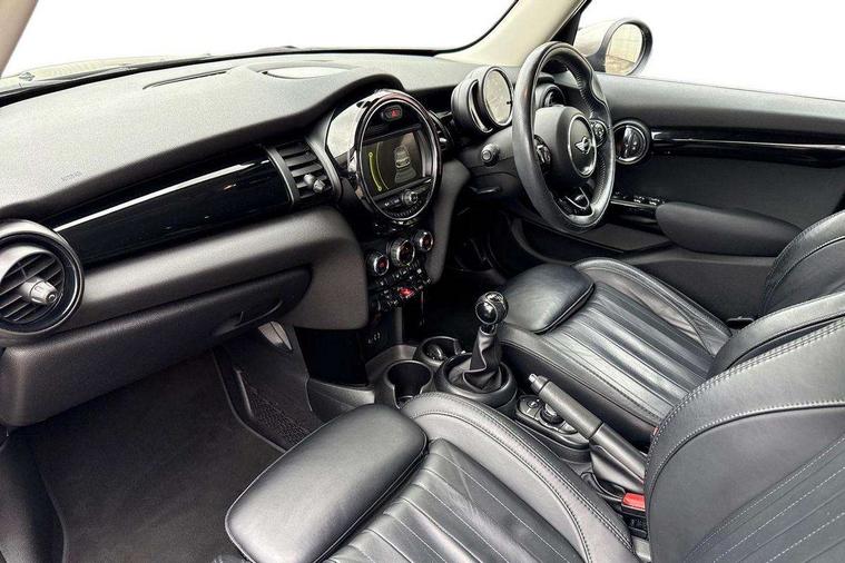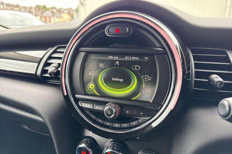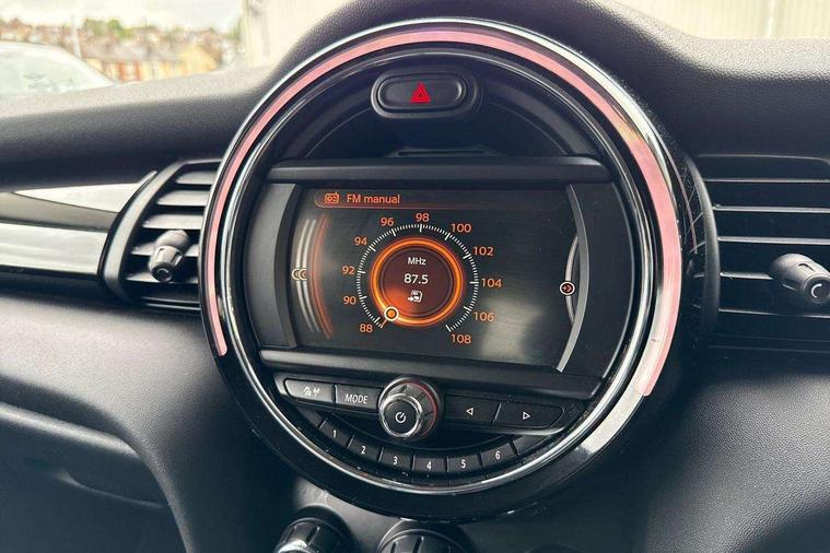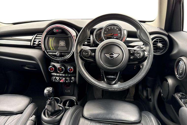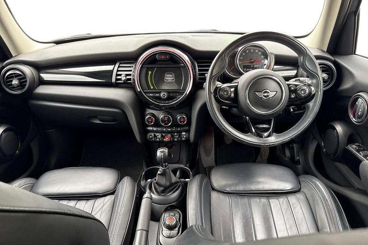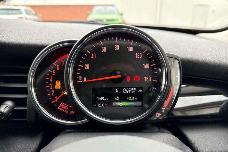 Acoustic seat-belt warning, Brake fluid level warning light, Brake pad wear indicator warning light, DTC - Dynamic traction control, Exterior temperature gauge, Intelligent emergency call, MINI TeleServices, Oil level indicator, On board computer, Push button starter, Service interval indicator, Servotronic PAS, Electronic differential lock, Auxiliary input socket, DAB digital radio module, Radio visual boost with MINI Connected, 2 speed wipers+intermittent wipe, Anti dazzle mirror, Anti trapping/one touch open close front windows, Body coloured bumpers, Chrome bezels around rear lights and headlights, Chrome door handles, Chrome exhaust tailpipe, Chrome grille surround, Chrome plated trim on bottom edge of window, Door sill finishers, Electric front windows, Electrically adjustable door mirrors, Flared wheel arches, Follow me home headlights, Green tinted heat insulating glass, Heated door mirrors/heated windscreen washers, Heated rear window with auto timer, High gloss black tailgate, Rain sensor including auto headlights activation, Rear wiper, Roof spoiler in roof colour, Silver roof and mirror caps, 2 rear head restraints, 4 boot load lashing points, 4 way manually adjustable passenger seat with height, reach, tilt, backrest and headrest, 6-way manually adjustable driver's seat, Active carbon filter, Air recirculation system, Auxiliary socket in centre console storage compartment, Black velour floor mats, Centre console storage, Colour line - Carbon black, Driver's seat height adjuster, Driver/passenger sunvisors, Dual zone automatic air conditioning, Easy entry seats, Front and rear cupholders, Front head restraints, Front interior light, Front passenger grab handle, Front seat backrest storage nets, Front sports seats, Gear/selector and handbrake in artificial leather, Internal chrome door handles, Isofix child seat preparation, Luggage compartment lighting, Passenger seat height adjuster, Reach + rake adjustable steering column, Rear grab handles, Rear storage trays, Split folding rear seats, Storage compartments in doors, Toolkit in luggage compartment, Vanity mirrors, Interior lights pack - Mini Hatchback, MINI Excitement pack - Mini Hatchback, Storage Compartment Pack - Mini Hatchback, 3 point seatbelts, ABS/EBD, ASC+T, Cornering brake control (CBC), Crash Sensor - activates hazard/interior lighting + unlocks doors, Driver and passenger airbags, Driver/front passenger side airbags, DSC - Dynamic Stability Control, Fuel cut off safety device, Head airbags, Hill start assist, Passenger airbag deactivation system, Seatbelt pretensioners, Tyre pressure warning, Ventilated front disc brakes, Drive away door locking, Locking wheel bolts, Remote central locking/doors+fuel cap+tailgate, Second remote key, Thatcham category 1 alarm + immobiliser, Piano black interior trim,