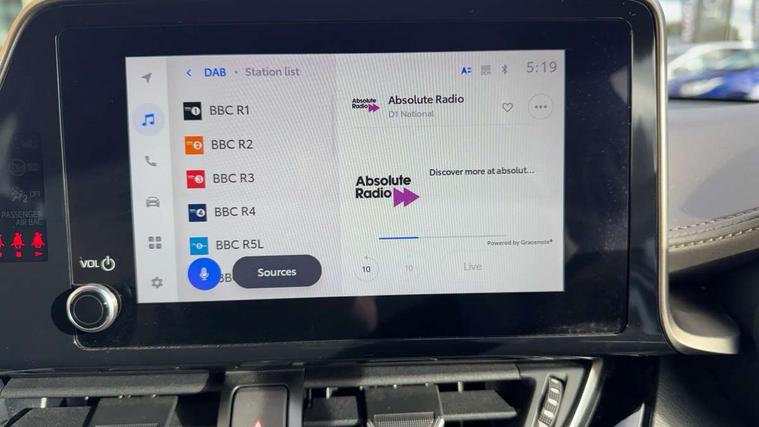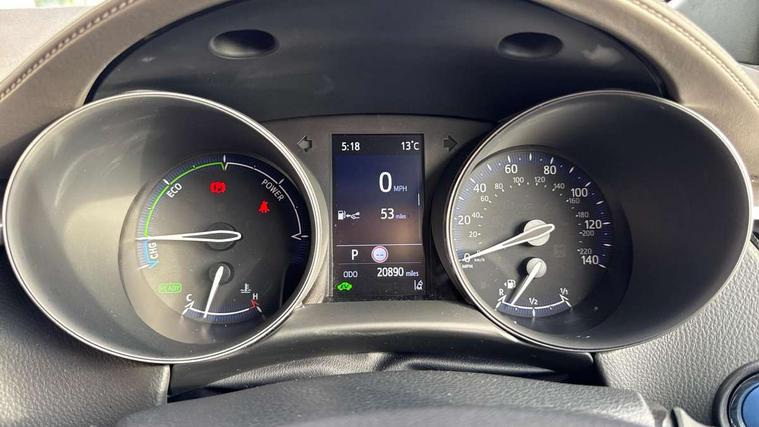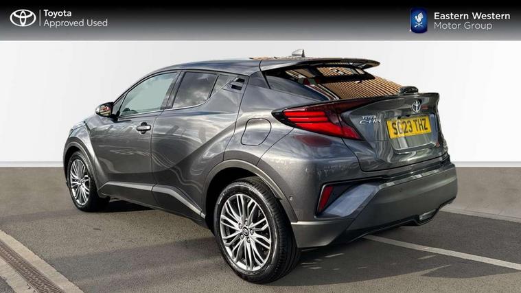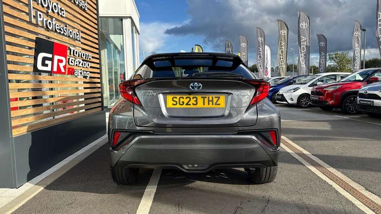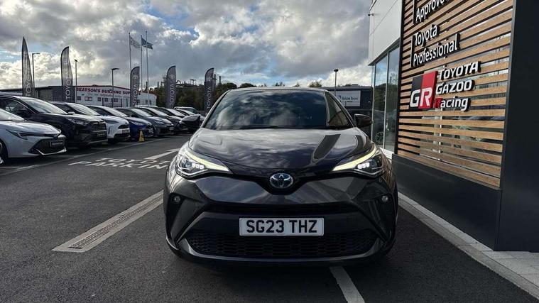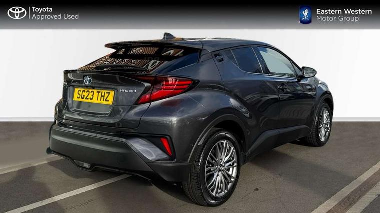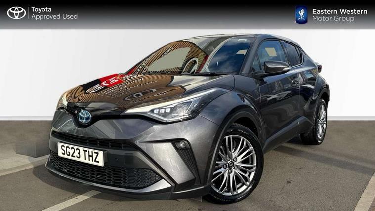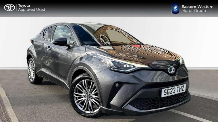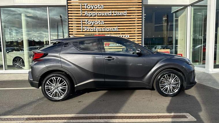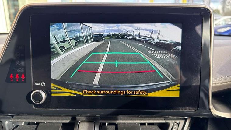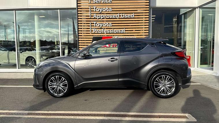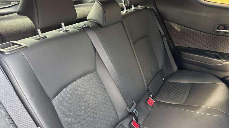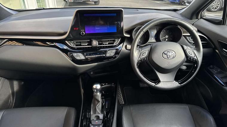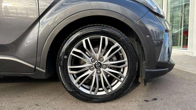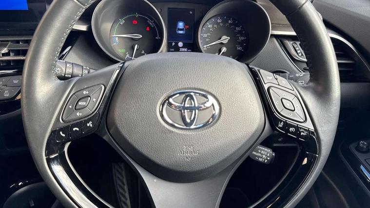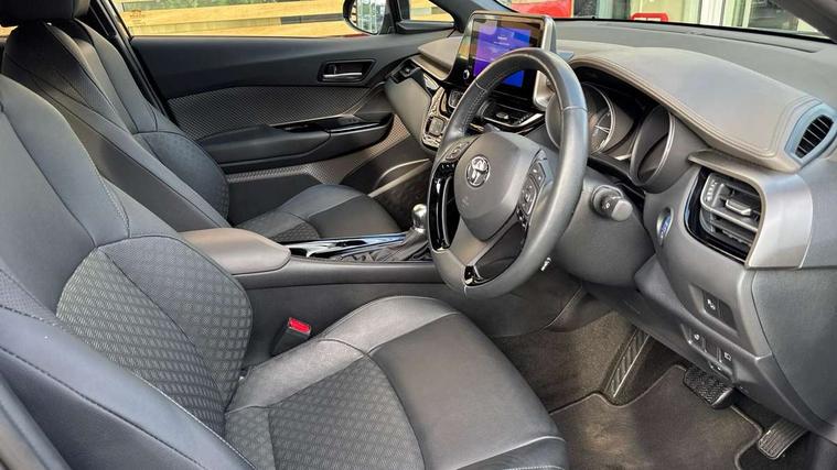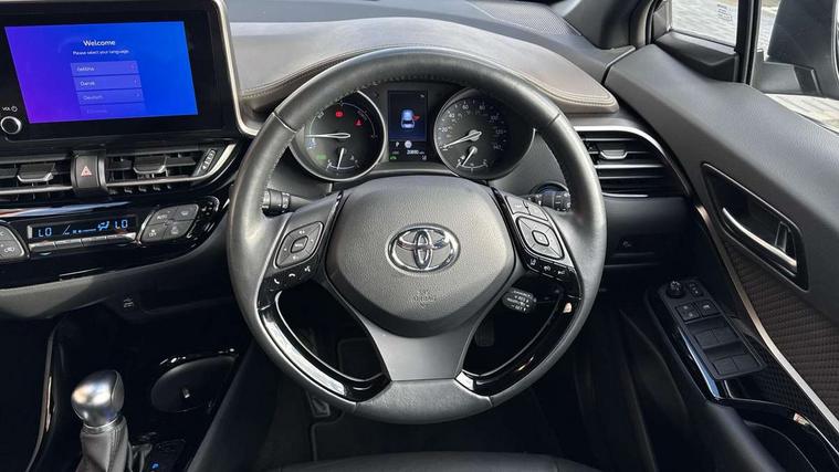 4.2" coloured TFT screen for multi-information display, Adaptive cruise control, Apple car play and Android auto, Bluetooth connectivity, E-call, Electric power steering, Hybrid system indicator, Lane departure alert with steering control, Lane trace assist, Push button tailgate release, Remote boot door release in cabin, Remote boot door release in key, Reversing camera, Road sign assist - RSA, Simple Intelligent parking assist, Smart voice assist, Touch 2 Go navigation system, Trip computer, Voice recognition, Wireless smartphone integration, Vehicle Stability Control (VSC), 6 speakers, AM/FM radio, DAB Radio (Digital Audio Broadcasting), Toyota touch 2 multimedia system with 8" display, USB connector, Wi-fi connectivity, Adaptive front light system, Adaptive LED Headlights, Anti-jam protection on power windows, Auto high beam, Auto up and down function on all power windows, Automatic headlight levelling, Automatic headlights, Automatic headlights cut-off, Black and body coloured rear bumper, Black lower front grille, Black upper front grille, Body colour door handles, Body colour door mirrors, Body colour front spoiler lip, Body coloured front bumper, Boot door release with push button, Electric heated door mirrors, Follow me home headlights, Front and rear power windows, Headlight cut off reminder, Honeycomb lower front grille, LED daytime running lights, LED fog lights, LED front light guide, LED High mounted stop light, LED rear brake lights, LED rear combination lights, Noise reduction layer on front windows and windscreen, Power adjustable door mirrors, Privacy glass, Rain sensor, Rear sequential indicators, Rear side wing doors, Rear spoiler, Rear tailgate, Rear window defogger, Rear window wiper, Shark fin antenna, UV-filter on driver and passenger windows, UV-filter on rear windows, Variable front intermittent wipers, 12v power outlet - front, 3 rear headrests, 3 seat bench in 2nd row, 3 spoke leather steering wheel, 60/40 split folding 2nd row rear seats, Adjustable rear headrests, Adjustable speed limiter switch on steering wheel, Assist grips front and centre pillar, Audio and telephone switches on steering wheel, Black front door assist grips, Blue ambient lighting on front cup holders, Blue ambient lighting on front doors, Boot light, Chrome interior door handles, Driver and front passenger personal light, Driver and front passenger Whiplash Injury Lessening seats, Driver and passenger seatback pockets, Dual zone automatic air conditioning, Floor mats, Front cupholders, Front head restraints, Front sports seats, Glovebox with internal light, Hard tonneau cover, Heated driver and front passenger seats, Heated steering wheel, Hooks for luggage holding net, Humidifying Nanoe air purifier, Illuminated entry system, Isofix attachments on outer rear seats, Leather gearshift, Light on driver sun visor, Light on passenger sun visor, Manual telescopic steering wheel, Manual tilt steering wheel, Microphone on front personal light, Mirror on driver sun visor, Mirror on passenger sun visor, Multimedia switches on steering wheel, Pollen filter, Power adjustable lumbar support on driver seat, Power tilting cushion on driver seat, Shopping bag hooks, Single front passenger seat, Slow opening on lower glovebox, Voice recognition switch on steering wheel, Leather pack - C-HR, Tech with parking sensor pack - C-HR, 16 Disk front wheel brake, 3x3 point rear seatbelts, ABS+EBD+Brake assist, Electronic parking brake, Front and rear seatbelt reminder, Front passenger airbag on/off switch, Hill start assist control (HAC), Pre collision system with pedestrian detection, Pre-tensioners and force limiters, Rear door child safety locks, SRS Airbags - Driver + Front passenger, front side, front and rear curtain and driver's knee airbags, Toyota safety sense, Tyre pressure monitoring system, Tyre pressure warning system, Acoustic vehicle alert system (AVAS), Glass-breaking alarm sensors, Immobiliser, Intrusion alarm, Intrusion sensor, Motion sensor alarm, Power door locks, Power passenger window lock, Remote central locking, Black lower dashboard, Dark brown upper dashboard, Piano black console, Silver deco line on upper dashboard, Tyre repair kit,