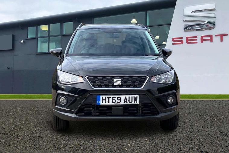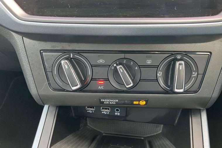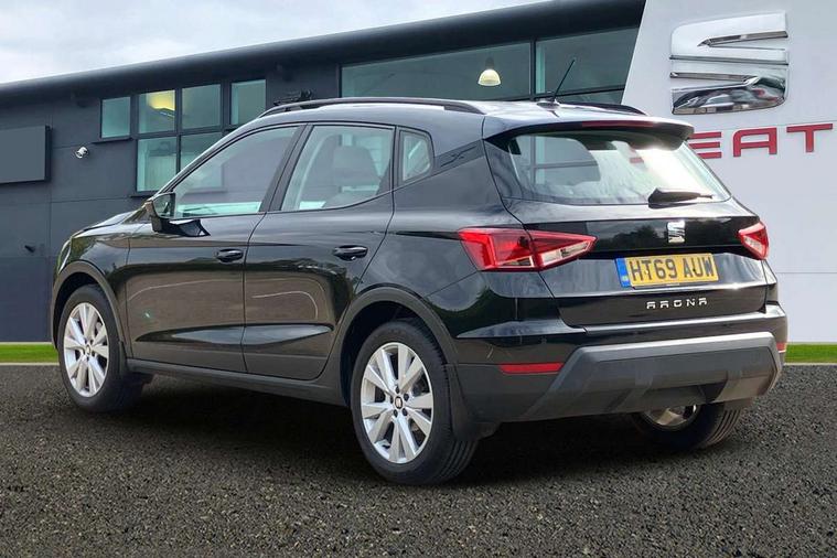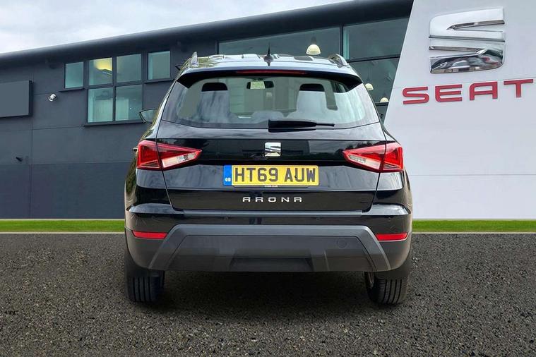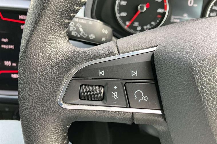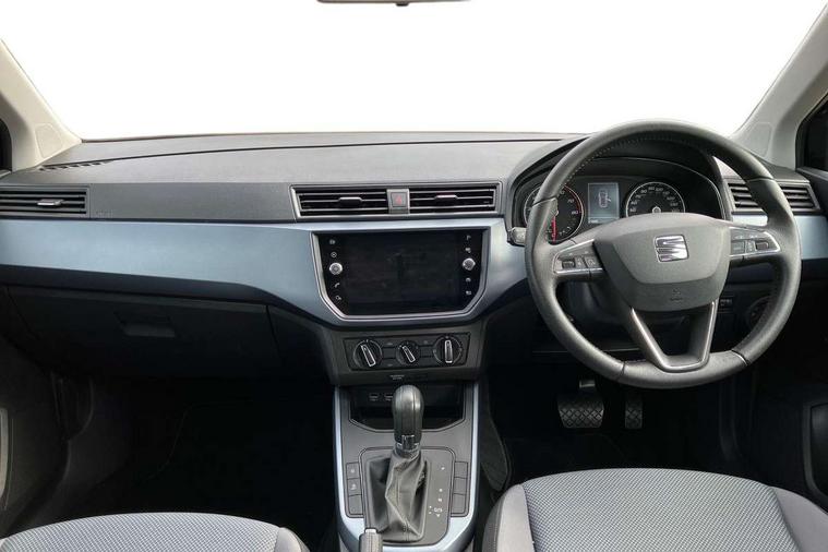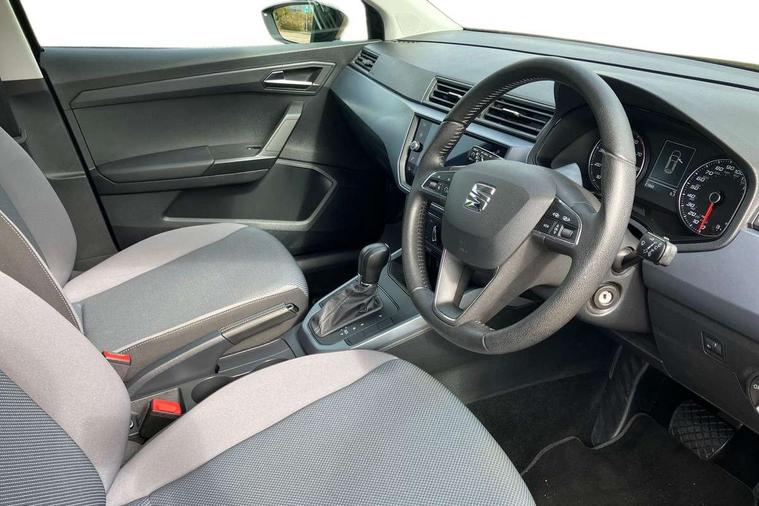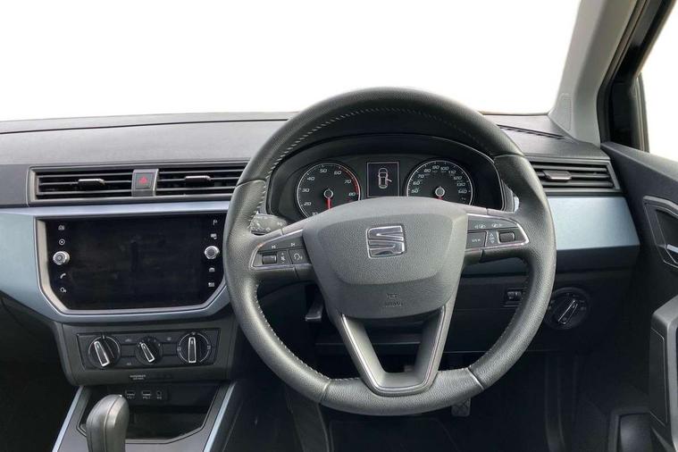 'Lights On' Reminder warning buzzer, Cruise control, Digital clock, Electric speed sensitive power steering, Full Link Smartphone Integration with Mirror Link, Apple Car Play, Google Android Auto with USB Type C cable for Apple and Android compatibility, Low fuel warning light, Outside temperature display, Rear parking sensor, RPM counter, Trip computer, Comfort suspension, 6 speakers, Bluetooth interface for hands free and audio streaming, DAB digital radio and AM/FM radio, Steering wheel mounted audio controls, Anti theft roof antenna, Automatic activation of hazard warning lights, Automatic headlights, Black roof rails, Black window trims, Body coloured bumpers, Body coloured door handle inserts, Body coloured door mirrors, Chrome front grille frame, Dimming rear view mirror, Electric adjustable door mirrors, Electric front/rear windows with one touch/auto up/down, Electric headlight adjustment, Front fog lights with cornering function and rear fog light, Hidden exhaust pipe, LED daytime running lights, LED rear tail lights and licence plate lights, Rear window wash/wipe, Visible VIN plate, Windshield wiper with intermittent control and potentiometer, 2 cupholders, 60/40 split folding rear seat, Air conditioning, Cloth upholstery, Double boot floor, Driver sunvisor with covered mirror + card holder, Dust/pollen filter, Front courtesy light with front reading lights, Gear shift indicator, Grey interior roof, Height adjustable front seats, Height/reach adjustable steering column, Illuminated boot, Instrument lighting with brightness control, Interior footwell lighting, ISOFIX points in outer rear seats with top tether anchorage points, Leather steering wheel/gear knob/handbrake, Multi-colour ambient interior lighting, Passenger sunvisor with vanity mirror, Two front and three rear height adjustable headrests, Connectivity pack plus - Arona, Interior chrome pack - Arona, 3 point seatbelts on all rear seats, ABS, Active front headrests, Child locks on rear doors, Driver and front passenger airbags with front passenger airbag de activation, front side and curtain airbags, Electronic stability control, Emergency Brake Assist (EBA) and front assist, Front and rear seatbelt reminder, Hill hold control, Multi-Collision braking, Tiredness recognition system, Traction control, Tyre pressure monitoring system, 2 folding remote keys with window open/close function, Electronic engine immobiliser, Locking wheel bolts, Remote central locking + deadlocks, Interior chrome line trim, Plastic grey dashboard, 17" Dynamic alloy wheels,
