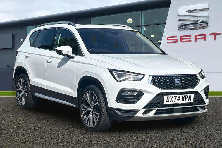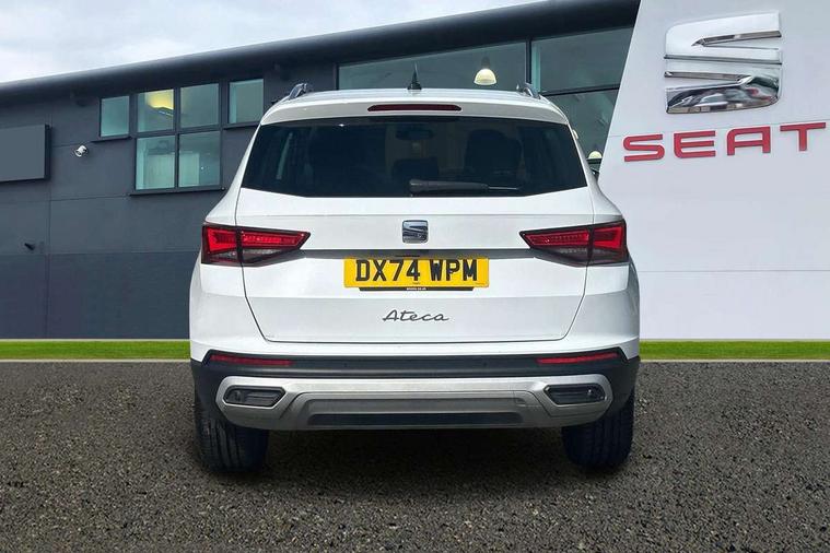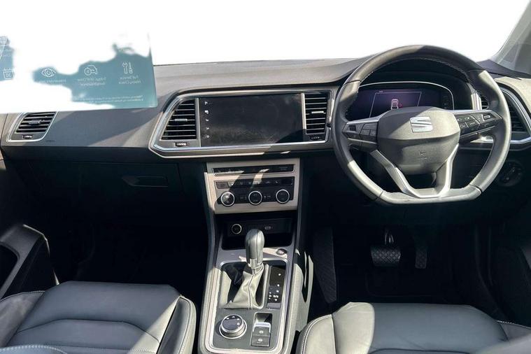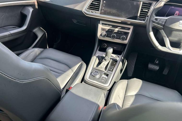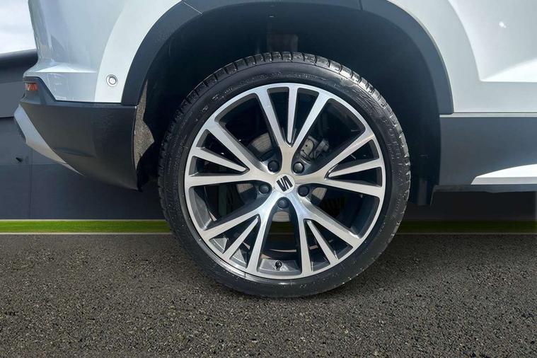 10" Digital cockpit, E-call, Electric tailgate with virtual pedal, Outside temperature gauge, Progressive power assisted steering, SEAT drive profile with driving experience button - Normal, Sport, Eco and Individual mode, gearshift, steering and throttle response, Self parking functionality (includes front and rear parking sensors), Start/stop system, Top view camera, Trip computer, wired and wireless full link smartphone integration, Wireless phone charger, Steering wheel mounted audio/phone controls, Black wheel arch surrounds, Body colour bumpers, Chrome front grille frame, Chrome roof rails, Chrome side window trim, Dark tinted rear windows, Daytime running lights, Door mirrors with welcome light silhouette, Dynamic headlight range control with self adjusting whilst driving, Electric adjustable/heated/folding door mirrors, Front and rear electric windows, Front grille hot stamping, Full LED headlamps with lens and LED front fog lamps with cornering function, Heat reflecting windscreen, Illuminated aluminium front door sill, LED 3rd brake light, LED rear tail lights with dynamic indicators, Rear exhaust tailpipe, Rear fog lights, Rear side wing doors, Rear wash/wipe, Reflex silver side mouldings, Variable front intermittent wipers, 12v socket in front, 3 seat bench in 2nd row, 60/40 split folding rear seat, Drawer under right front seat, Dual zone climate control, Front and rear head restraints, Front centre armrest, Front seat back storage pockets, Heated front seats, Heated steering wheel, Height adjustable driver and passenger seat with lumbar adjustment, ISOFIX points in outer rear seats with top tether anchorage points, Leather sports steering wheel and gear knob, Leather upholstery with front comfort seats, Rear armrest and easy back seat release mechanism from boot, Single front passenger seat, Steering wheel mounted gearshift paddles, Convenience pack - Ateca, Interior lighting pack - Ateca, Navigation system pack with DAB - Ateca, Safety and driving pack (L) - Ateca, Safety and driving pack with attention and drowsiness assist - Ateca, 3x3 point rear seatbelts, ABS, Traction control system (TCS), Electronic stability control (ESC) and Electronic differential lock system (XDS), Airbags - Driver and front passenger airbag with deactivation, front side, two curtain and driver's knee airbags, Electric parking brake with auto hold function, Front and rear seatbelt reminder, Hill hold control, Manual rear child locks, Single tone horn, Tiredness recognition system, Tyre pressure monitoring system, Alarm, Keyless entry, Locking wheel bolts, Remote central locking, Chrome interior detailing, 19" Exclusive machined alloy wheels 36/4 in nuclear grey,