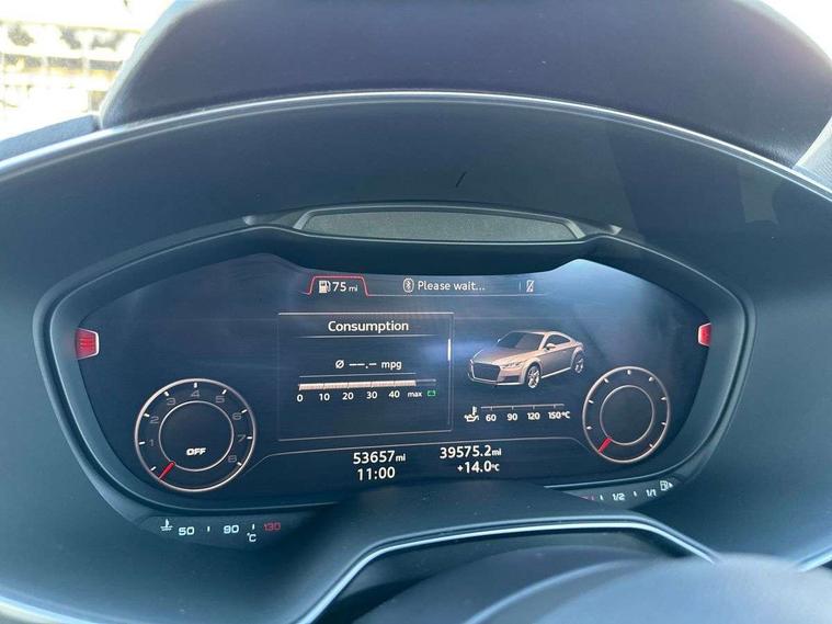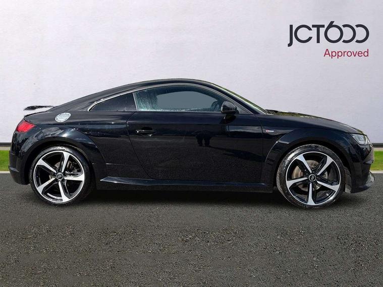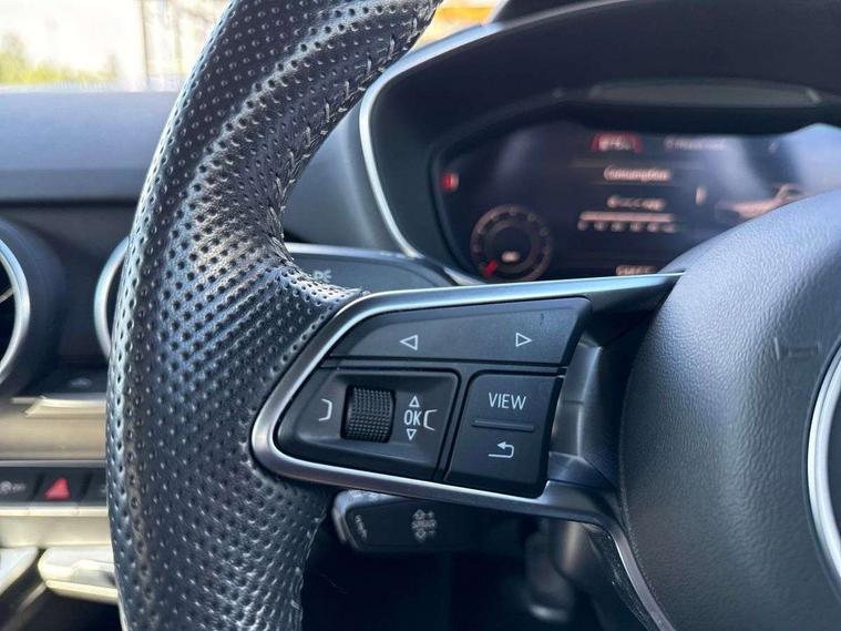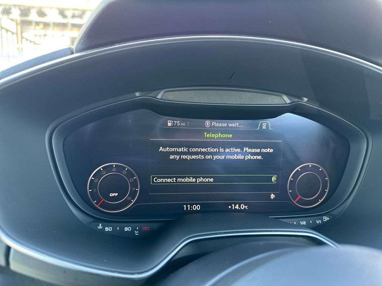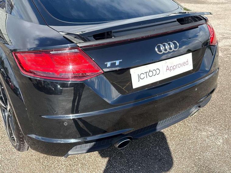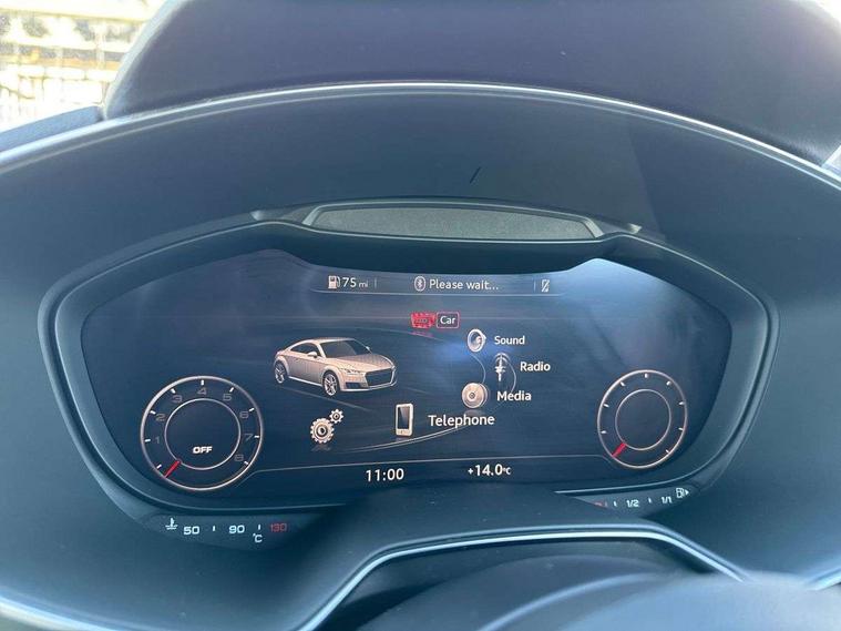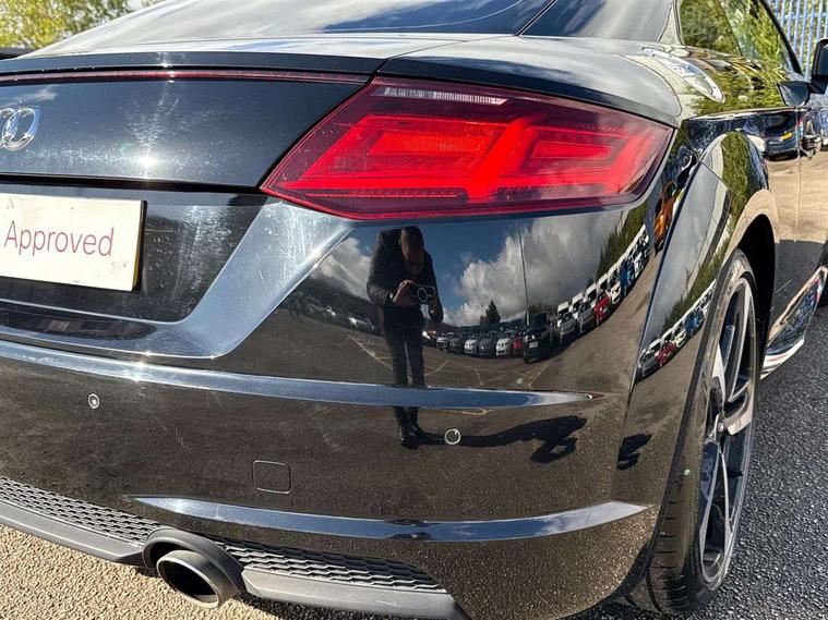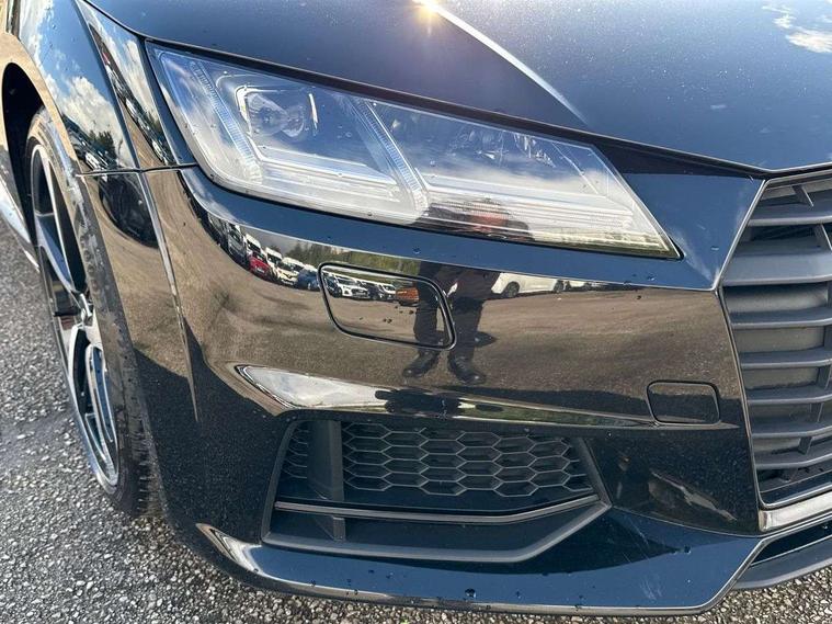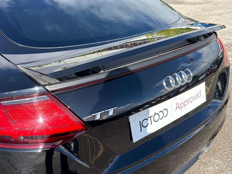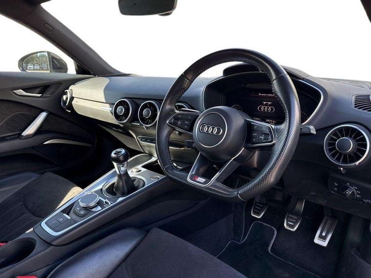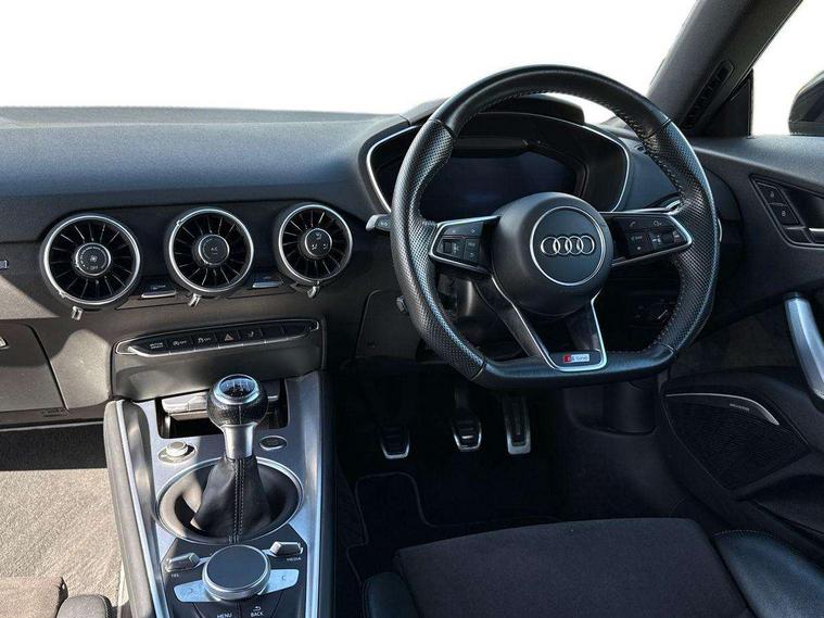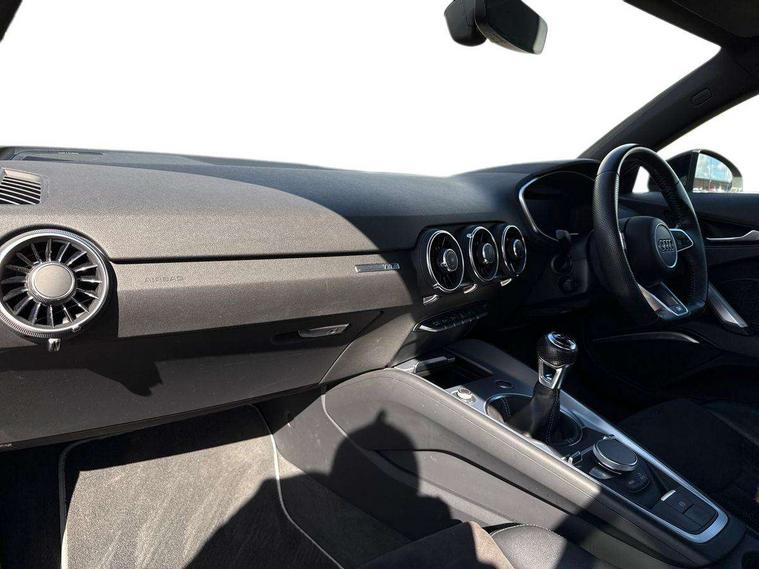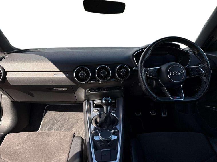 Audi drive select, Audi virtual cockpit - 12.3" high-resolution LCD display with fully customisable instrument cluster, Cruise control + speed limiter, MMI touch panel, Mobile phone preparation with bluetooth interface, Progressive power assisted steering, Service interval indicator, Audi music interface, Auxiliary input socket, Bluetooth audio streaming, DAB Digital radio, MMI Radio with CD player and SD/XC card slot, Auto headlight range control, Black door mirrors, Body colour bumpers, Electric front windows, Front fog lights, Green tinted heat insulating glass, High gloss black front grille, LED daytime running lights, Matt black radiator grille and number plate holder, Privacy glass, Rear diffuser, Retractable rear boot spoiler, S Line body styling, Sunband for windscreen, 3 spoke leather multifunction sports steering wheel, Aluminium door sill trims, Black headlining, Electric lumbar support, Extended aluminium look with stainless steel pedals, Front centre armrest, Front head restraints, Front passenger seat isofix location point, Height/reach adjust steering wheel, ISOFIX on outer rear seats, Perforated leather gearknob, Split folding rear seat, Top tether anchor plate for isofix child seat, Auto dimming rear view mirror with light and rain sensors pack - TT, High gloss black pack - TT, Non smoking pack - TT/TT RS, 3 point front seat belts, ABS, ASR traction control, Curtain airbags, Driver/Front Passenger airbags, EDL traction control, Electromechanical parking brake, ESP, First aid kit, Front passenger airbag deactivation, Front side airbags, Head airbags, Seatbelt warning, Tyre pressure warning, Warning triangle, Anti theft alarm, Immobiliser, Keyless Start, Locking wheel bolts, Remote central locking, Matt brushed aluminium inlays, Tyre repair kit,