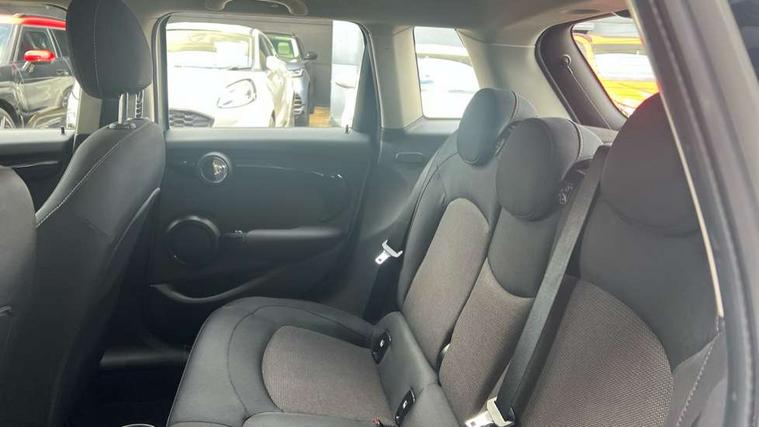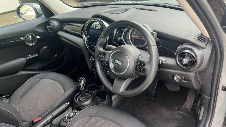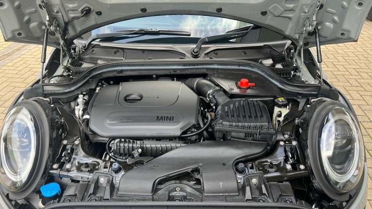 Automatic start/stop function with brake energy recuperation, Compatible mobile phone bluetooth with audio streaming, Cruise control with brake assist, Electro-mechanical speed dependant steering assistance, Flexible car sharing preparation, Instrument cluster, Mini E-call, MINI TeleServices, On board computer, Service interval indicator, Double Vanos system, Fully variable valve control, Gear change indicator display, High precision injection, Performance Control, Steptronic transmission with double clutch, 6 speakers in front door trims and underneath front seats, 8.8" touchscreen with LED ring, FM tuner and DAB digital radio, Automatic headlight activation switch, Body colour fuel filler cap, Chrome border high gloss black slats radiator grille, Dynamic brake lights, Electric front+rear windows, Exhaust tailpipe on left with chrome finisher, Heated rear window, Heated windscreen washer jets, LED headlight with closed ring and daytime driving lights, Metal door sill strips with MINI imprint, Model logo Cooper on right of tailgate, Rain sensor window wipers, Rear fog lights, Rear LED lights with union jack design, Rear window wiper, Side scuttle panel with integrated indicator, Sun/heat protection glass, White indicator lenses, 12V Accessory socket in centre console, 4 lashing eyes in luggage compartment, 60/40 split folding rear seat, Ambient lighting, Carbon black colour line - Knee roll and door armrest, Chrome interior highlights, Cupholders, Front and rear head restraints, Front and rear isofix with front passenger airbag deactivation, Glove compartment, Height and length steering column adjustment, Interior lighting with 12 different colours across the dashboard, underneath door bezel with illuminated laser-engraved design on central display, Leatherette gearshift lever and handbrake gaiters, LED reading lights, vanity mirror lights, front foot well light and spotlight on front seats, Manual air conditioning, Mechanical seat adjustment - forward/back & backrest for front seats and driver seat height adjust, Multifunction steering wheel, Satellite grey headlining including grab handles and clothes hooks, Sport leather steering wheel with speed limiter and audio/communication controls, Storage compartments in doors, Sunvisors with vanity mirrors, Tool kit, Velour floor mats, 3 point seatbelts on all five seats, 6 Airbags - front, side, head and seat belt tensioners, Anti-lock braking system (ABS), DSC - Dynamic Stability Control, Front and rear disc brakes, Hill start assist, Single tone fanfare horn, Tyre pressure monitoring system, Alarm system with tilt sensor, monitoring doors, bonnet interior and tailgate, Electronic vehicle immobiliser, Start/stop toggle with keyless go, Piano black interior trim, Tyre repair kit,
