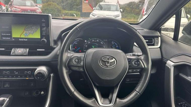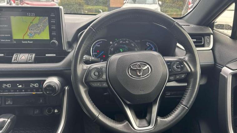 7" TFT multi information display, Analog tachometer, Apple car play and Android auto, Blind spot monitoring with rear cross traffic alert, Bluetooth system, Cyclist Detection, Drive mode selector, eCall emergency call system, ECO-driving indicator, Electric power steering, EV audible alert, Front parking sensors, Full range intelligent adaptive cruise control, Hybrid system indicator, Lane departure warning system, Lane trace assist, Lights on warning, Memory on adjustable speed limiter, My T Connected services, Night Time Pedestrian Detection, Power boot opening and closing, Push button start, Rear parking camera, Rear parking sensors, Remote boot door release in cabin, Remote boot door release in key, Road sign assist - RSA, Touch 2 Go navigation system including 3D maps and voice control, Traffic sign recognition, Trip computer, Voice control system, Vehicle Stability Control (VSC), 6 speakers, 8" Multimedia display touch screen, Auxiliary socket for external MP3 player, DAB audio, Toyota touch media system, USB connection, Adaptive automatic high beam, Automatic headlamp levelling, Automatic headlights, Automatic wipers, Automatically retractable door mirrors, Black rear spoiler, Black roof rails, Black Shark-fin antenna, Body colour door handles, Door mirror puddle lights, Dual exhaust pipes, Electric adjustable door mirrors, Electrochromatic rear view mirror, Emergency brake-light signal (EBS), Follow me home headlights, Front fog lights, Glass black protection moulding on side doors, Gloss black door mirrors, Gloss black front and rear bumper, Heated door mirrors, LED daytime running lights, LED High mounted stop lamp, LED rear combination lights, Meshed upper front grille, Power front windows, Power rear windows, Privacy glass, Projector LED headlights, Rear screen wiper - intermittent, Rear windscreen defogger, Silver front under-run, Silver rear under-run, Trailer sway control, Turning signal integrated indicators in door mirrors, 3 rear headrests, 60/40 split fold rear seat back, Black roof lining, Boot light, Clean air filter, Driver and front passenger personal light, Driver and front passenger Whiplash Injury Lessening seats, Driver and passenger sunvisors with illuminated vanity mirrors, Dual sided deck board in boot, Dual zone automatic air conditioning, Dynamic sports seats, Floor mats, Folding rear centre armrest, Front and rear bottle holders, Front centre armrest, Front footwell lights, Front headrests, Front seat and rear pockets, Front/rear roof mounted assist grips, Heated driver and front passenger seats, Illuminated entry system, Isofix child seat preparation, Leather gear shift with chrome surround, Light blue ambient lighting on front cupholders and open tray, Manual telescopic and tilt 3-spoke leather steering wheel with Chrome insert, Manually reclining and sliding front passenger seat, Multimedia switches on steering wheel, Pollen filter, Power height-adjustable sliding reclining and lumbar support for driver seat, Rear coat hooks, Rear door armrests, Rear passenger air vents, Rear view display in display audio screen with dynamic guide lines, Reclining rear seats, Satin chrome interior door handles, Sunglasses holder, Synthetic leather upholstery, Telephone and voice recognition switches on steering wheel, 3x3 point rear seatbelts, ABS/EBD, Acoustic vehicle alerting system, Adjustable front driver and passenger seat belt extender, Brake assist function, Brake hold function, Child proof door locks, Collision mitigation braking system, Driver/Front Passenger airbags, Driver/front passenger side airbags, Drivers knee airbag, Electronic parking brake, Electronic Stability Programme (ESP), Front and rear curtain airbags, Front and rear seatbelt reminder, Front passenger airbag detector, Hill start assist, Passenger airbag cut-off device, Pedestrian detection, Pre collision system, Seatbelt pretensioners with load limiters, Toyota safety sense, Traction control, Tyre pressure warning, Glass-breaking alarm sensors, Immobiliser, Intrusion alarm, Light - on and Key in reminder, Motion sensor alarm, Remote central locking, Smart entry + Smart start, Speed sensitive auto door locking, Tilt detection sensors, Piano black centre console with silver insert, Soft-touch black lower dashboard, Soft-touch black upper dashboard with silver insert, 19" 5 Spoke black alloy wheels, Tyre repair kit,