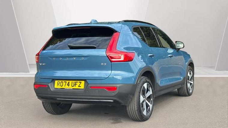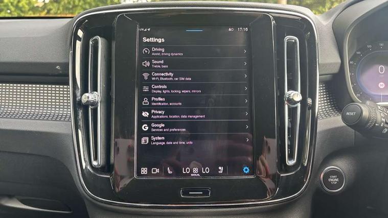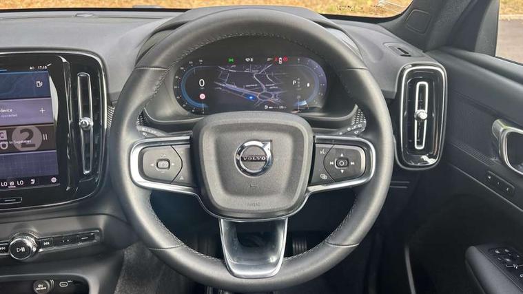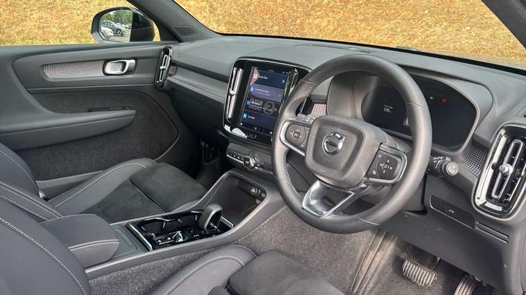 12.3" Progressive Driver Display, 9" centre console portrait touch screen, Adjustable steering wheel force, Apple carplay (wired), Bluetooth handsfree system, Cruise control, Driver alert control, Driver awareness - Blind spot information system with steer assist, cross traffic alert with autobrake and rear collision warning and mitigation, E-call, Front park assist, Google automotive services - Enabled entertainment apps, navigation with google maps, voice recognition with google assistant, Hands free power tailgate, Intelligent speed assistance, Lane keeping aid, Oncoming Lane Mitigation, Rear park assist, Rear park assist camera, Speed sensitive steering, Volvo cars services with app - Driving journal, emergency and breakdown call, engine remote start, remote door locking/unlocking and vehicle dashboard, Wireless/Inductive Mobile Phone Charging, Automatic transmission with start/stop and manual change functions, Dynamic chassis, DAB Digital radio, High performance sound, 8 speakers/250W, 2 front type C and 2 rear type C USB, Steering wheel mounted remote controls, Adaptive brake lights with high level LED brake lights, Auto dimming feature for exterior door mirrors, Auto dimming interior mirror, Automatic headlamp levelling, Automatic LED Headlights + Active high beam incorporating daytime running lights, Front aluminium tread plates, Front and rear electric windows, High gloss black front and rear skid plate, High gloss black front bumper deco, High gloss black mesh front grille with high gloss black surround, High gloss black window trim, Home safe and approach lighting, Integrated roof rails in high gloss black, LED front fog lights, Puddle lights, Rain sensor with automatic windscreen wiper activation, Rear side wing doors, Rear wiper, Roof antenna, Roof spoiler, Visible VIN plate, 12V socket in front tunnel console and luggage compartment, 2-Zone electronic climate control with CleanZone air quality system and pollen filter, 3 seat bench in 2nd row, 3 Spoke tailored steering wheel with chrome trim, 60/40 versatile split folding rear seat, A-pillar parking ticket holder, Centre console cupholders and storage, Charcoal headlining, Connect textile/microtech upholstery, Flexible load floor and grocery bag holder, Floor mats, Front cabin courtesy lights, Front door pocket, front cupholder, ambient front door, rear reading, rear courtesy, instrument panel and tailgate lighting, Front footwell illumination, Front headrests, Front reading lights, Front seat cushion extensions, Front side step illumination (under door), Glovebox bag hook, Heated front seats, Height adjustable passenger seat, Height/reach adjustable steering column, High gloss centre tunnel deco, Illuminated glovebox, Illuminated luggage compartment, Illuminated vanity mirrors + ticket holder, Integrated waste bin, Isofix attachments on outer rear seats, Load cover, Load protection net, Multi directional lumbar support for driver and passenger seat, Power driver seat with memory + exterior mirrors memory, Rear armrest with cupholders, Rear headrests, Single front passenger seat, Underfloor cargo storage, Climate pack without heated front seats - XC40, 3x3 point rear seatbelts, City safety with steering support with Pedestrian + cyclist + front collision warning with full auto brake and rear auto brake, Driver and passenger airbags, Drivers knee airbag, Electronic parking brake with auto hold, First aid kit, Front and outer rear seatbelt reminder and pretensioners, Front seats SIPS airbags, Hill descent control, Hill start assist, Inflatable curtain, Passenger airbag cut-off device, Power child locks on rear doors, Road sign information display, Run off Road Protection, SIPS (Side Impact Protection System), Slippery road and hazard light alert, Stability and Traction Control with Spin control, Engine Drag Control and Corner Traction Control, Tyre pressure monitoring system, Vehicle deceleration control with Anti-lock Brake System, Electronic Brake Distribution and Emergency Brake Assist, Warning triangle, WHIPS whiplash protection system - front, 2 x Key integrated remote control central locking including with deadlocking system and auto open/close windows, Anti-theft alarm including immobiliser/volume sensor + level sensor, Keyless drive includes keyless entry and keyless start, Locking wheel nuts,