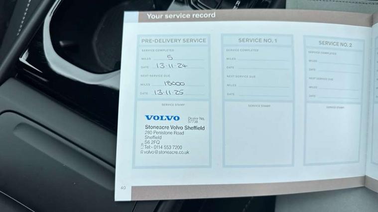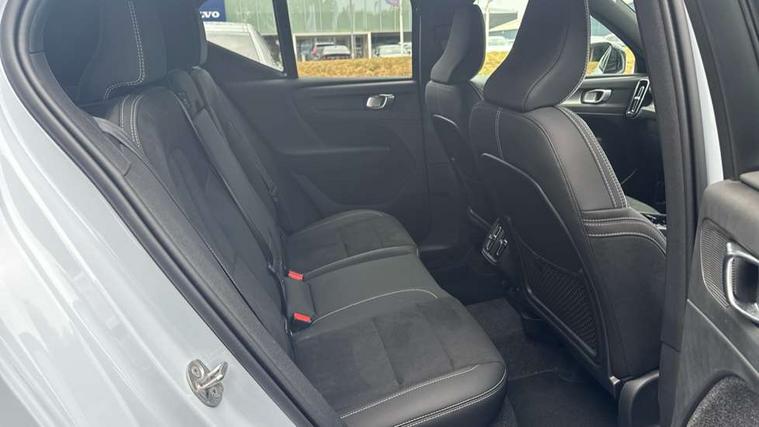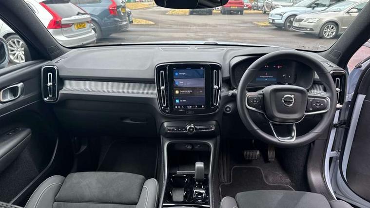 12.3" Progressive Driver Display, 9" centre console portrait touch screen, Adjustable steering wheel force, Apple carplay (wired), Bluetooth handsfree system, Cruise control, Driver alert control, E-call, Front park assist, Google automotive services - Enabled entertainment apps, navigation with google maps, voice recognition with google assistant, Hands free power tailgate, Intelligent speed assistance, Lane keeping aid, Oncoming Lane Mitigation, Rear park assist, Rear park assist camera, Speed sensitive steering, Volvo cars services with app - Driving journal, emergency and breakdown call, engine remote start, remote door locking/unlocking and vehicle dashboard, Wireless/Inductive Mobile Phone Charging, Automatic transmission with start/stop and manual change functions, Dynamic chassis, DAB Digital radio, Steering wheel mounted remote controls, Adaptive brake lights with high level LED brake lights, Auto dimming interior mirror, Automatic headlamp levelling, Automatic LED Headlights + Active high beam incorporating daytime running lights, Front aluminium tread plates, Front and rear electric windows, High gloss black front and rear skid plate, High gloss black front bumper deco, High gloss black mesh front grille with high gloss black surround, High gloss black window trim, Home safe and approach lighting, Integrated roof rails in high gloss black, LED front fog lights, Puddle lights, Rain sensor with automatic windscreen wiper activation, Rear side wing doors, Rear wiper, Roof antenna, Roof spoiler, Visible VIN plate, 12V socket in front tunnel console and luggage compartment, 2-Zone electronic climate control with CleanZone air quality system and pollen filter, 3 seat bench in 2nd row, 3 Spoke tailored steering wheel with chrome trim, 60/40 versatile split folding rear seat, Centre console cupholders and storage, Flexible load floor and grocery bag holder, Floor mats, Front cabin courtesy lights, Front door pocket, front cupholder, ambient front door, rear reading, rear courtesy, instrument panel and tailgate lighting, Front footwell illumination, Front headrests, Front reading lights, Front seat cushion extensions, Front side step illumination (under door), Glovebox bag hook, Heated front seats, Height adjustable passenger seat, Height/reach adjustable steering column, High gloss centre tunnel deco, Illuminated glovebox, Illuminated luggage compartment, Illuminated vanity mirrors + ticket holder, Integrated waste bin, Isofix attachments on outer rear seats, Load cover, Load protection net, Multi directional lumbar support for driver and passenger seat, Power driver seat with memory + exterior mirrors memory, Rear armrest with cupholders, Rear headrests, Single front passenger seat, Underfloor cargo storage, Climate pack without heated front seats - XC40, 3x3 point rear seatbelts, City safety with steering support with Pedestrian + cyclist + front collision warning with full auto brake and rear auto brake, Driver and passenger airbags, Drivers knee airbag, Electronic parking brake with auto hold, First aid kit, Front and outer rear seatbelt reminder and pretensioners, Front seats SIPS airbags, Hill descent control, Hill start assist, Inflatable curtain, Passenger airbag cut-off device, Power child locks on rear doors, Road sign information display, Run off Road Protection, SIPS (Side Impact Protection System), Slippery road and hazard light alert, Stability and Traction Control with Spin control, Engine Drag Control and Corner Traction Control, Tyre pressure monitoring system, Vehicle deceleration control with Anti-lock Brake System, Electronic Brake Distribution and Emergency Brake Assist, Warning triangle, WHIPS whiplash protection system - front, 2 x Key integrated remote control central locking including with deadlocking system and auto open/close windows, Anti-theft alarm including immobiliser/volume sensor + level sensor, Keyless drive includes keyless entry and keyless start, Locking wheel nuts,