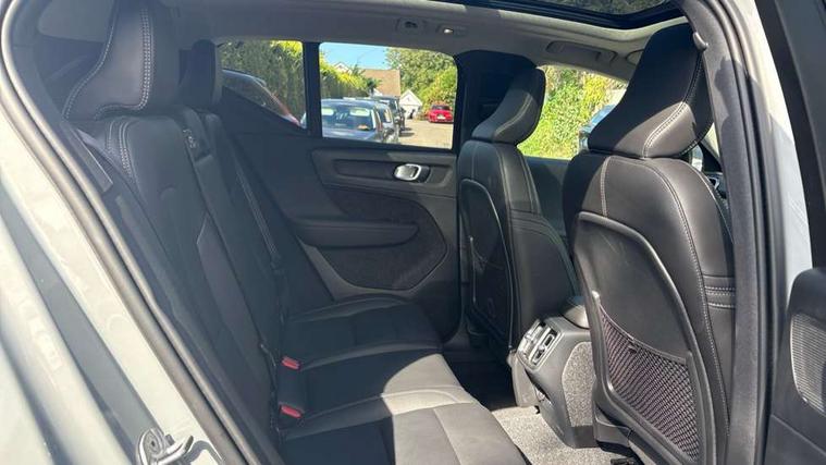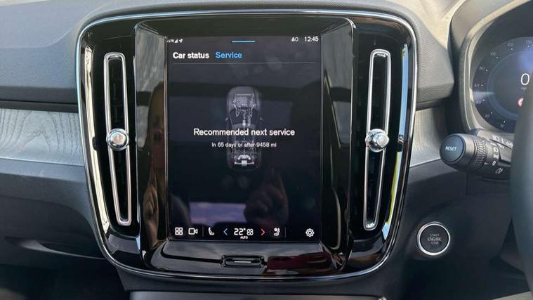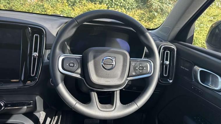 12.3" Progressive Driver Display, 360 degree surround view parking camera with side proximity sensors, 9" centre console portrait touch screen, Adjustable steering wheel force, Android auto (Wired), Apple carplay (wired), Bluetooth handsfree system, Driver alert control, Driver assistance (pilot assist and adaptive cruise control), Driver awareness - Blind spot information system with steer assist, cross traffic alert with autobrake and rear collision warning and mitigation, E-call, Front park assist, Google automotive services - Enabled entertainment apps, navigation with google maps, voice recognition with google assistant, Hands free power tailgate, Intelligent speed assistance, Lane keeping aid, Oncoming Lane Mitigation, Rear park assist, Speed sensitive steering, Volvo cars services with app - Driving journal, emergency and breakdown call, engine remote start, remote door locking/unlocking and vehicle dashboard, Wireless/Inductive Mobile Phone Charging, Automatic transmission with start/stop and manual change functions, Dynamic chassis, DAB Digital radio, Premium Sound by Harman Kardon, Dolby Pro Logic II Surround Sound, Dirac Unison, 12 speakers/600W and subwoofer, Steering wheel mounted remote controls, Active bending pixel LED headlights with adaptive shadow technology, Active high beam incorporating daytime running lights, Adaptive brake lights with high level LED brake lights, Auto dimming feature for exterior door mirrors, Auto dimming interior mirror, Automatic headlamp levelling, Dark tinted windows - rear side windows and rear screen, Front aluminium tread plates, Front and rear electric windows, Headlight cleaning system, High gloss black front and rear skid plate, High gloss black front bumper deco, High gloss black mesh front grille with high gloss black surround, High gloss black window trim, Home safe and approach lighting, Integrated roof rails in high gloss black, LED front fog lights with cornering function, Power glass tilt and slide panoramic sunroof with sun curtain, Puddle lights, Rain sensor with automatic windscreen wiper activation, Rear side wing doors, Rear wiper, Roof antenna, Roof spoiler, Visible VIN plate, 12V socket in front tunnel console and luggage compartment, 2-Zone electronic climate control with CleanZone air quality system and pollen filter, 3 seat bench in 2nd row, 3 Spoke tailored steering wheel with chrome trim, 60/40 versatile split folding rear seat, Centre console cupholders and storage, Flexible load floor and grocery bag holder, Floor mats, Front cabin courtesy lights, Front door pocket, front cupholder, ambient front door, rear reading, rear courtesy, instrument panel and tailgate lighting, Front footwell illumination, Front headrests, Front reading lights, Front seat cushion extensions, Front side step illumination (under door), Glovebox bag hook, Heated front seats, Height/reach adjustable steering column, High gloss centre tunnel deco, Illuminated glovebox, Illuminated luggage compartment, Illuminated vanity mirrors + ticket holder, Integrated waste bin, Isofix attachments on outer rear seats, Load cover, Load protection net, Multi directional lumbar support for driver and passenger seat, Power driver seat with memory + exterior mirrors memory, Power folding rear headrests, Power passenger seat, Rear armrest with cupholders, Single front passenger seat, Underfloor cargo storage, Climate pack without heated front seats - XC40, 3x3 point rear seatbelts, City safety with steering support with Pedestrian + cyclist + front collision warning with full auto brake and rear auto brake, Driver and passenger airbags, Drivers knee airbag, Electronic parking brake with auto hold, First aid kit, Front and outer rear seatbelt reminder and pretensioners, Front seats SIPS airbags, Hill descent control, Hill start assist, Inflatable curtain, Passenger airbag cut-off device, Power child locks on rear doors, Road sign information display, Run off Road Protection, SIPS (Side Impact Protection System), Slippery road and hazard light alert, Stability and Traction Control with Spin control, Engine Drag Control and Corner Traction Control, Tyre pressure monitoring system, Vehicle deceleration control with Anti-lock Brake System, Electronic Brake Distribution and Emergency Brake Assist, Warning triangle, WHIPS whiplash protection system - front, 2 x Key integrated remote control central locking including with deadlocking system and auto open/close windows and sunroof, Anti-theft alarm including immobiliser/volume sensor + level sensor, Keyless drive includes keyless entry and keyless start, Locking wheel nuts,