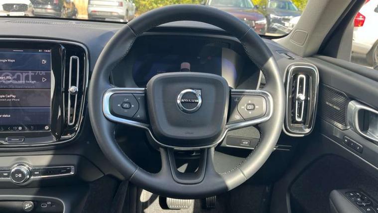 12.3" Progressive Driver Display, 360 degree surround view parking camera with side proximity sensors, 9" centre console portrait touch screen, Adjustable steering wheel force, Android auto (Wired), Apple carplay (wired), Bluetooth handsfree system, Driver alert control, Driver assistance (pilot assist and adaptive cruise control), Driver awareness - Blind spot information system with steer assist, cross traffic alert with autobrake and rear collision warning and mitigation, E-call, Front park assist, Google automotive services - Enabled entertainment apps, navigation with google maps, voice recognition with google assistant, Hands free power tailgate, Intelligent speed assistance, Lane keeping aid, Oncoming Lane Mitigation, Rear park assist, Speed sensitive steering, Volvo cars services with app - Driving journal, emergency and breakdown call, engine remote start, remote door locking/unlocking and vehicle dashboard, Wireless/Inductive Mobile Phone Charging, Automatic transmission with start/stop and manual change functions, Dynamic chassis, DAB Digital radio, Premium Sound by Harman Kardon, Dolby Pro Logic II Surround Sound, Dirac Unison, 12 speakers/600W and subwoofer, Steering wheel mounted remote controls, Active bending pixel LED headlights with adaptive shadow technology, Active high beam incorporating daytime running lights, Adaptive brake lights with high level LED brake lights, Auto dimming feature for exterior door mirrors, Auto dimming interior mirror, Automatic headlamp levelling, Dark tinted windows - rear side windows and rear screen, Front aluminium tread plates, Front and rear electric windows, Headlight cleaning system, High gloss black front and rear skid plate, High gloss black front bumper deco, High gloss black mesh front grille with high gloss black surround, High gloss black window trim, Home safe and approach lighting, Integrated roof rails in high gloss black, LED front fog lights with cornering function, Power glass tilt and slide panoramic sunroof with sun curtain, Puddle lights, Rain sensor with automatic windscreen wiper activation, Rear side wing doors, Rear wiper, Roof antenna, Roof spoiler, Visible VIN plate, 12V socket in front tunnel console and luggage compartment, 2-Zone electronic climate control with CleanZone air quality system and pollen filter, 3 seat bench in 2nd row, 3 Spoke tailored steering wheel with chrome trim, 60/40 versatile split folding rear seat, Centre console cupholders and storage, Flexible load floor and grocery bag holder, Floor mats, Front cabin courtesy lights, Front door pocket, front cupholder, ambient front door, rear reading, rear courtesy, instrument panel and tailgate lighting, Front footwell illumination, Front headrests, Front reading lights, Front seat cushion extensions, Front side step illumination (under door), Glovebox bag hook, Heated front seats, Height/reach adjustable steering column, High gloss centre tunnel deco, Illuminated glovebox, Illuminated luggage compartment, Illuminated vanity mirrors + ticket holder, Integrated waste bin, Isofix attachments on outer rear seats, Load cover, Load protection net, Multi directional lumbar support for driver and passenger seat, Power driver seat with memory + exterior mirrors memory, Power folding rear headrests, Power passenger seat, Rear armrest with cupholders, Single front passenger seat, Underfloor cargo storage, Climate pack without heated front seats - XC40, 3x3 point rear seatbelts, City safety with steering support with Pedestrian + cyclist + front collision warning with full auto brake and rear auto brake, Driver and passenger airbags, Drivers knee airbag, Electronic parking brake with auto hold, First aid kit, Front and outer rear seatbelt reminder and pretensioners, Front seats SIPS airbags, Hill descent control, Hill start assist, Inflatable curtain, Passenger airbag cut-off device, Power child locks on rear doors, Road sign information display, Run off Road Protection, SIPS (Side Impact Protection System), Slippery road and hazard light alert, Stability and Traction Control with Spin control, Engine Drag Control and Corner Traction Control, Tyre pressure monitoring system, Vehicle deceleration control with Anti-lock Brake System, Electronic Brake Distribution and Emergency Brake Assist, Warning triangle, WHIPS whiplash protection system - front, 2 x Key integrated remote control central locking including with deadlocking system and auto open/close windows and sunroof, Anti-theft alarm including immobiliser/volume sensor + level sensor, Keyless drive includes keyless entry and keyless start, Locking wheel nuts,