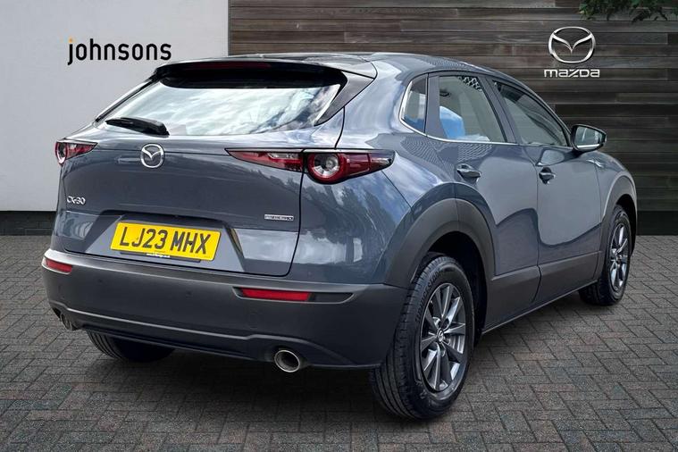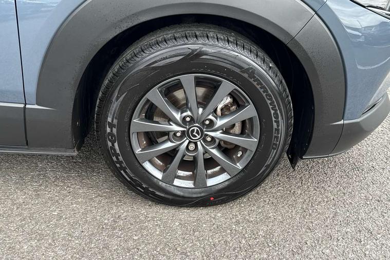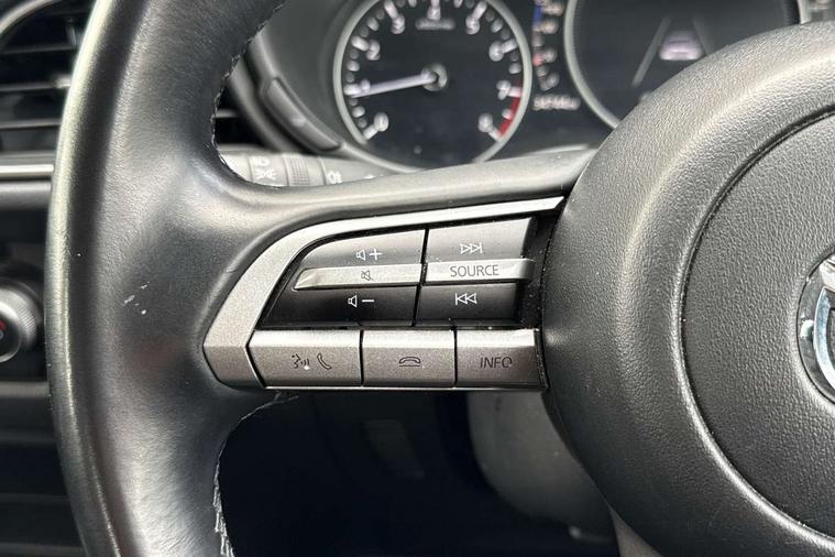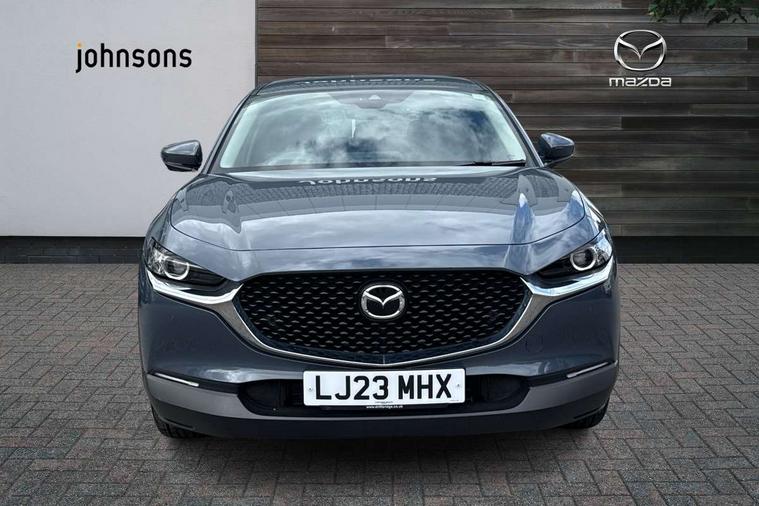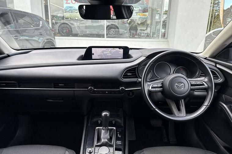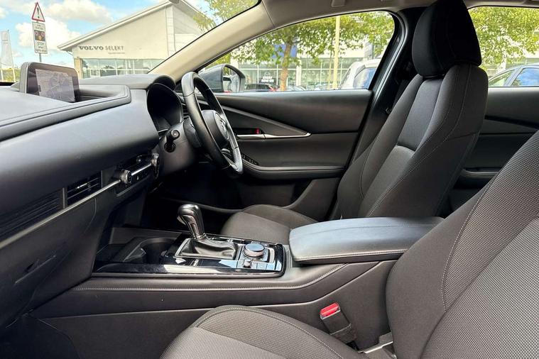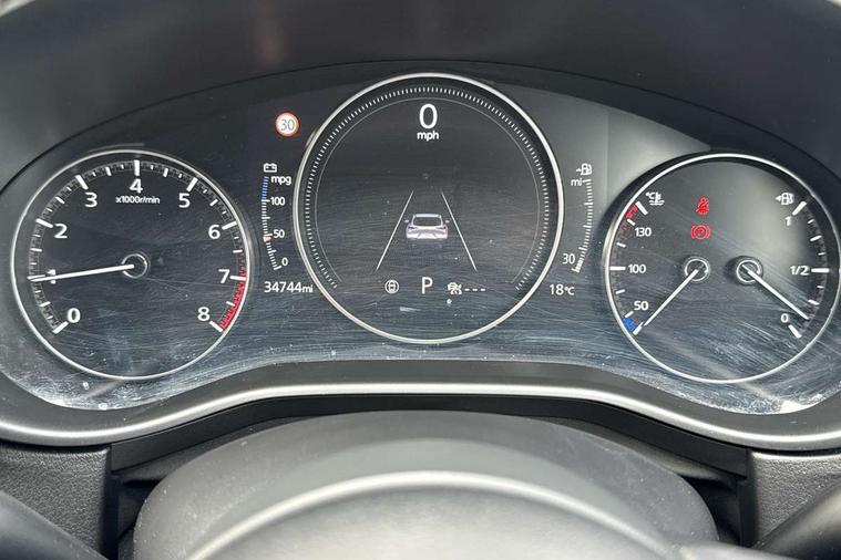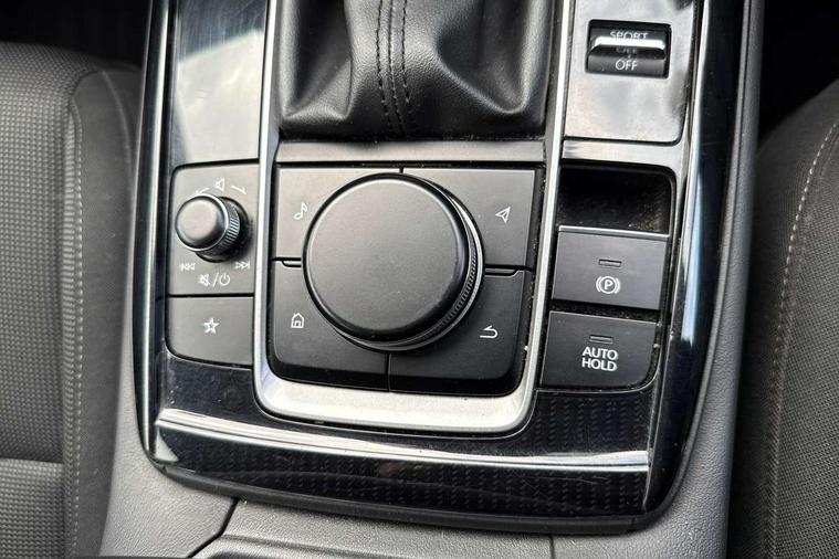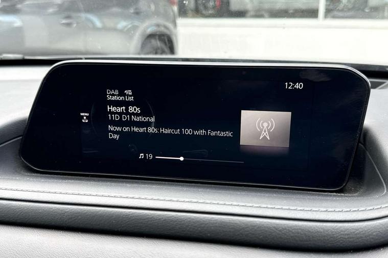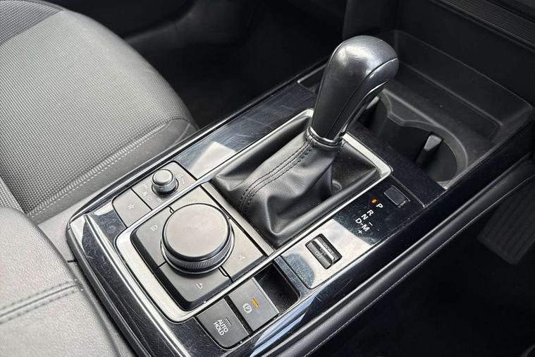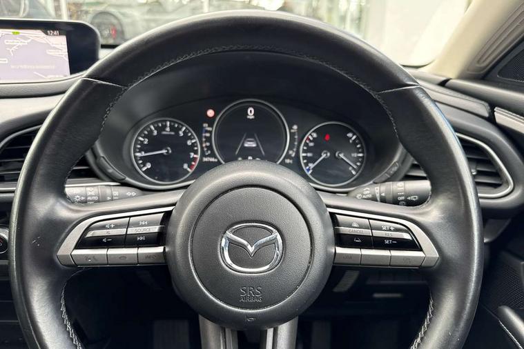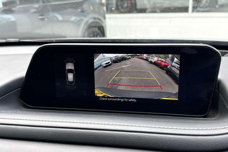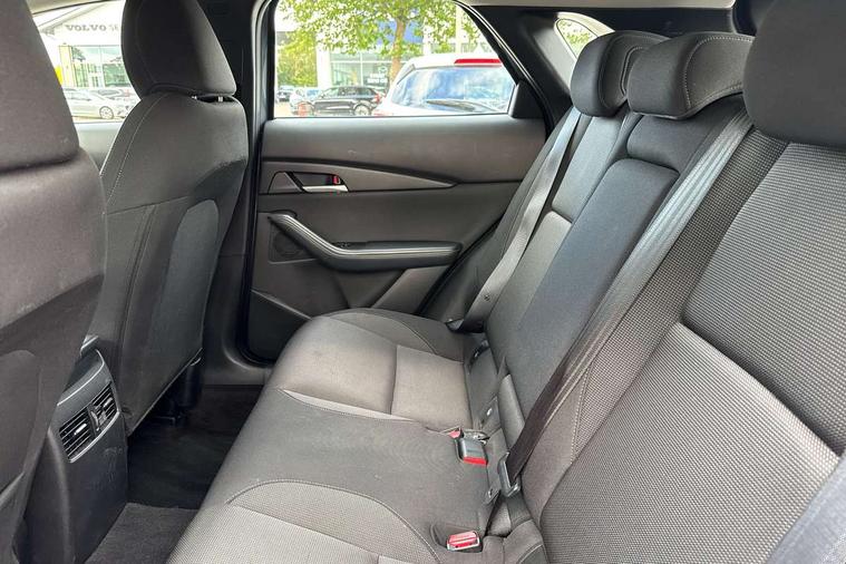 7" TFT Colour driver instrument panel display, 8.8" Colour centre touch screen display with Mazda Connect infotainment, Adaptive cruise control (Mazda radar cruise control) features stop and go, Apple car play/Android Auto, Blind spot monitoring with rear cross traffic alert, Drive mode selector, Driver attention alert system, E-call with GPS, Emergency stop signalling system, Engine start/stop button, Front and rear parking sensors, Integrated bluetooth, Integrated Mazda navigation system, Intelligent speed assist, Lane keep assist system (LAS) with Lane departure warning system (LDWS), Mazda connected services, PAS, Reversing camera, Service indicator, Tailgate, Traffic sign recognition, Trip computer, Windscreen projected colour active driving display (HUD), i-stop, 2 USB charging ports in front inner central armrest, AM / FM / DAB radio with 8 speakers, Multimedia Commander including separate volume dial, Steering wheel mounted audio/bluetooth controls, B-pillar and C-pillar garnishes in satin black finish, Auto dimming driver's door mirror, Auto dimming rear view mirror, Auto headlight levelling, Body coloured, electrically adjustable, heated auto power folding door mirrors with integrated indicators, Chrome finish signature wing in front grille, Coming/leaving home lighting function, Dual chrome exhaust, Dusk sensing headlights, Electric front/rear windows with one touch auto up/down, Front kodo turn signal, Gloss black rear roof spoiler, LED headlights with halogen daytime running lights and high beam control, LED rear combination lights, Rain sensing front wipers with adjustable speed and intermittent wipe, Rear fog lights, Rear side wing doors, Rear wiper, Satin black front grille, Third brake light, 12V power outlet in centre console, 3 seat bench in 2nd row, 60/40 split fold down rear seats, Cloth upholstery with interior accents, Dark cloth door panel inserts, Dashboard, door cards and front centre armrest in black cloth, Driver and front passenger visors with covered vanity mirror and driver ticket holder, Driver seat manual slide, recline, height and seat tilt adjust, Driver, front passenger and two rear door storage, Driver, Front passenger and two rear grab handles with coathooks, Dual zone climate control air conditioning with rear air vents, Folding rear centre armrest with two cup holders, Front and rear (x3) head restraints, Front and rear LED lighting, Front armrest, Front centre storage with two cupholders, Front passenger seatback pockets, Front passengers seat manual slide, recline and height adjustment, Glovebox illumination, Heated front seats with 3 stage setting, ISOFIX child seat anchorage points attached on outer rear seats, Leather wrapped gear shift knob, Leather wrapped steering wheel with telescopic and tilt adjustment, LED luggage compartment lighting, Light roof headlining and pillars, Roof mounted sunglasses holder, Single front passenger seat, 3 point ELR front seat belts x2 with pretensioners, 3 point ELR rear seat belts, Anti-lock braking system (ABS), Drivers knee airbag, DSC - Dynamic Stability Control, Electronic parking brake with auto disengage function and auto hold function, Front and rear curtain airbags, Front dual stage driver and single stage front passenger airbags, Front passenger airbag cut-off switch, Front side airbags, Front smart city brake support, G-Vectoring control plus, Hill launch assist, Manual child lock in rear doors, Mild Hybrid system with regenerative braking, Seatbelt reminder for driver/front passenger and rear seats, Traction control system (TCS), Tyre pressure monitoring system (TPMS), Remote central locking with deadlocking and automatic door lock when driving, Smart keyless entry, Thatcham accredited alarm and immobiliser, 16" Grey alloy wheels, Emergency tyre repair kit,