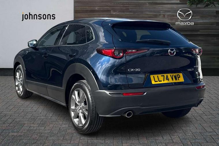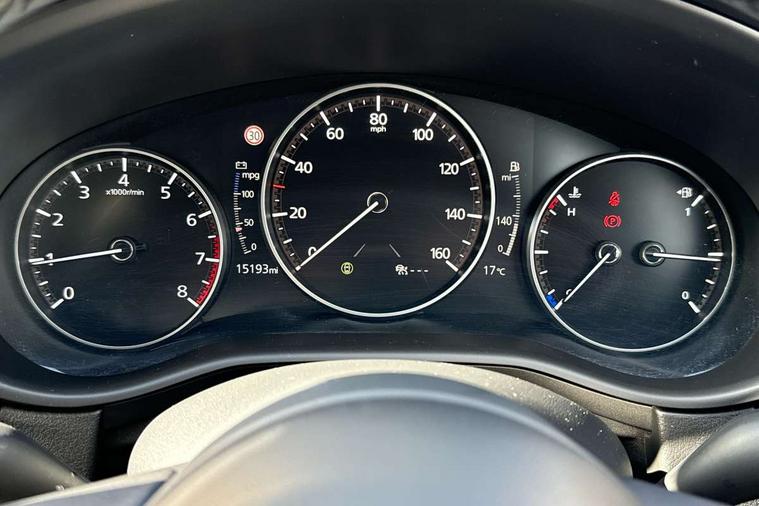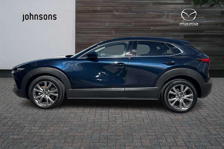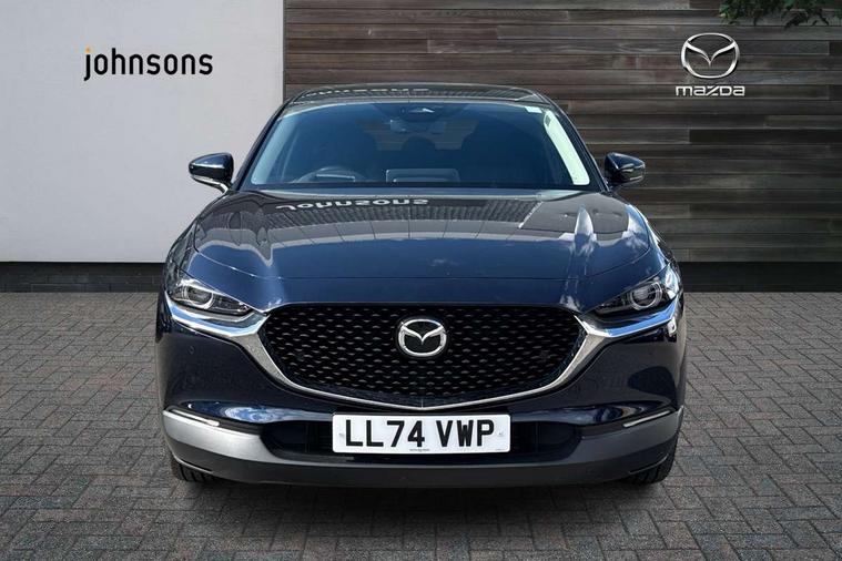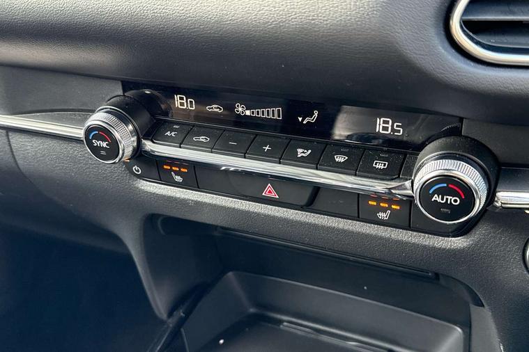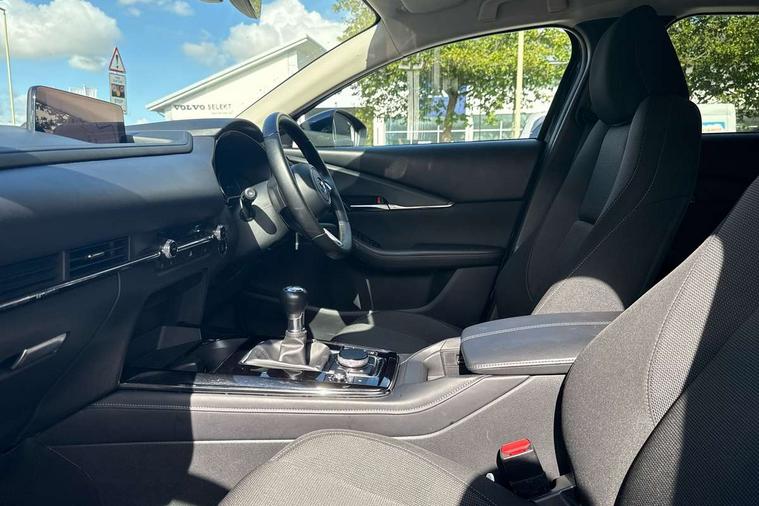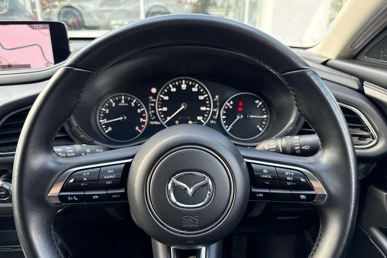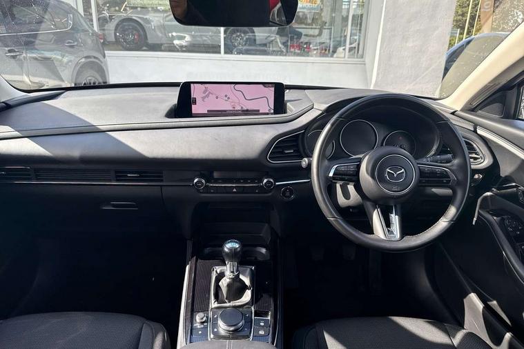 10.25" display with Mazda Connect infotainment, 7" TFT Colour driver instrument panel display, Adaptive cruise control (Mazda radar cruise control), Blind spot monitoring with rear cross traffic alert, Driver attention alert system, E-call with GPS, Emergency stop signalling system, Engine start/stop button, Front and rear parking sensors, Integrated Alexa Voice Assistant, Integrated bluetooth, Integrated Mazda navigation system, Intelligent speed assist, Lane keep assist system (LAS) with Lane departure warning system (LDWS), Mazda connected services, PAS, Power lift gate, Qi wireless charging, Reversing camera, Service indicator, Tailgate, Traffic sign recognition, Trip computer, Windscreen projected colour active driving display (HUD), Wireless Apple CarPlay/Android Auto, Cylinder Deactivation, i-stop, 2 x USB Type-C inputs, AM/FM and DAB radio, Bose surround sound system with 12 Speaker, Bose center point, Bass match and audio pilot technology, Multimedia Commander including separate volume dial, Steering wheel mounted audio/bluetooth controls, Adaptive LED Headlights, Auto dimming driver's door mirror, B-pillar and C-pillar garnishes in gloss black finish, Body coloured, electrically adjustable, heated auto power folding door mirrors with integrated indicators, Chrome finish signature wing in front grille, Coming/leaving home lighting function, Dual bright finish exhaust tip trim, Dusk sensing headlights, Electric front/rear windows with one touch auto up/down, Frameless auto dimming interior rear view mirror, Front kodo turn signal, Gloss black front grille, Gloss black rear roof spoiler, High beam assist, LED auto headlight levelling, LED signature daytime running lights, Privacy glass (rear side windows and rear screen), Rain sensing front wipers with adjustable speed and intermittent wipe, Rear fog lights, Rear side wing doors, Rear wiper, Signature LED rear combination lights, Third brake light, 12V power outlet in centre console, 3 seat bench in 2nd row, 60/40 split fold down rear seats, Bright interior trim accents with steering wheel centre bezel, surround of engine start / stop button and glove box handle, Cloth upholstery with interior accents, Dark cloth door panel inserts, Dashboard, door cards and front centre armrest in black cloth, Driver and front passenger visors with covered vanity mirror and driver ticket holder, Driver seat manual slide, recline, height and seat tilt adjust, Driver, front passenger and two rear door storage, Driver, Front passenger and two rear grab handles with coathooks, Dual zone climate control air conditioning with rear air vents, Folding rear centre armrest with two cup holders, Front and rear (x3) head restraints, Front and rear LED lighting, Front armrest, Front centre storage with two cupholders with lid, Front passenger seatback pockets, Front passengers seat manual slide, recline and height adjustment, Gear shift indicator, Glovebox illumination, Heated front seats with 3 stage setting, ISOFIX child seat anchorage points attached on outer rear seats, Leather wrapped gear shift knob, Leather wrapped steering wheel with telescopic and tilt adjustment, LED luggage compartment lighting, Light roof headlining and pillars, Roof mounted sunglasses holder, Single front passenger seat, 3 point ELR front seat belts x2 with pretensioners, 3 point ELR rear seat belts, Anti-lock braking system (ABS), Drivers knee airbag, DSC - Dynamic Stability Control, Electronic parking brake with auto disengage function and auto hold function, Front and rear curtain airbags, Front dual stage driver and single stage front passenger airbags, Front passenger airbag cut-off switch, Front side airbags, Front smart city brake support, G-Vectoring control plus, Hill launch assist, Manual child lock in rear doors, Mild Hybrid system with regenerative braking, Seatbelt reminder for driver/front passenger and rear seats, Traction control system (TCS), Tyre pressure monitoring system (TPMS), Remote central locking with deadlocking and automatic door lock when driving, Smart keyless entry, Thatcham accredited alarm and immobiliser, 18" Silver metallic alloy wheels, Emergency tyre repair kit,