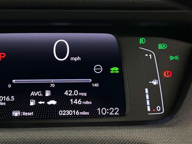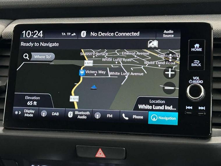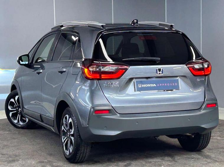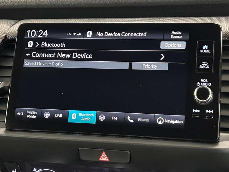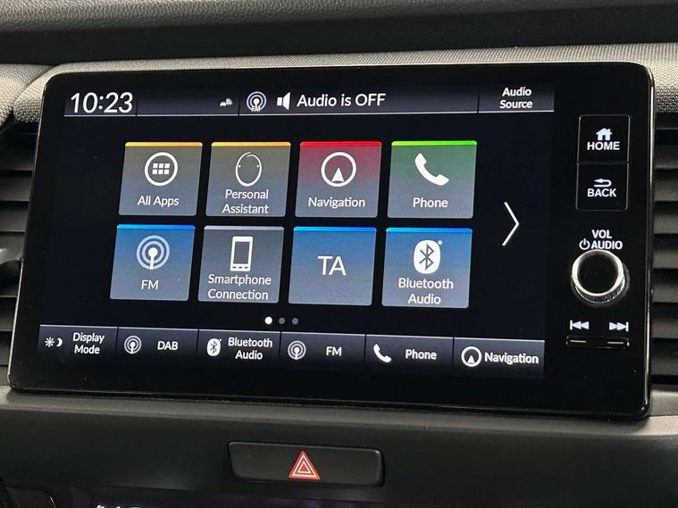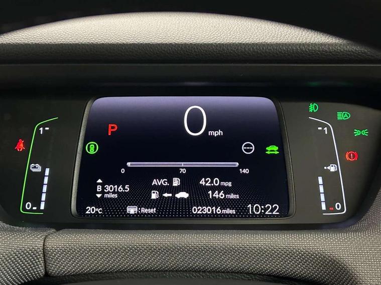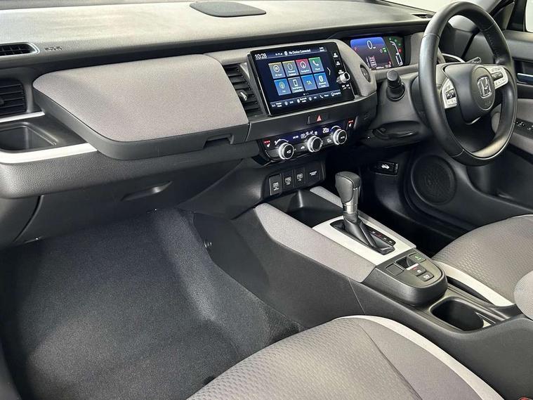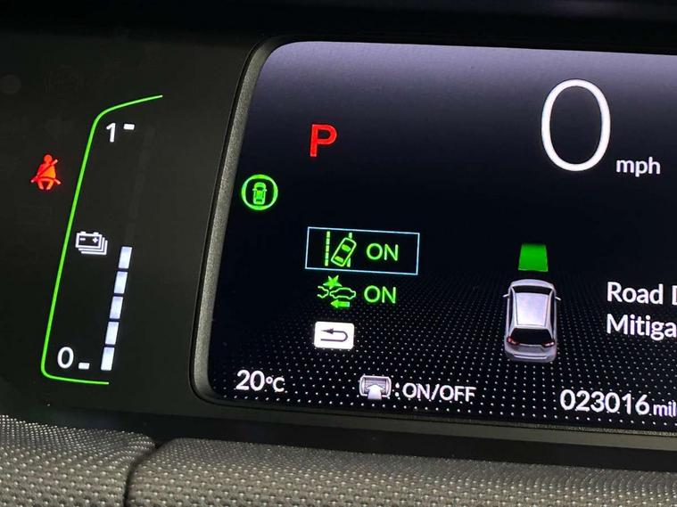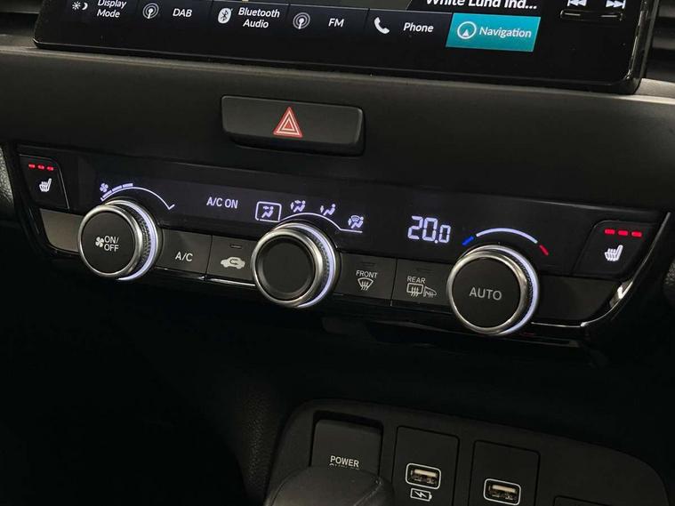Adaptive cruise control, Adjustable speed limiter, Agile handling assist, Bluetooth hands free telephone connection, Econ mode, Electric power steering wheel with variable gear ratio steering, Emergency stop signalling system, Forward collision warning, Front and rear parking sensors, Honda CONNECT with HERE Navigation + 9" touchscreen, AM/FM/DAB/Apple Carplay and android auto, Idle stop, Intelligent speed limiter, Lane departure warning system, Lane keep assist system, Low speed following, Multi-information display, Rear view camera, Road departure mitigation, Traffic sign recognition, Vehicle stability assist, 'Shark fin' mobile antenna, 2 USB sockets in rear, 2x USB Front socket (1 data & 1 charge), Premium audio with 8 speakers, front tweeter, centre speaker, Remote audio controls on steering wheel, Subwoofer, Aspheric door mirrors, Auto wipers, Automatic headlights with on/off timer, Coming/leaving home function, Body colour door handles, eHEV emblem, Electric adjustable door mirrors, Electrically folding door mirrors, Exclusive styling includes Front and rear bumper, Front fog garnish, Black fender, side sill garnish, Front and rear electric windows, Heated door mirrors, High beam assist, LED daytime running lights, LED front fog lights, LED Headlights, LED rear lights, Privacy glass, Roof rails, Silver door mirrors, Single exhaust tailpipe, 60/40 split rear bench seat, Cargo net hooks, Climate control air conditioning, Driver and front passenger seat armrests, Driver and passenger front seat pockets, Driver's seat height adjustment, Fabric/Water repellent upholstery, Front accessory power socket, Front head restraints, Front map lights, Front/rear courtesy lights, Heated front seats, Isofix child seat restraint mechanism, Isofix points, Leather gearshift knob, Leather steering wheel, Magic seat flexibility system, Paddle shift controls, Plating interior door handles, Rear head restraints, Rear parcel shelf, Sunvisors with vanity mirrors, Tilt/telescopic adjustable steering wheel, Tonneau cover, Trunk light, 3x3 point rear seatbelts, Anti-lock braking system (ABS), Brake assist function, Brake hold function, Collision mitigation braking system, Deflation warning system, Driver knee airbag, Driver SRS airbag (single stage inflation), Driver/Front Passenger airbags, Electric parking brake, Front and rear side curtain airbag, Front side airbags, Hill start assist, Passenger SRS airbag cut-off device, Rear side airbags, Whiplash lessening front headrests, Front seat belt with emergency locking retractor, Honda super locks, Immobiliser, Mirrors and windows key fob operation, Remote central locking with 2 remote folding keys, Security alarm, Smart entry + Smart start, Soft pad mesh interior panels, 16" AL Crosstar alloy wheels in mat berlina black, Tyre repair kit,