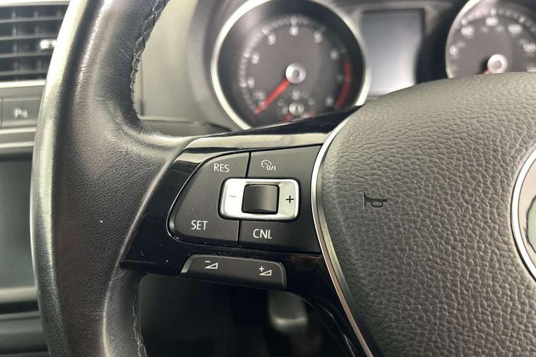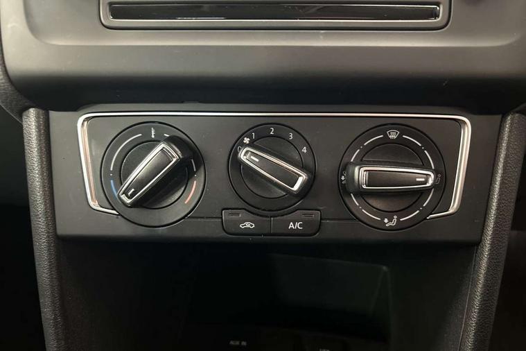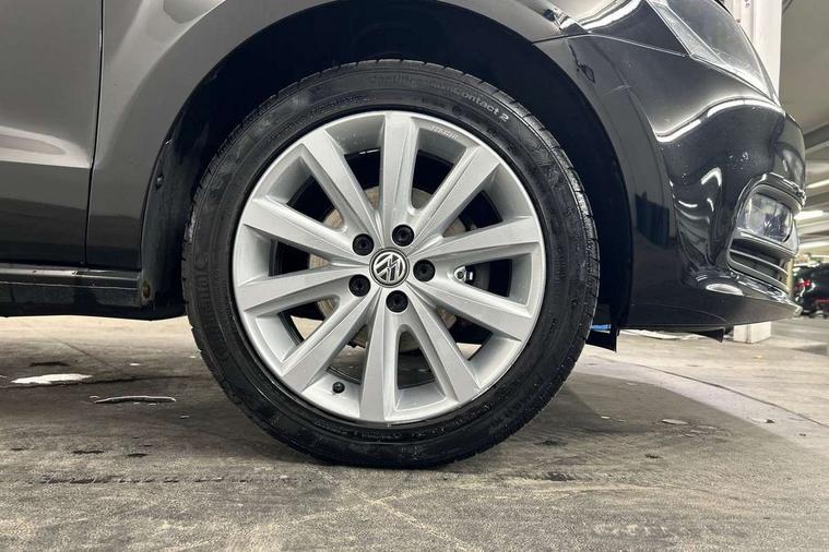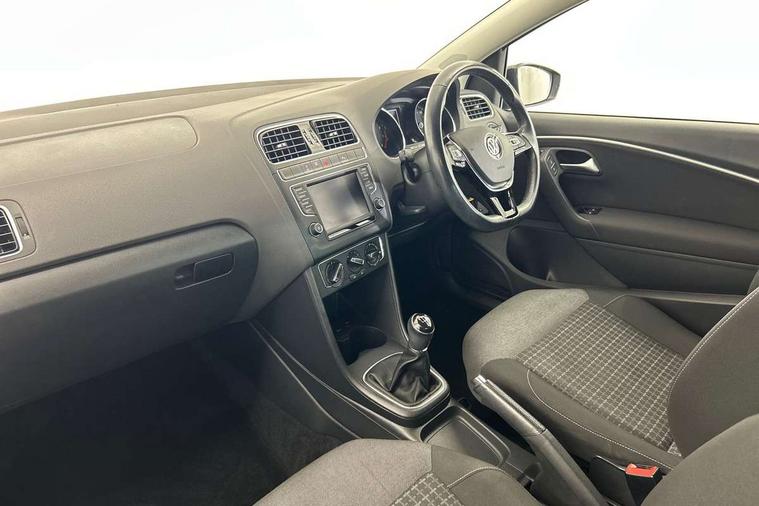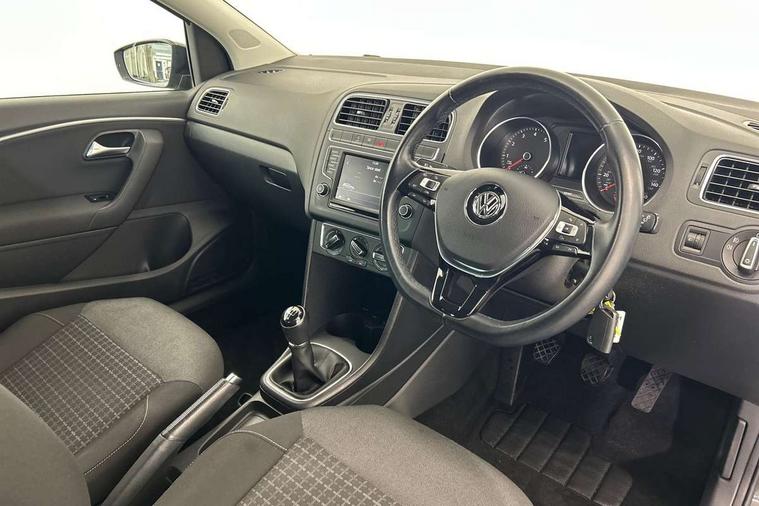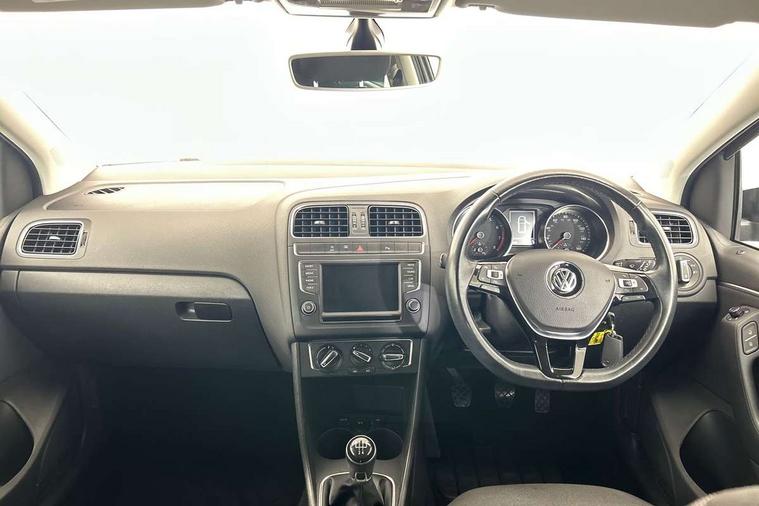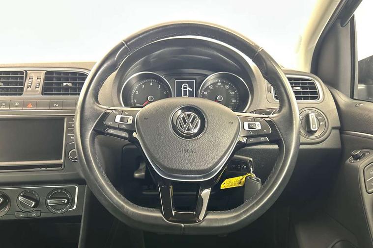 App-Connect, Bluetooth Telephone preparation, Driver alert system, Multi function display, Multifunction computer, PAS - speed related, Service interval indicator, Ultrasonic front and rear optical and audible parking sensors, Warning buzzer and light for front seatbelts unfastened, 6 speakers, Composition media system with radio, glovebox mounted CD, colour touch screen, SD card, aux-in, USB, multimedia interface, DAB Digital radio, Black grille with chrome surround, Body colour bumpers, Body colour door handles, Body colour door mirrors, Body coloured side sills, Chrome trimmed front air intake surrounds, Electric folding door mirrors, Electric front windows, Electric operated/heated door mirrors, Front fog lights with static cornering function, Front wash/wipe with interval delay, Heat insulated tinted glass 65% light absorbing from B pillar back, Heated rear window with auto timer, Rear windscreen washer and wiper with interval delay, 12V power socket in centre console, 2 bag hooks in luggage compartment, 2 cupholders, 3 rear head restraints, 3 spoke steering wheel, 4 grab handles, 60/40 split folding rear seat, Centre console storage, Chrome interior door handles, Driver and passenger sunvisors, Driver seat height adjust, Dust/pollen filter, Easy entry slide seats (access to rear seats), Front door pockets, Front passenger seat height adjust, Front seat backrest storage nets, Front/rear reading lights, Glovebox, Height/reach adjustable steering column, Illuminated vanity mirror, Interior light with delay, Isofix Preparation 2 Rear child seats, Luggage compartment cover, removable, Luggage compartment lighting, Matt chrome gear lever gaiter surround, Multifunction leather steering wheel with leather gear knob/handbrake grip, Storage compartment in front doors, Sunglasses holder, Variable boot floor, Light and sight pack - Polo, 3 point height adj front seatbelts + pretensioners, 3x3 point rear seatbelts, ABS, Automatic post collision braking, Driver/front passenger airbag, Driver/Passenger whiplash optimised head restraints, ESC - Electronic Stability Control + traction control, ESP with EDL + ASR, Hill hold control, Hydraulic Brake Assist (HBA), Tyre pressure monitoring system, Alarm with remote central locking and interior protection, Electronic engine immobiliser, Air vents in Matt chrome, Matt chrome interior trim, 15" steel spare wheel,