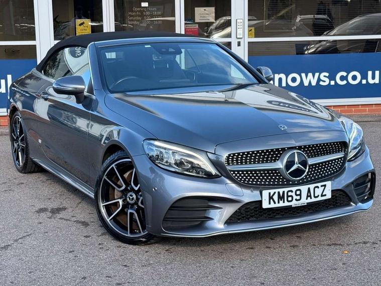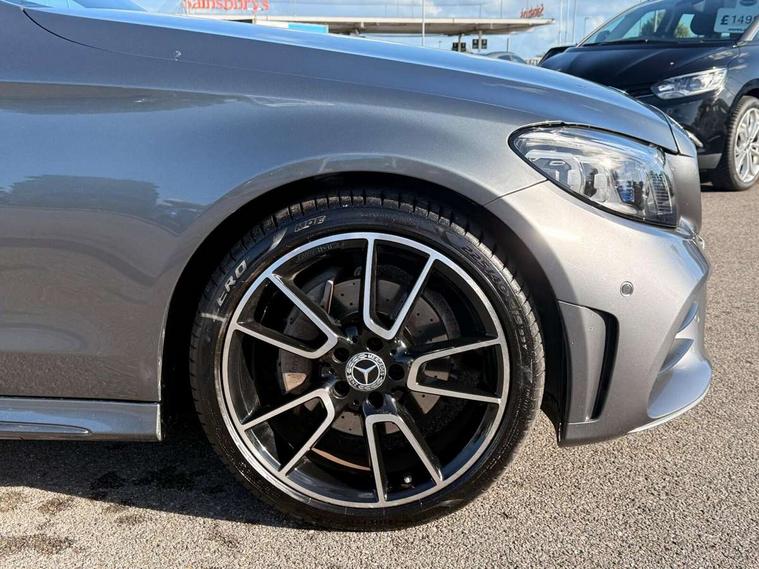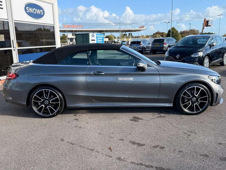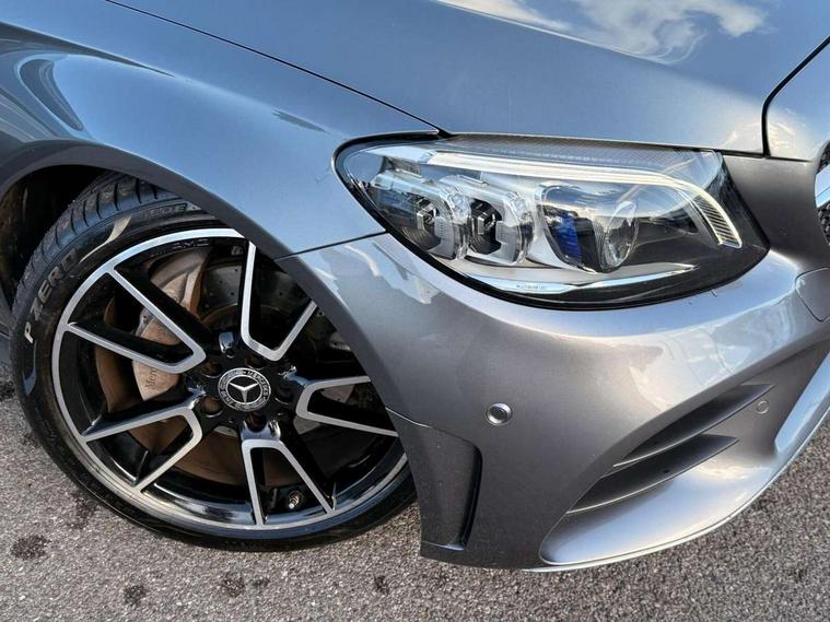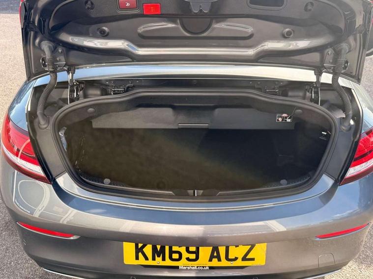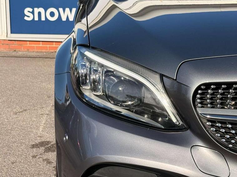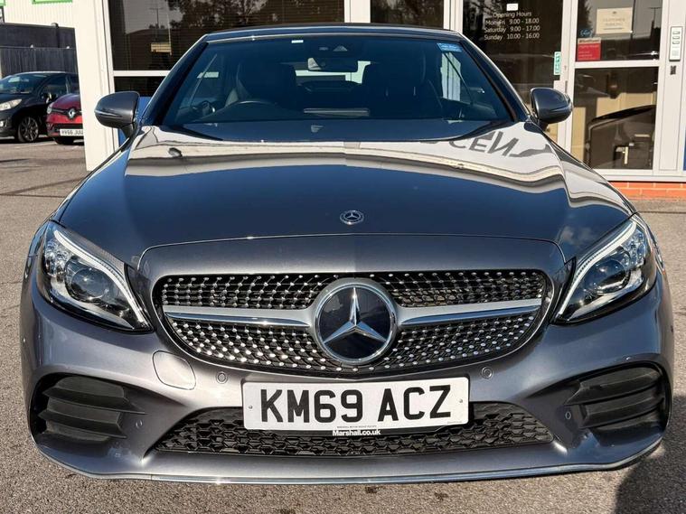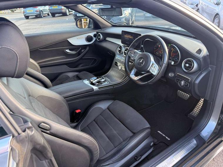 12.3" Active TFT crystal driver's instrument display, Active park assist with parktronic system, Attention assist, Bluetooth interface for hands free telephone, Collision prevention assist plus, Comand Online HDD Nav with media interface, radio/CD/DVD/MP3, 10.25 screen, linguatronic voice control, DYNAMIC SELECT with a choice of driving modes (ECO, Comfort, Sport, Sport+ and Individual), ECO start/stop function, Mercedes me connect including emergency call system, accident recovery, breakdown management and maintenance, Multi function trip computer, Outside temperature gauge, Pre-wiring for SD navigation system, Remote boot release, Reversing camera, Service indicator (ASSYST), Smartphone integration with Apple CarPlay and Android auto, Speed sensitive steering, Sports direct steer speed sensitive steering, Status display for rear seat belts in instrument cluster, Wireless charging, 66l fuel tank with increased capacity, 9G Tronic plus 9 speed automatic, Petrol Particulate Filter, Sport exhaust system, Audio 20 with integrated media interface and bluetooth handsfree function, DAB digital radio tuner, Mid-range sound system, SD card slot, Two USB ports and one SD Card slot in centre console, Acoustic soft-top with enhanced climate and noise comfort, Adaptive brake lights, AIRCAP wind deflector and draught stop, AMG front, rear apron and side skirts, Body coloured bumpers, Body coloured door mirrors, Chrome grille surround, Chrome pins diamond radiator grille with integrated stars, Door sill plates with "Mercedes-Benz" lettering, Electric windows with one touch opening/closing and obstruction sensors, Exterior mirrors heated and electronically adjustable, Full LED tail lamps, Green tinted glass, LED daytime running lights, LED Indicators, LED third brake light, Multi beam LED headlights, Radio aerial integrated into rear window, Rain sensor windscreen wipers, Semi-automatic boot separator, Side windows surround in polished aluminium, Visible twin pipe exhaust trim integrated into rear bumper, 2 cupholders in front centre console, 2 rear head restraints, 3 spoke flat bottom multi-function leather AMG steering wheel, 40:20:40 split folding rear seats, Airscarf - neck level heating, Artico man-made leather upper dashboard and beltlines with contrast stitching, Auto Mercedes-Benz child seat recognition sensor, Black floor mats with AMG lettering, Front centre armrest with storage compartment, Front LED reading lights, Heated front seats, Illuminated glove compartment stowage, Interior lighting - 64 colour Ambient lighting, Sports pedals with stainless steel surfaces and rubber studs, Sports seats with integrated headrests, Steering wheel audio controls, Steering wheel gearshift paddles, Sunvisors with illuminated vanity mirrors, THERMATIC 2 zone automatic climate control, Interior lighting package - C Class, Mirror package - C Class, Seat comfort pack - C Class, Stowage space pack - C Class, 2 rear seatbelts, 3 point automatic seatbelts, Active bonnet, Adaptive brake system with hold function, hill start assist and brake drying function, Anti-lock braking system (ABS), Automatic seatbelt pretensioner for driver and front passenger, Black seat belts, Brake calipers with Mercedes-Benz lettering + perforated brake discs, Dual stage airbags - driver and front passenger, front sidebags, driver kneebag, pelvis bag and windowbags for driver, front and rear passengers, Electronic parking brake, Electronic Stability Programme (ESP), Front seatbelt pretensioners, ISOFIX child seat attachment points with top tether in rear, Tyre pressure monitoring system, Warning triangle and first aid kit, Anti-theft alarm system/interior protection with tow-away protection and interior monitoring systems, Central locking with interior switch, automatic locking and crash sensor with emergency opening function, Chrome surround electric key, Immobiliser, Black ash wood with aluminium door trims and analogue clock, TIREFIT with tyre inflation compressor,