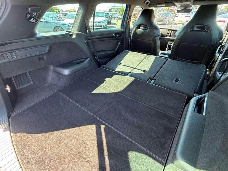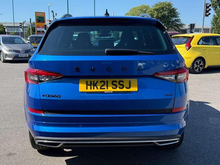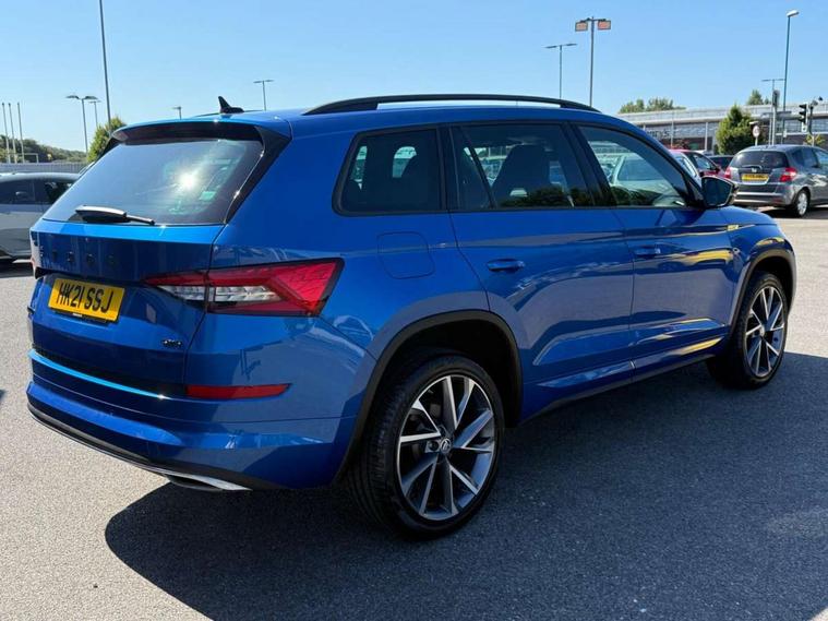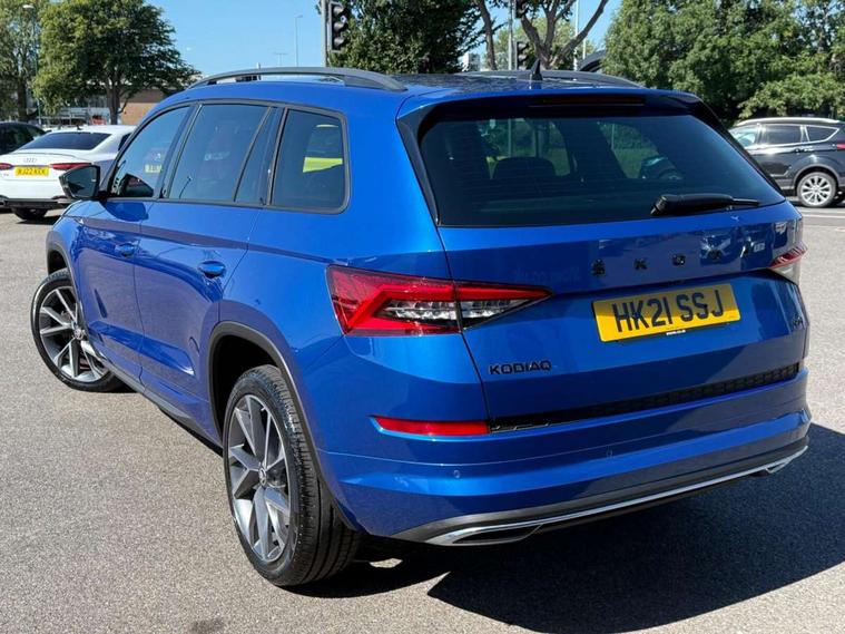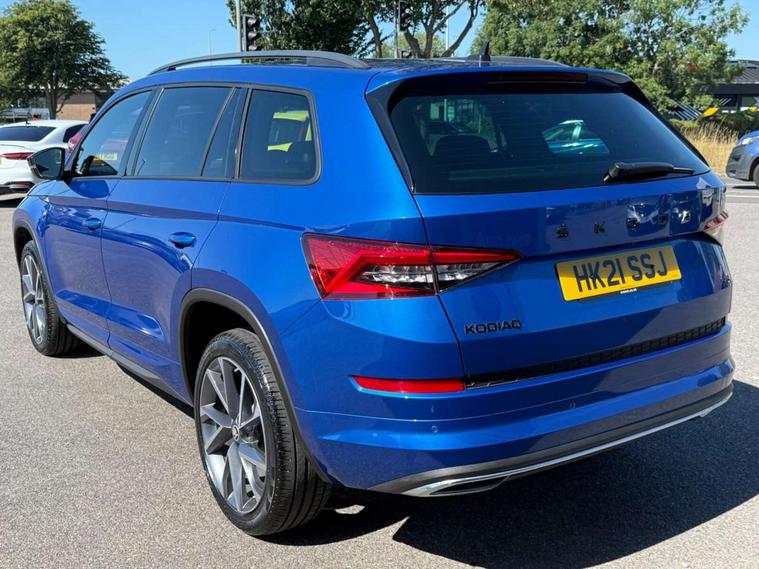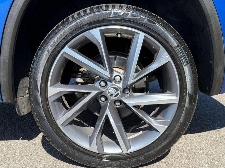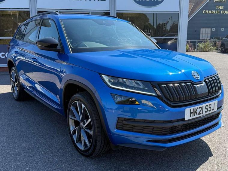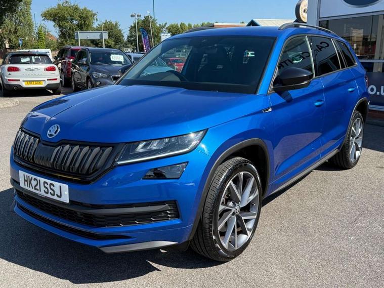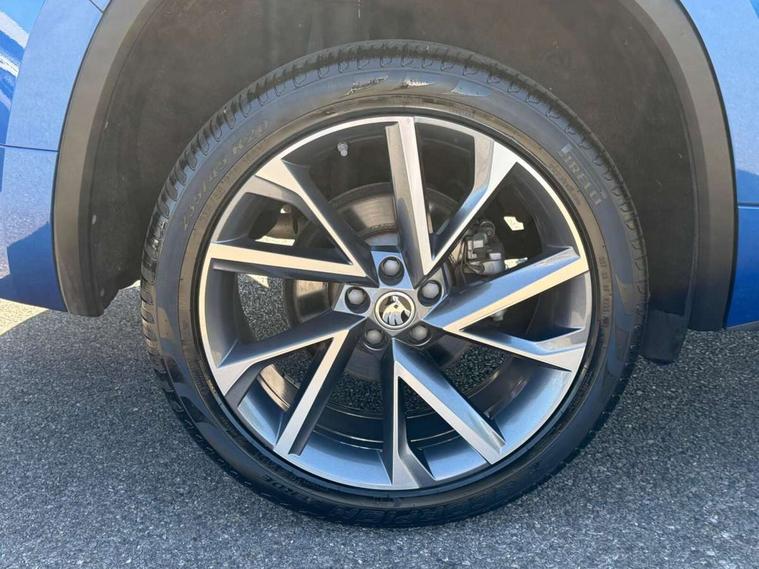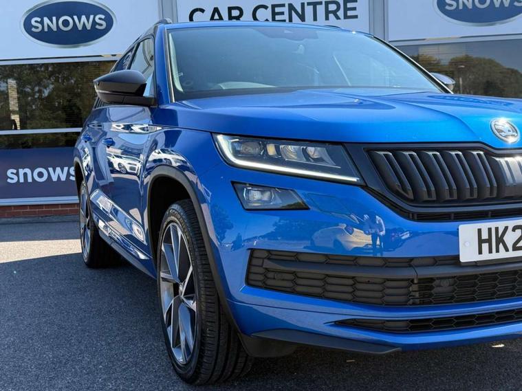 Bluetooth system, Columbus satellite navigation with 9.2" touch screen and integrated Wi-Fi + WLAN and web radio, Digital voice enhancement, ECO Stop/start function, Exterior temperature indicator, Map care, Progressive steering, Smartlink wireless for apple carplay and wired for android auto, Speed limiter, Sports dials, Tailgate unlocking from outside, USB C Port x 2 in front centre console, DAB Digital radio, Aero front windscreen wipers with intermittent function, Aero rear window wiper, Auto dimming rear view mirror, Automatic activation of hazard warning lights, Black electric window control buttons, Black roof rails and door mirrors with radiator grille and window surrounds, Black wheel arch surrounds, Body colour bumpers, Body colour door handles, Chrome exhaust tailpipe, Electric front and rear windows, Electrically adjustable/heated/foldable and auto dimming door mirrors with memory function, Front door steps with SportLine logo, Full LED Headlights with adaptive front light system and LED daytime running lights, Headlight washers, Heated rear window, LED front fog lights with static cornering light function, LED rear fog light, LED third brake light in rear spoiler, Light assistant (coming home/tunnel light), Rain and light sensors, Rear diffuser, Rear spoiler, Safety reflectors on front and rear doors, Sportline badge on front fender, Sports front and rear bumpers, Sunset privacy glass, Tailgate lettering in Black, Without engine designation, 12V socket in boot, 2 rails with 2 hooks including 4 hooks for net programme, 4 foldable roof handles with rear coat hooks, 4 lashing points on luggage floor, 60:40 foldable rear seat with sliding adjustment and backrest angle adjustment, Alcantara door panels, Aluminium pedals, Black roof headlining, Bottle holders in door panel in the 1.5 litre front and 1 litre rear, Cargo storage compartments, Centre console with open storage box, cup holder and 12V socket, Chrome headlight control button, Chrome interior door handles, Coat hooks on B pillar, Covered storage compartment on driver side, Front and rear door armrest with black adductor trim, Front and rear height adjustable headrests, Front centre armrest with storage compartment, cup holder and 12V socket, Front courtesy lights, Gear shift lever with chrome frame and black gloss insert, Illuminated and cooled glovebox, Illuminated luggage compartment, Isofix child seat fittings in outer rear seats with top tether, Manually adjustable steering column, Microsuede/leather upholstery with front sports seats, Net programme in boot (1x horizontal Net, 2x vertical Nets), Overhead glasses storage compartment, Paddles on steering wheel for DSG gearbox, Pollen filter, Rear centre armrest with cupholders, Roll up luggage compartment cover with intermediate position, Small Bags on the inner sides of the front backrests, Storage compartment in lower middle instrument panel with closing, Three rear height adjustable headrests, Ticket holder on A Pillar, Umbrella in door panel, LED Interior Light pack - Kodiaq Scout/Sport Line/VRS/Laurin + Klement, Auto door release and activation of warning lights in the event of an accident, Driver and passenger airbags, Electronic parking brake with hill hold control, Emergency rear braking signal, ESC (incl. ABS+MSR+ASR+EDS+HBA+DSR+RBS+MKB), Front and rear three point safety belt on all seats, Front assist includes AEB city/urban, Front passenger airbag deactivation switch, Front side airbags, Fuel cut off safety device, Head and knee airbags, Rear disc brakes, Safety vest holder in door, Seat belt reminder for all seats, Two tone horn, Tyre pressure monitor, Warning lights in front doors, Alarm with interior monitoring and tilt sensor with safe function, Immobiliser, Keyless entry and start system (KESSY), Remote central locking, Black air vent surround, Carbon finish dashboard and door inserts, 20" Vega Anthracite alloy wheels with anti-theft wheel bolts,