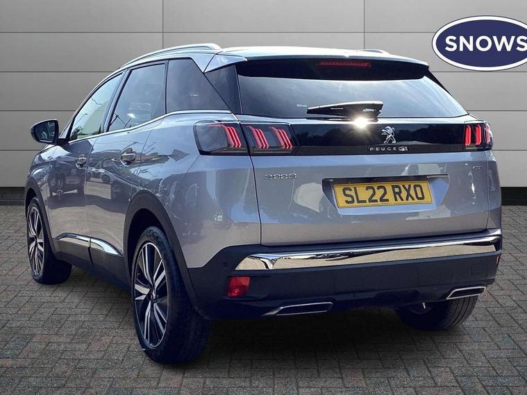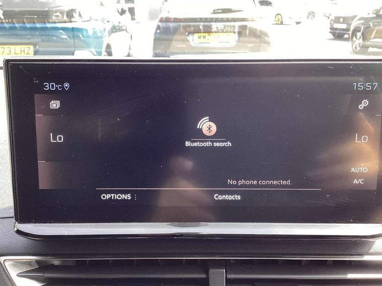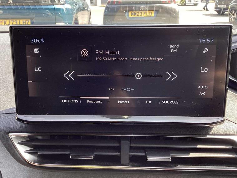 3D connected navigation with 10" HD touchscreen, Bluetooth telephone facility, Drive modes select (Eco, normal and sport), Driving Time Warning (DAA1), Emergency services call system, Extended traffic sign recognition, Exterior temperature indicator with ice warning, Front and rear parking sensors, Mirror screen with mirror link, apple carplay and android auto, Multi function trip computer, Passive blind spot monitoring without Steering correction, PEUGEOT i-Cockpit with 10" high definition capacitive touchscreen, Peugeot i-cockpit with compact multi-function sports steering wheel, PEUGEOT i-Cockpit with configurable 12.3" Head-up digital instrument panel, PEUGEOT SOS and assistance, Rear passenger USB charging sockets (x2) (type A), Speed limit recognition and recommendation, Visio park assist 360 with colour camera system + automatic parking assist, Voice recognition, Dynamic stability control and electronic anti-skid system, Stop/start function, DAB Digital radio, Focal premium HiFi sound system, USB socket, Auto self levelling headlights, Automatic hazard light activation upon heavy brake application, Automatic triggered rear windscreen wiper in reverse gear, Black with chrome detailed front wing trim, Body colour door handles, Body colour rear roof spoiler with stainless steel edging trim, Body protectors (bottom of front and rear bumpers + wheel arches + protection at bottom of doors) in black, Dark tinted rear side windows + tailgate window, Diamond Black door mirror shells, Door mirror mounted LED courtesy floor lighting, Electric folding door mirrors with exterior courtesy LED lighting, Electric operated/heated door mirrors, Fog Mode, Front windscreen wiper with magic wash cleaning system, Full LED headlights with LED fog lights with static cornering function, Gloss black B and C pillar and aerodynamic deflector trim, Gloss black front bumper air scoops, Gloss black rear cluster connecting strip, Gloss black windscreen trim, GT emblem in satin copper (front wings and tailgate), Headlights left on audible warning, Heated rear windscreen with integrated antenna, LED daytime running lights, LED front indicator, LED rear number plate lighting, LED side indicator lights integrated into door mirrors, LED third brake light, One touch electric front/rear windows with pinch protection, Rear LED Peugeot signature 'Claw Effect' lights, Rear side wing doors, Stainless steel roof arches, Twin exhaust tailpipe, 1/3 to 2/3 split folding rear seats, 12V Sockets in dashboard, rear cabin and load area, 2 cupholders in front centre console, 2 cupholders in rear armrest, 2 x Rear reading spotlights, 2x Rear coat hooks, 3x Isofix child seat fittings in the front passenger and outer rear seats, 4 Grab handles retractable and damped, Aikinite stitching in armrest, gear lever and dashboard facia, Aluminium pedals, Blue ambient lighting for connecting zone, Blue ambient lighting to front door panels, central storage and cupholders, Blue ambient lighting to headup instrument panel, Centre front armrest with butterfly wing opening and illuminated storage compartment, Dual zone automatic climate control, Electric power steering with reach and rake adjustable steering column, Flocked front door pocket interior with blue ambient lighting, Flocked glovebox interior, Focal tweeter speaker grilles in Belem bronze metal effect finish, Foldable front passenger seat with picnic table, Footwell illumination, Front interior light with 2 reading spotlights and rear interior light with timer, Front passenger seat manual adjustment (longitudinal and back rest angle), Front seat back map pockets, Gear shift indicator, Illuminated glovebox, Individual left and right controls in boot for seat folding, LED interior lighting in storage spaces and load area, LED roof interior lighting, Mistral floor mats with Aikinite contrast stitching, Mistral full grain perforated leather steering wheel with aikinite stitch detail and satin chrome 'GT' emblem, Rear bench seat with central armrest and ski hatch, Rear centre console ventilation system, Roof lining - Mistral black, Satin chrome dashboard trim, Satin chrome digital instrument panel and touchscreen trim, Satin chrome front door panel recess trim, Satin chrome interior door handles, Satin chrome scorpion's tail and toggle switch trim, Seatbelt not fastened audible and visual alert for front seats, Seatbelt unfastened on the move audible and visual alert for front and rear seats, Sunvisors with illuminated vanity mirrors, Two position boot floor, Drive assist plus pack - 3008, Driver sport pack - 3008 Auto, Safety plus pack with high beam assist - 3008, Visibility pack - 3008, 3x Rear three-point retractable seatbelts with force limiters in the outer rear seats, ABS (Anti-lock Braking System) with EBD (Electronic Brakeforce Distribution) and EBA (Emergency Braking Assistance), Adaptive driver and front passenger airbags with passenger airbag deactivation function, Driver and front passenger side airbags, Electric child locking functionality on rear windows and doors, Electric parking brake, Front and rear curtain airbags, Front optimised safety headrests and 3 x rear retractable headrests with height adjustable, Front three point retractable seatbelts with pre tensioners and force limiters, Front ventilated disc brakes and rear disc brakes, Hill start assist, Two tone horn, Automatic door locking when moving off, Electronic immobiliser, key operated exterior door lock from the left hand door, Perimetric and volumetric alarm with lift and tilt sensor, Peugeot Open and Go System, Remote control central locking with two plip keys, Puncture repair kit including compressor, sealant cartridge and towing eye,