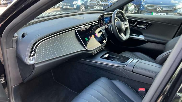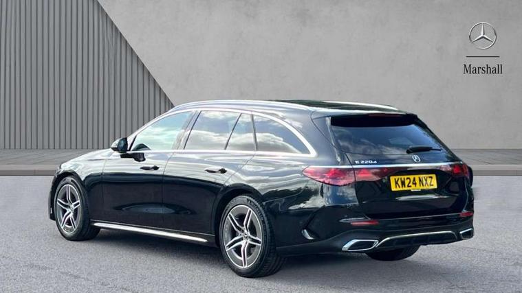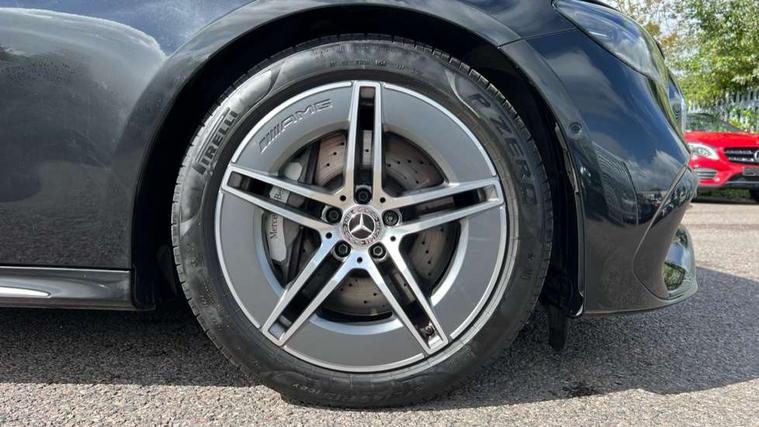 12.3" Driver display screen, 14.4" central media display, 5G Communications module, Attention assist, Augmented reality navigation, Blind spot assist, Brake wear warning display, Direct steer speed sensitive steering, Easy-pack tailgate - Powered opening/closing automatically, ECO start/stop function, Emergency call assistance, Evasive manoeuvre support, Fluorescent jacket for driver, Hard disc navigation, Head up Display, MBUX navigation premium, MBUX voice control, Mercedes connect me, Outside temperature display, Preinstallation for live traffic, Remote Services Premium, Service indicator (ASSYST), Status display for rear seat belts in instrument cluster, Trip computer in multifunction display showing current fuel consumption, Wireless charging, Wireless smartphone integration with Apple CarPlay and Android auto, 48V Mild hybrid technology, 66 litre fuel tank, 9G TRONIC automatic transmission, Agility control suspension with selective damping and lowering, Bluetec emission control, Diesel particulate filter, Integrated starter generator Gen 2, Rear air suspension with level control, Sporty engine sound system, 2 USB ports in centre console, 2 USB ports in the rear, DAB Digital radio, Preinstallation for MBUX Entertainment Plus, 3rd brake light, Adaptive brake lights, Aerial integrated in rear window, AMG bodystyling, Auto dimming driver's door mirror, Auto dimming rear view mirror, Black radiator grille, Chrome roof rails, Digital air vent control, Electric folding door mirrors, Electric windows with one touch opening/closing and obstruction sensors, Electrically adjustable and heated door mirrors, Heat insulating privacy glass, LED daytime running lights, LED digital light with adaptive highbeam assist plus, Pre-installation for roof rail systems, Rear side wing doors, Rear wiper, Surround lighting with logo projection, 3 seat bench in 2nd row, 4 way lumbar support, Ambient lighting, AMG brushed stainless steel sports pedals with rubber studs, AMG floor mats, AMG line interior, Automatic child seat recognition sensor, Central stowage compartment with USB socket for use with Android Auto and Apple CarPlay, Comfort seats, Courtesy lights in rear grab handles with reading light functionality, Folding rear seat backrest, Front centre armrest with stowage compartment, Glove compartment - lockable, air conditioned and illuminated, Head restraints for driver and front passenger (four-way adjustability) and in rear (two-way), Heated front seats, Illuminated door sills, Multifunction sports steering wheel in nappa leather, Roof liner in black fabric, Seat occupancy sensor for front passenger seat, Single front passenger seat, Steering wheel touch control buttons for audio and onboard settings, Sunvisors with illuminated vanity mirrors, Thermotronic 4 zone climate control, Leather package - E Class, Memory package - E Class, Parking package with 360 degree camera - E Class, USB plus package - E Class, 3x3 point rear seatbelts, Active bonnet pedestrian safety measure which detects an impact and raises bonnet, Adaptive brake system with HOLD function and brake drying in the wet, Airbags - sidebag for driver and front passenger with combined thorax/pelvis bag, Anti-lock braking system (ABS), Automatic front passenger airbag deactivation, Central airbag, Childproof locks manually operated for rear doors and electrically operated for rear power windows, Driver and adaptive front passenger airbags, Electronic parking brake, Electronic Stability Programme, Hill start assist, ISOFIX child seat attachment points two outer rear seats, Knee airbags, Pedestrian protection, Pre-Safe anticipatory safety system, Tyre pressure monitoring system, Warning triangle and first aid kit, Window airbags, Alarm system with interior monitoring, Central locking with interior switch, automatic locking and crash sensor with emergency opening function, Dashcam, Digital vehicle key, Guard 360 degree vehicle protection plus, Increased anti theft protection, Keyless Go, Urban guard vehicle protection plus, Centre console trim in open pore black ash wood, Dash trim in open pore black ash backlit wood with laser cut Mercedes Benz star pattern, 19" AMG 5 twin spoke alloy wheels, Summer tyres, Tirefit,