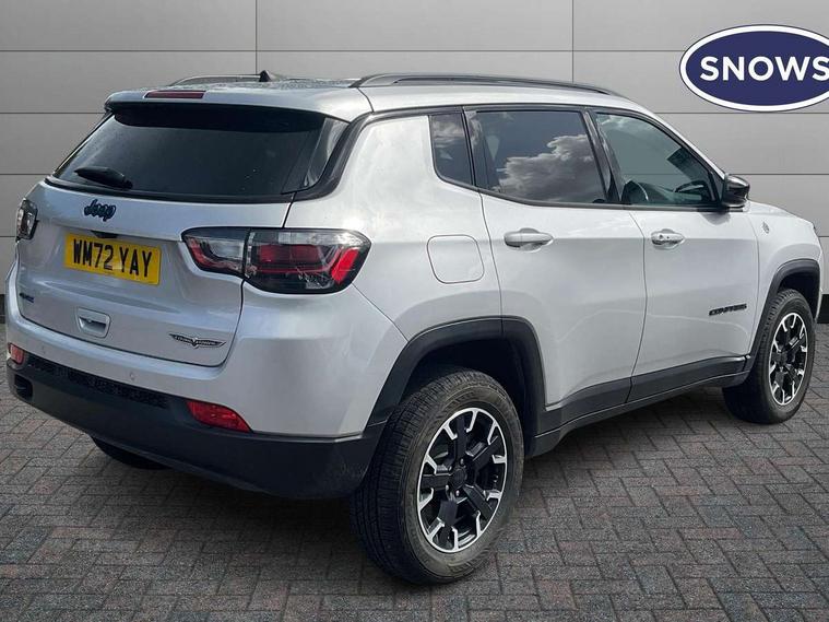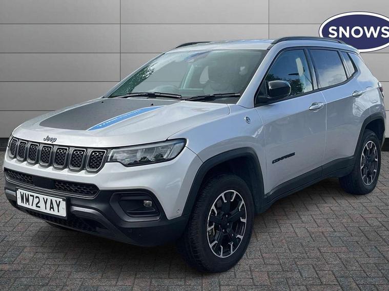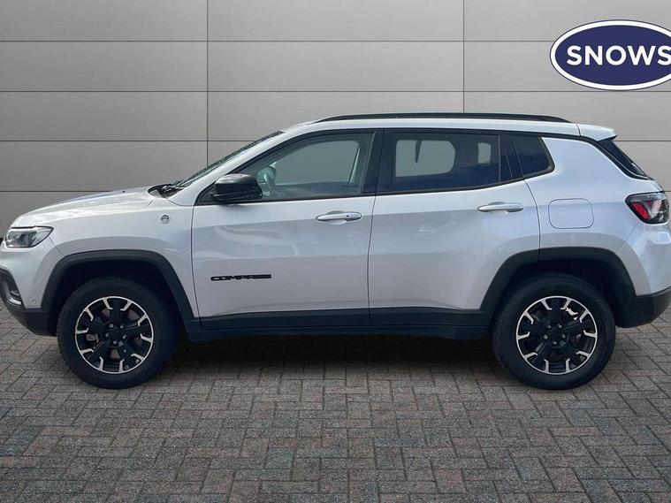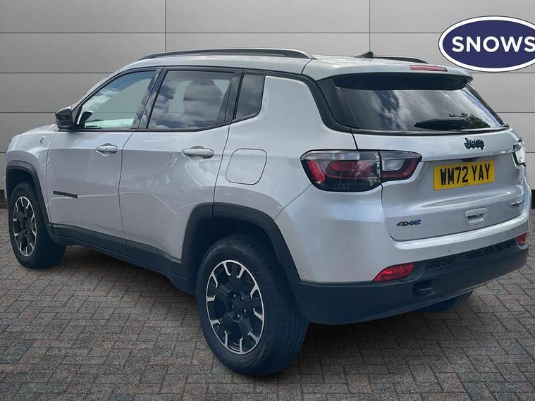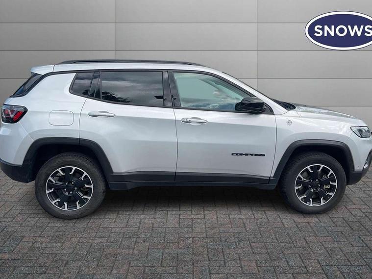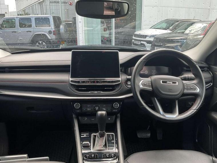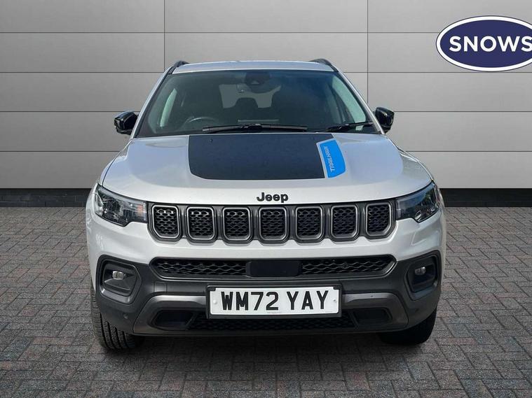 160 MPH primary speedometer, Active lane management, Active speed limiting device, Adaptive cruise control with Stop and Go, Drowsy driver detection, E-call, Electric power steering, English owners handbook, Full speed forward collision warning plus mitigation, Instrument cluster- 10.25" TFT Colour display, Instrument panel, Intelligent speed assist, Media centre electronic storage, Outside temperature display, Selec-Terrain system for Trailhawk with sport mode, Tachometer, TBM - Connected services (e-call), Traffic sign recognition (TSR), Vehicle information centre, Wireless charging pad, 7.4 kW onboard charger, Battery run - down protection, Battery skid plate, Boost and load point shift, CO2 improvement, E- launch, E-creeping, E-Parking, E-Queueing, Electric drive, Electronic roll mitigation, EV/PHEV mode 2 charging cable, Off road suspension, Bluetooth audio streaming, DAB Digital radio, Global telematics box module (TBM), Media hub (USB A-C TYPE), Steering wheel mounted audio controls, Uconnect 5 R1 Radio - 10.1" display without navigation, USB A and C type - second row, USB host flip, 4XE badge/e-Hybrid badge, Accent/body colour bumpers, Aspherical driver's exterior mirror, Auto dimming rear view mirror, Auto high beam, Automatic headlights, Belly pan - underbody protection, Black mic grille/neutral gray rings, Black side roof rails, Black window surrounds, Body colour door handles, Carry back MHEV, Coastdown and run-in optimization, Compass badge, Deep tint privacy glass, Door mirrors: power adjustable and folding, heated with auto folding function and indicators, Exterior door mirrors with heating element, Front fascia/belly pan skid plate, Front/rear grey insert, Gloss black badges, Gloss black exterior door mirrors, Headlamp leveling system, Headlamp off time delay, Heated rear window, Jeep badge, LED front fog lamps, LED rear lights, LED reflector headlamps high with segmented DRL, LED tail lights, Lower bodyside cladding in black, Neutral gray headlamp bezels, Neutral grey exterior accents, Off road bumper, Partial body cover protection, Power windows - driver and passenger express up/down, Rain sensitive windscreen wipers, Rear fascia, Rear fog lamps, Rear side wing doors, Rear windshield washer/wiper, Red rear tow hook, Removable short mast antenna, Skid plate shield - front suspension, Skid plate shield - fuel tank, Skid plate shield - transfer case, Skid plate shield - transmission, Smartbeam headlights, Third brake light, Trail rated badges, Trailer sway damping, Trailhawk badges, Trailhawk hood decal, UK front number plate bracket, Windshield wiper de-icer, 12V auxiliary power outlet - 2nd row, 3 rear seat head restraints, 3 seat bench in 2nd row, 60/40 split folding rear seat, All weather floormats with Jeep logo, Cargo area lights, Cargo compartment carpet, Cargo compartment cover, Cargo compartment organiser, Cargo compartment reversible mat, Cargo load floor, Cargo tie down loops, Centre console with sliding armrest, Centre rear 3 point seat belt, Child seat anchorage points, Coat hooks, Dash insulation, Driver assist handle, Dual zone temperature control with preconditioning capability and heater, Fold flat front passenger seat, Front head restraints, Front height-adjust seatbelts, Front map pocket LED lamps, Front map reading lights, Front seats back map pockets, Full length centre console, Glovebox light, Glovebox with damped soft close door, Heated front seats, Heated steering wheel, Illuminated door entry system, Interior door handle LED lamps, Internal rear grab handles, Leather wrapped gear knob, No Alternator, Overhead console, Overhead dome LED lamps, Passenger assist handles, Power 2-way driver lumbar adjustment, Rear air conditioning and heater vents, Rear seat armrest with cupholder, Red interior stitching accents, Single front passenger seat, Spare wheel storage insulation, Sunvisors with illuminated vanity mirrors, Tilt/telescopic steering column, Vinyl wrap steering wheel, Navigation pack - Jeep, Power pack - Jeep, Ventilated leather seats pack - Compass Trailhawk, AEB with pedestrian and cyclist detection, All speed traction control, Automatic electronic hold brake, Driver's front airbag, Dual note electric horns, Dual tyre pressure - turn changes, Electrical steering column shaft lock, Electronic parking brake, Electronic stability control, Energy recovery system, Front and rear side curtain airbags, Front passenger airbag, Front passenger airbag detector, Front side airbags, Hill descent control, Hill start assist, Jeep call assistance label, Passenger airbag deactivation switch, Rain brake support, Rear door child protection locks, Rear seat belt reminder, Tyre pressure monitoring display, Capless fuel filler, Occupant detection system, Passive entry and keyless go (Key fob without panic button), Power locking fuel filler door, Premium security alarm, Front and rear air vents, Speakers in satin chrome silver, 17" Alloy wheels, Temporary use spare tyre with non matching steel wheel,