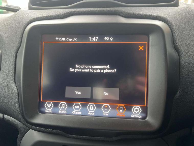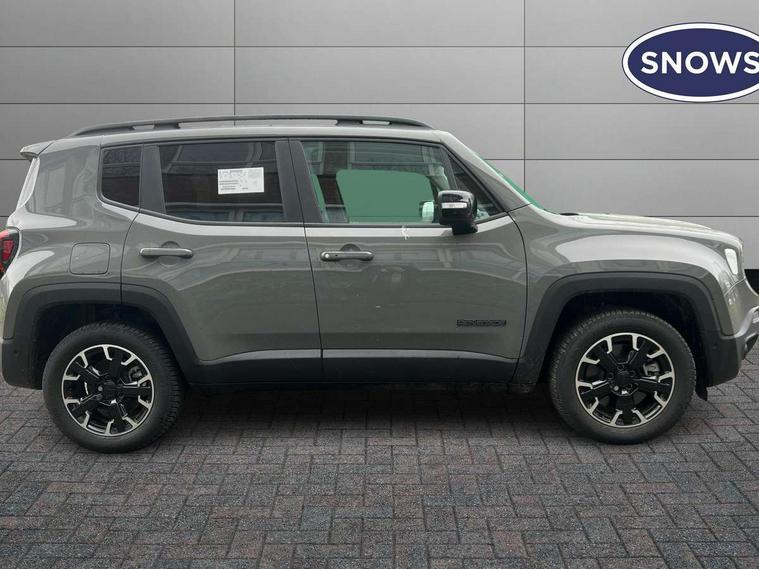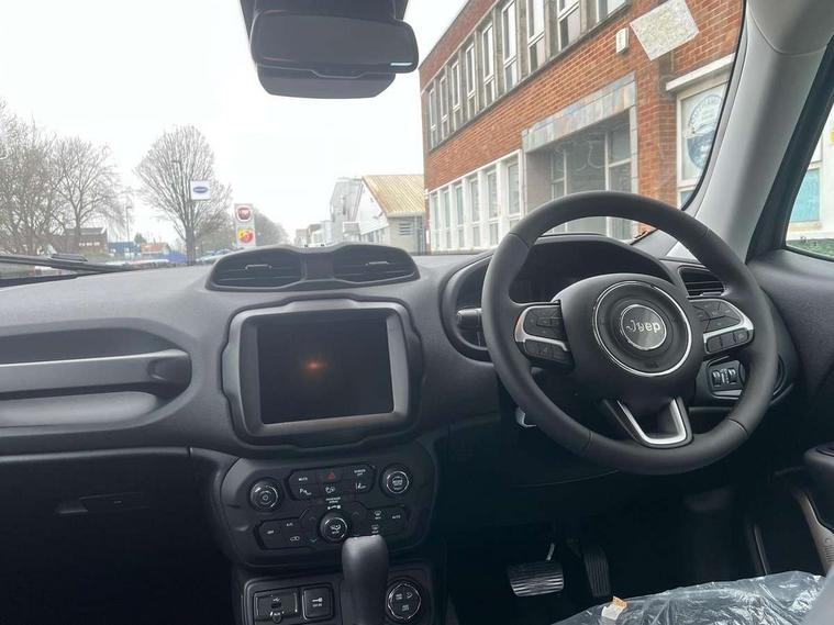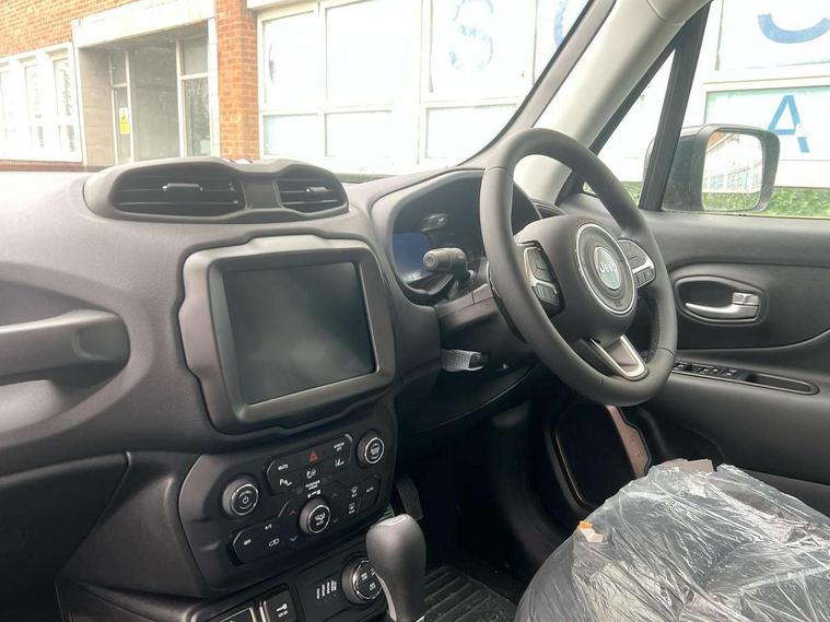 7" PHEV coloured instrument cluster, Apple car play/Android Auto, Cruise control, eCall emergency call system, Electric servo assisted steering, Front parking sensors, GPS navigation, Lane departure warning plus, Odometer, Rear parking sensor, Rev counter, Selec terrain system with sport mode, Speed limiter push button on steering wheel, Tachometer, TBM connectivity EMEA, Telematic box module (TBM), Uconnect live service, 7.4 kW onboard charger, Alternator default, Battery run down protection, Battery skid plate, Electronic roll mitigation, EV/PHEV mode 2 charging cable 1, Smart alternator, 2nd row fully functional USB port, DAB digital audio broadcast, Media hub with USB and aux input, Steering wheel control with bluetooth, 3rd brake light, Acoustic components 1, Active shutter grille, Aspheric door mirrors, Automatic headlight activation (Dusk/Dawn), Black lower side door cladding, Black roof rails, Body colour door handles, Bonnet decal, Coastdown and run-in optimization, Day light opening Moldings, Driver & front passenger power windows with express up and down, Electric adjustable heated door mirrors, External rear view mirrors with electrical drive and defrost, Front license plate bracket, Front Towing eye, Glossy black Painted external rear view mirrors, Integrated antenna, LED daytime running lights, LED fog lamps, LED high beam and low beam, LED light for license plate, LED tail lights, Lower body side cladding, New front rails for getrag gearbox, Power rear windows, Rain sensor, Rear side wing doors, Rear wiper, Side repeater lamp in exterior mirrors, Sustainability buzz model, Sustainability door decal, Tailgate handle, Tinted privacy glass, Towing eye brackets, Trailer sway damping, 12v power point in centre console, 12V power point in luggage area, 3 point rear seatbelts with load limiter, 3 rear head restraints, 3 seat bench in 2nd row, 3rd rear headrest height adjustable, Centre console storage, Cloth upholstery, Door courtesy lamps, Door trim with vinyl door, Dual zone automatic air conditioning, Eco shift schedule, Front centre console cup holders, Front headrests, Front passenger fold forward seat with soft upholstered seatback, Front seat sliding armrest with interior storage, Interior grab handles, Interior LED lighting, Leather gear knob, LED ambient lighting, Manually adjustable front seats - 6 way driver/4 way passenger, PTC (Positive Temp Co-efficent) heater, Removable rear parcel shelf, Single front passenger seat, Storage nets, Sustainability floor mats, Tilt/telescopic steering column, Tonneau cover, Aero pack - Renegade, ABS, All speed traction control, Dual note electric horns, Dual tyre pressure, Electronic parking brake, Electronic stability control with hill start assist, Emergency brake assist, Front airbags + front seat mounted with front and rear, side, curtain airbags, Height adjustable front seatbelts, Hill descent control, Isofix universal fixture for child safety seat fastening, Next generation front airbags, Panic brake assist, Passenger airbag disable feature, Radio frequency hub module tyre pressure monitoring system, Rear door child safety locks, Removal of high tone horn, Tyre pressure monitoring display, Deadlock, Immobiliser, Remote control central locking, Remote keyless entry, Safe lock (super blocking), Security alarm, 17" Glossy black with black logo matt alloy wheels with 3 season tyre, Tyres default,
