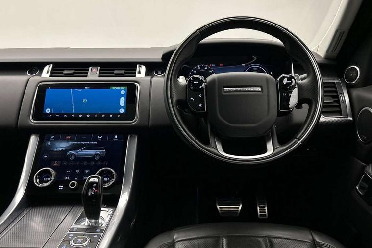 All Terrain Info Centre, Android Auto, Apple car play, Bluetooth connectivity, Electric power assisted steering (EPAS), Incontrol apps in vehicle touchscreen, Interactive Driver display instrument cluster, Mist sensor, Navigation pro system with 10" touch screen, app interface and media storage, Pro services and wifi hotspot, Push button start, Remote premium - Upgraded Incontrol remote app including remote climate control (engine dependent), remote lock + Unlock and remote beep + flash, TFT Virtual Instrument Panel, Touch pro duo system, Trip computer, 7 kW onboard charger, Adaptive dynamics, Electronic active differential with brake torque vectoring, Electronic air suspension, Engine cover, Gradient release control (GRC), Public charging cable, Terrain Response 2 with dynamic program, Twin speed transfer box, Bluetooth audio streaming, DAB Radio (Digital Audio Broadcasting), Incontrol protect - SOS emergency call with automatic collision detection, optimised assistance call and Incontrol remote app essential, USB/aux input socket, Acoustic front and toughened rear side glass, Acoustic laminated front windows, Adaptive brake lights, Auto dimming interior rear view mirror, Automatic headlights, Body coloured side sills and bumpers corners, Centre high mounted stop light, Electric windows with one touch open/close and anti trap, Electrical towing preparation, Follow me home lighting, Front and rear recovery eyes, Front fog lights, Headlight power wash, Heated rear window, Heated windscreen includes heated washer jets, Illuminated metal tread plates with brand name script, LED rear lamps, Rain sensing windscreen wipers, Rear fog lights, Rear side wing doors, Rear wash/wipe, Remote window closing, Side repeater indicators in mirror, Standard bonnet, Trailer stability assist, Twin bright tailpipes, 2 way active front head restraints, 2 way rear head restraints, 3 seat bench in 2nd row, Auto air recirculation, Bright metal foot pedals, Centre console with armrest, Climate control memory, Customer configurable single point entry, Driver's footrest, Extended leather upgrade includes door top rolls and leather instrument panel mid section, Front and rear cupholders, Front door storage space, Front map lights, Front seat back map pockets, Front stowage pocket, Front/rear passenger grab handles, Isofix child seat preparation, Leather steering wheel with Atlas inserts, Loadspace light, Loadspace mounting provisions, Lockable glovebox, Multifunction steering wheel, Pollen filter, Power socket, Reach/rake electric adjustable steering column + entry/exit tilt away, Rear centre armrest, Rear ISOFIX, Roller blind loadspace cover, Satin chrome gearshift paddles, Single front passenger seat, Sports pedals, Three 12V accessory power outlets, Smartphone pack - Range Rover Sport, 3 point seatbelts on all seats, Anti-lock braking system (ABS), Brake pre-fill technology, Cornering brake control (CBC), Curtain airbags, Customer configurable autolock, DSC - Dynamic Stability Control, Dual stage driver/passenger airbags, EBD - Electronic brakeforce distribution, Electric parking brake, Electronic traction control, Emergency braking includes city, urban AEB and pedestrian, Front seatbelt pretensioners, Gradient acceleration control, Height adjustable front seatbelts, Hill descent control, Hill launch assist, Low traction launch, Passenger seat occupant detector with front airbags, Power operated child locks, Roll stability control, Seatbelt warning, TPMS (Tyre pressure monitoring system), Immobiliser, Intrusion sensor, Keyless entry, Locking wheel nuts, Perimetric and volumetric anti theft alarm, Remote locking, Tyre repair system,