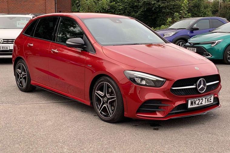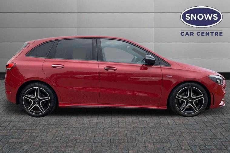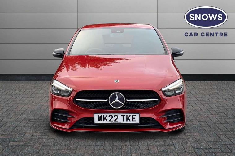 10.25" Digital instrument cluster display screen, 10.25" media display, 180 degree reversing camera with parking guidelines, Active lane keeping assist, Attention assist - Monitors steering behaviour and long journey fatigue, Brake pad wear indicator warning light, Cruise control + speed limiter, Direct steer system, Dual bluetooth interfaces, DYNAMIC SELECT with a choice of driving modes (ECO, Comfort, Sport and Individual), ECO start/stop function, Fluid level warning indicator for fuel, oil, coolant and washer fluid, GPS aerial, Hard disk navigation, Hey Mercedes Voice activation, Lamp failure indicator, Live traffic information, MBUX multimedia system with Hey Mercedes, DAB Digital Radio and touchpad, Mercedes me connect including emergency call system, accident recovery, breakdown and maintenance management, Mercedes me remote services, Outside temperature gauge, Owners manual and service booklet in English, Pre-installation for private car sharing, Preinstallation for Mercedes Benz link, Service indicator (ASSYST), Smartphone integration with Apple CarPlay and Android auto, Speed limit assist, Speed sensitive power steering, Trip computer in multifunction display with current consumption indicator, BlueTEC diesel emission control system including AdBlue reservoir, Diesel particulate filter, Lowered comfort suspension, 2 USB ports (type C) in rear stowage compartment and one in front of center console, Mercedes Benz sound system (100 W) with 6 speakers, 4 Electric Front and Rear windows, Adaptive brake lights, AMG body styling - AMG front apron with black front splitter, AMG side sill panels and AMG rear apron and visible exhaust tailpipe, Body coloured bumpers, Body coloured door handles, Body coloured side skirts, Car wash function, Chrome weather strip, Edition badging on the front wings, Electric adjustable and heated door mirrors with integrated LED side indicators, Exclusive diamond radiator grille, Exhaust system with 2 Visible tailpipe trim elements and rear apron with trim in chrome, Headlamp assist automatic headlamp activation, Heated glass rear windscreen + timer control, High level LED third brake light, Interior mirror with black reading lamps and frameless, LED high performance headlamps with integrated LED daytime running lights, LED tail lamp, Pre-installation for trailer coupling, Privacy glass, Rain sensing windscreen wipers with two sensitivity settings, Rear fog lamp, Rear side wing doors, Rear windscreen wiper, Variable front intermittent wipers, 3 seat rear bench, 3 spoke multifunction sports steering wheel in nappa leather with flattened bottom and perforated grip area, 40:20:40 split folding rear seat backrests, Air conditioning - air vents with silver chrome surround, Air conditioning - Two zone thermotronic luxury automatic climate control with display, Artico man-made leather/Dinamica upholstery with light grey contrast stitching, Automatic child seat recognition sensor, Black roof lining, Brushed stainless steel sports pedals with rubber studs, Floor mats with black top stitching embroidered edition logo and piping in light grey, Folding rear seat backrest, Freight packaging without tie-down hooks, Front and rear head restraints, Front centre armrest with stowage, Front door sills with Mercedes Benz lettering, Galvanished gear shift paddles on steering wheel, Heated front seats, Illuminated front door sills with changeable cover, Illuminated glove compartment stowage, Interior lighting - 64 colour Ambient lighting, Luggage net on driver/front passenger seat backrest, Manually adjustable front seats, Manually height and reach adjustable steering column, Rear armrest with 2nd row seat adjustment, Seat occupancy sensor for front passenger seat, Single front passenger seat, Sports seats with adjustable head restraints, Stowage compartment in centre console with retractable cover, Sunvisors with illuminated vanity mirrors, Touchpad on center console, Twin front cupholders, Two outer rear seat isofix and top tether child seat fixing points, Interior lighting with light and sight pack - B Class, Mirror package - B Class, Night package - B Class, Parking pack - B Class, Seat comfort pack - B Class, 3 rear three point seatbelts, Active bonnet pedestrian safety measure which detects an impact and raises bonnet, Active brake assist includes forward collision warning system with autonomous braking, Adaptive brake assist with hold function and hill start assist, Airbags - kneebag for driver, Anti-lock braking system (ABS) with brake assist, Black seat belts, Childproof locks manually operated for rear doors and electrically operated for rear power windows, Crash responsive emergency lighting, Curve dynamic assist, Driver and front passenger head and sidebags, Driver and front passenger windowbags, Dual stage driver/passenger airbags, Electric parking brake, Electronic stability programme with acceleration skid control, Front and rear seatbelt reminder, Front passenger airbag deactivation, Tyre pressure monitoring system, Warning triangle and first aid kit, Alarm system with immobiliser and interior protection -Thatcham category 1, Keyless Go starting function, Remote central locking and crash sensor with emergency opening function, Urban guard vehicle protection - Anti theft alarm system, tow away protection with visual and acoustic warning and alarm siren, Matrix look light longitudinal-grain aluminium trim elements, 18" AMG 5 spoke light alloy wheels aerodynamically optimised painted in black with high sheen finish, Summer tyres, Tirefit tyre sealant kit,