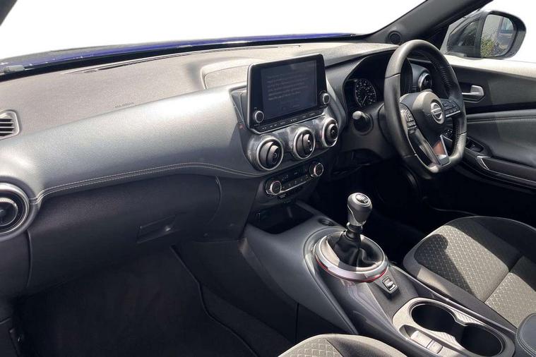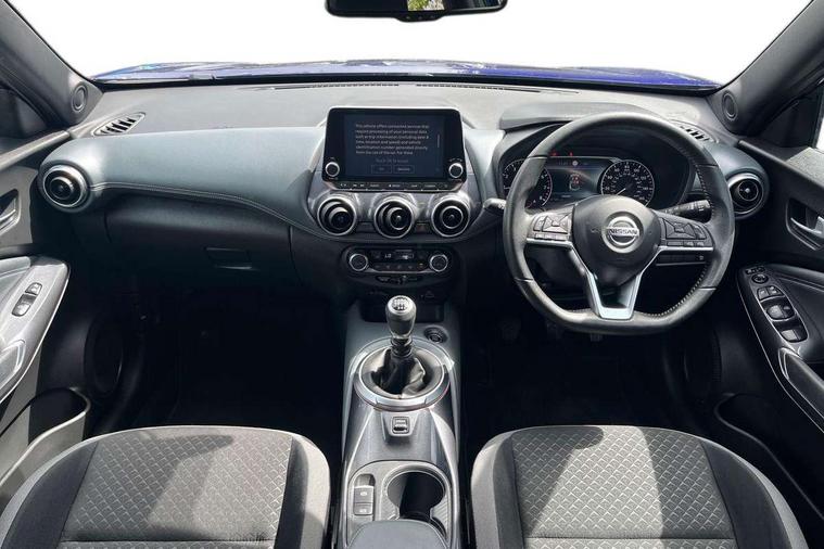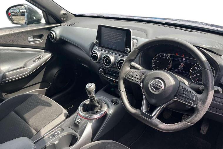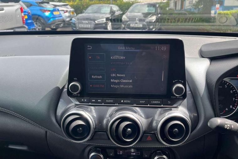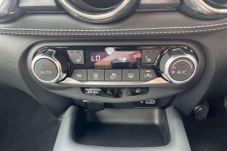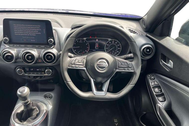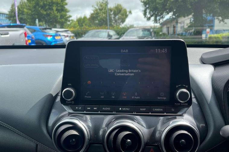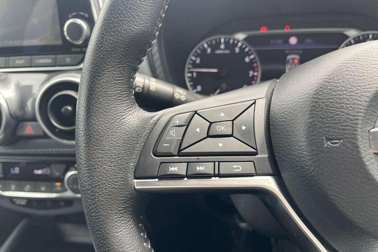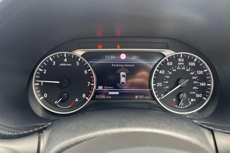 7" full colour TFT screen combimeter, 8" infotainment colour display with touch screen, Apple CarPlay and Google Android auto, Drive modes select (Eco, normal and sport), Emergency and breakdown call, Front parking sensor, Idle start/stop system, Intelligent lane intervention, Lane departure warning system, Nissan connect nav with TomTom traffic, Nissan connect services and Wifi connection, Outside temperature sensor, Power Steering, Rear parking sensor, Traffic sign recognition, Trip computer, Gasoline particulate filter, 6 speakers, Bluetooth system, USB, Aux-in and 12V socket, DAB Digital radio, Rear console USB port, Auto dimming interior rear view mirror, Automatic hazard signal with emergency stop signal, Body colour bumpers, Body colour door handles, Electrically adjustable door mirrors with integrated indicators, Follow me home headlights, Front and rear electric window with one touch driver and passenger window, Heated and auto folding door mirrors, High beam assist, LED daytime running lights, LED front fog lights, LED headlamps, LED rear fog lamp, LED rear lamps, Rain sensor windscreen wipers, Rear privacy glass, Rear spoiler, Rear wiper, Three blink turn signal, 3 height adjustable rear headrests, 60/40 split folding rear seat, Automatic climate control, Card holder on driver sunvisor, Cloth upholstery, Door ambient lighting, Driver and passenger sliding and reclining seats, Driver seat back pocket, Driver side rear coat hanger, Driver/passenger sunvisors and illuminated vanity mirrors, Front and rear cabin lights, Front armrest, Front door pockets with bottle holders, Front head restraints, Front/rear passenger grab handles, Gear console ambient circle lighting, Grey synthetic leather kneepad, Height adjustable driver's seat, Internal chrome door handles, Leather gearshift knob, Leather steering wheel, Luggage board, Luggage space lighting, Monoform sporty seats, Multifunction steering wheel, Passenger seat back pocket, Rear door bottle holders, Telescopic steering wheel adjustment, Two cupholders in front centre console, Two rear isofix child seat anchorage points with top tether, Voice recognition switch on steering wheel, Welcome light and console tray ambient lighting, ABS with EBD and brake assist, Active ride control, Active Trace Control, Driver and passenger airbags, Driver and passenger side airbags, Electric handbrake with auto hold function, Electronic Stability Programme (ESP), Front and rear curtain airbags, Height adjustable seatbelts, Hill start assist, Intelligent emergency braking with pedestrian and cyclist recognition, Seatbelt reminder for driver/front passenger and rear seats, Single tone horn, Three 3 point rear seatbelts, Traction control, Tyre pressure monitoring system, VDC Dynamic Vehicle Control, Ventilated rear brake discs, Alarm, Immobiliser, Intelligent Key with push button starter, Remote central locking,
