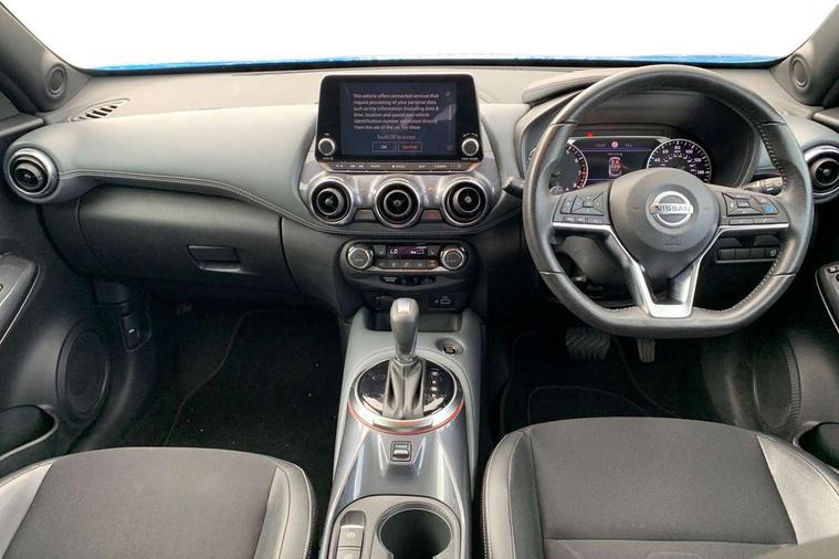 7" full colour TFT screen combimeter, 8" infotainment colour display with touch screen, Apple CarPlay and Google Android auto, Drive modes select (Eco, normal and sport), Emergency and breakdown call, Front parking sensor, Idle start/stop system, Intelligent lane intervention, Lane departure warning system, Nissan connect nav with TomTom traffic, Nissan connect services and Wifi connection, Outside temperature sensor, Power Steering, Rear parking sensor, Traffic sign recognition, Trip computer, Gasoline particulate filter, Bluetooth system, USB, Aux-in and 12V socket, Bose personal plus audio system with 8 speakers(4 speakers and 2 headrest speaker for driver and passenger seats), Bose personal sound stage control, DAB Digital radio, Rear console USB port, Auto dimming interior rear view mirror, Automatic hazard signal with emergency stop signal, Body colour bumpers, Body colour door handles, Electrically adjustable door mirrors with integrated indicators, Follow me home headlights, Front and rear electric window with one touch driver and passenger window, Heated and auto folding door mirrors, High beam assist, LED daytime running lights, LED front fog lights, LED headlamps, LED rear fog lamp, LED rear lamps, Rain sensor windscreen wipers, Rear privacy glass, Rear spoiler, Rear wiper, Thermaclear heated windscreen, Three blink turn signal, 3 height adjustable rear headrests, 60/40 split folding rear seat, Automatic climate control, Card holder on driver sunvisor, Cloth/Synthetic leather upholstery, Door ambient lighting, Driver and passenger sliding and reclining seats, Driver seat back pocket, Driver side rear coat hanger, Driver/passenger sunvisors and illuminated vanity mirrors, Front and rear cabin lights, Front armrest, Front door pockets with bottle holders, Front head restraints, Front passenger isofix child seat anchorage point, Front/rear passenger grab handles, Gear console ambient circle lighting, Grey synthetic leather kneepad, Heated front seats, Height adjustable driver's seat, Height adjustable passenger seat, Internal chrome door handles, Leather gearshift knob, Leather steering wheel, Luggage board, Luggage space lighting, Monoform sporty seats, Multifunction steering wheel, Passenger seat back pocket, Rear door bottle holders, Steering wheel mounted gearshift paddles, Telescopic steering wheel adjustment, Two cupholders in front centre console, Two rear isofix child seat anchorage points with top tether, Voice recognition switch on steering wheel, Welcome light and console tray ambient lighting, ProPilot pack - Juke, ABS with EBD and brake assist, Active ride control, Active Trace Control, Driver and passenger airbags, Driver and passenger side airbags, Electric handbrake with auto hold function, Electronic Stability Programme (ESP), Front and rear curtain airbags, Height adjustable seatbelts, Hill start assist, Intelligent emergency braking with pedestrian and cyclist recognition, Seatbelt reminder for driver/front passenger and rear seats, Single tone horn, Three 3 point rear seatbelts, Traction control, Tyre pressure monitoring system, VDC Dynamic Vehicle Control, Ventilated rear brake discs, Alarm, Immobiliser, Intelligent Key with push button starter, Remote central locking,