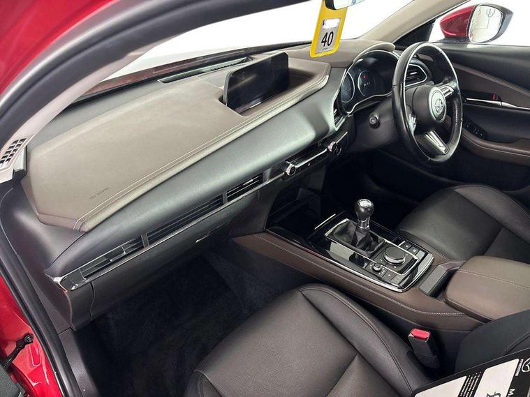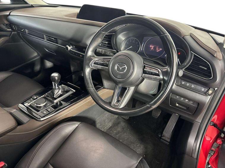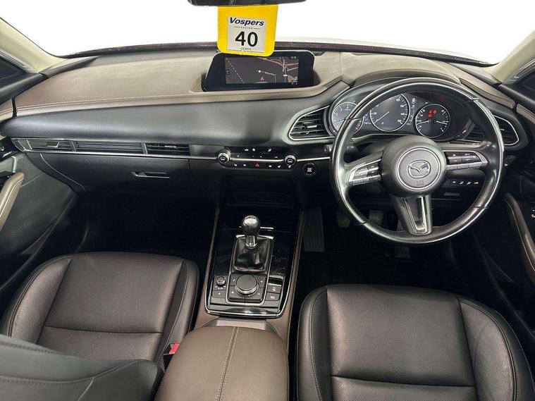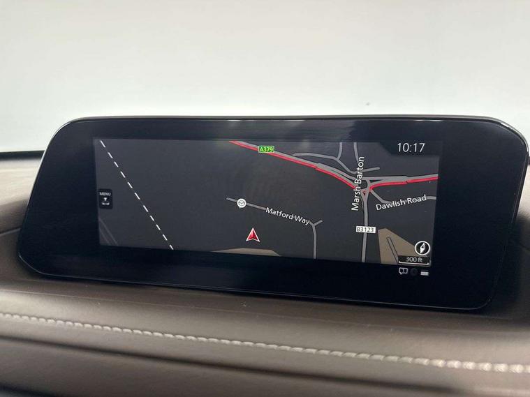 7" TFT Colour driver instrument panel display, 8.8" Colour centre touch screen display with Mazda Connect infotainment, Adaptive cruise control (Mazda radar cruise control), Apple car play/Android Auto, Blind spot monitoring with rear cross traffic alert, Driver attention alert system, E-call with GPS, Emergency stop signalling system, Engine start/stop button, Front and rear parking sensors, Integrated bluetooth, Integrated Mazda navigation system, Intelligent speed assist, Lane keep assist system (LAS) with Lane departure warning system (LDWS), Mazda connected services, PAS, Power lift gate, Reversing camera, Service indicator, Traffic sign recognition, Trip computer, Cylinder Deactivation, i-stop, 2 USB charging ports in front inner central armrest, AM/FM and DAB radio, Bose surround sound system with 12 Speaker, Bose center point, Bass match and audio pilot technology, Multimedia Commander including separate volume dial, Steering wheel mounted audio/bluetooth controls, Adaptive LED Headlights, Auto dimming driver's door mirror, Auto headlight levelling, B-pillar and C-pillar garnishes in piano black finish, Body coloured, electrically adjustable, heated auto power folding door mirrors with integrated indicators, Chrome finish signature wing in front grille, Coming/leaving home lighting function, Door mirrors with adjustable memory and tilt-down function when reversing, Dual chrome exhaust, Dusk sensing headlights, Electric front/rear windows with one touch auto up/down, Frameless auto dimming interior rear view mirror, Front kodo turn signal, Gloss black front grille, Gloss black rear roof spoiler, High beam assist, LED signature daytime running lights, Privacy glass (rear side windows and rear screen), Rain sensing front wipers with adjustable speed and intermittent wipe, Rear fog lights, Rear side wing doors, Rear wiper, Signature LED rear combination lights, Third brake light, 12V power outlet in centre console, 3 seat bench in 2nd row, 60/40 split fold down rear seats, Chrome horn pad ring, Chrome interior trim accents with steering wheel centre bezel, surround of engine start / stop button and glove box handle, Dashboard, door cards and front centre armrest in rich brown leather, Driver and front passenger visors with covered vanity mirror and driver ticket holder, Driver's seat power slide, recline, height, seat tilt and lumbar adjustment with head up display and driver door mirror memory, Driver, front passenger and two rear door storage, Driver, Front passenger and two rear grab handles with coathooks, Dual zone climate control air conditioning with rear air vents, Folding rear centre armrest with two cup holders, Front and rear (x3) head restraints, Front and rear LED lighting, Front armrest, Front centre storage with two cupholders with lid, Front passenger seatback pockets, Front passengers seat manual slide, recline and height adjustment, Gear shift indicator, Glovebox illumination, Heated front seats with 3 stage setting, Heated steering wheel, ISOFIX child seat anchorage points attached on outer rear seats, Leather upholstery with interior accents, Leather wrapped gear shift knob, Leather wrapped steering wheel with telescopic and tilt adjustment, LED luggage compartment lighting, Light roof headlining and pillars, Rear armrest inner material in cloth, Roof mounted sunglasses holder, Single front passenger seat, 3 point ELR front seat belts x2 with pretensioners, 3 point ELR rear seat belts, Anti-lock braking system (ABS), Drivers knee airbag, DSC - Dynamic Stability Control, Electronic parking brake with auto disengage function and auto hold function, Front and rear curtain airbags, Front dual stage driver and single stage front passenger airbags, Front passenger airbag cut-off switch, Front side airbags, Front smart city brake support, G-Vectoring control plus, Hill launch assist, Manual child lock in rear doors, Mild Hybrid system with regenerative braking, Seatbelt reminder for driver/front passenger and rear seats, Traction control system (TCS), Tyre pressure monitoring system (TPMS), Remote central locking with deadlocking and automatic door lock when driving, Smart keyless entry, Thatcham accredited alarm and immobiliser, Dark vinyl door panel inserts, 18" Silver alloy wheels, Emergency tyre repair kit,
