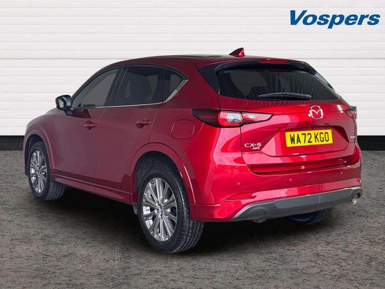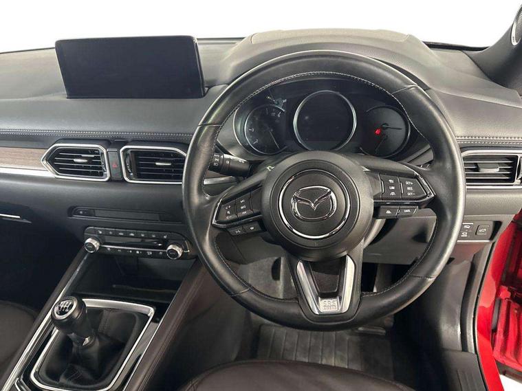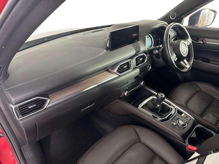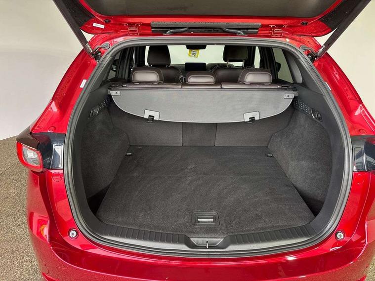 10.25" display with Mazda Connect infotainment, 360 degree surround camera, 7" colour TFT display, Apple car play/Android Auto, Blind spot monitoring with rear cross traffic alert, Bluetooth connectivity with voice control, Collision prevention assist, Connected services, Cruising Traffic Support, Driver attention alert system, Electric power steering, Emergency stop signalling system, Engine start/stop button, Forward collision warning, Front and rear parking sensors, Integrated navigation system, Intelligent speed assist, Lane departure warning system, Lane keep assist, Power liftgate, Qi wireless phone charging, Radar cruise control, Service indicator, Traffic sign recognition (TSR), Trip computer, Windscreen projected colour active driving display (HUD) with memory, i-stop, 2 USB sockets in rear, 2x USB sockets in front, AM/FM radio, Bluetooth audio streaming, Bose premium sound system with 10 speakers, DAB Digital radio, Multimedia Commander including separate volume dial, Steering wheel mounted audio controls, Adaptive LED Headlights, Automatic headlights, Body colour door mirrors, Body colour roof spoiler, Body coloured front and rear lower bumper mouldings, Body coloured tire arch and side mouldings, Bright finish signature wing, Coming/leaving home lighting function, Door mirror integrated indicators, Dusk sensitive headlamps, Electric front/rear windows with one touch auto up/down, Frameless auto dimming interior rear view mirror, Front grille in gloss black finish, Gloss black B and C pillars garnish, Gloss black front grille accent, High beam assist, Intermittent rear wash/wipe, LED auto levelling, LED daytime running lights, LED front fog lights, LED third brake light, Power folding and heated door mirrors, Power tilt/slide sunroof, Privacy glass (rear side windows only), Rain sensing front wipers, Real wood inlay dashboard panel, Rear side wing doors, Scuff plates, Shark fin antenna, Signature LED rear combination lights, Single large chrome tailpipes, Vinyl with real wood inlay door trim panel, Windscreen wiper de-icer, 12v electrical power outlet, 3 seat bench in 2nd row, 3 stage heated front seats, 40:20:40 Karakuri fold-flat seat system, 6 way electric adjustable passenger seat, 8 way electric driver seat with lumbar support + memory, Black roof lining, Cargo room flat floor board with waterproof undertray, Driver seat power slide, recline and height adjustment, Driver, Front passenger and two rear grab handles with coat hooks, Driver/passenger front seatback pockets, Driver/passenger sunvisors + illuminated vanity mirrors (drivers with ticket holder), Dual zone climate control, Folding centre armrest with 2 cup holders, Front and rear door pockets, Front centre storage with two cupholders, Front passenger seat power slide, recline and height adjustment, Front seat ventilation, Gear shift indicator, Heated outer rear seats, Heated steering wheel, Humidity sensor, Illuminated glovebox, Interior dome light with integral spotlight, ISOFIX child seat anchorage points attached on outer rear seats, Karakuri tonneau cover, Leather gear knob, Leather steering wheel with unique stitching and chrome centre bezel, Luggage compartment LED lighting, Luggage compartment power outlet, Nappa leather upholstery, Rear air vents, Rear headrests, Rear seat recline, Roof mounted sunglasses holder, Single front passenger seat, Three height adjustable head restraints, Tilt/height adjustable steering wheel, White interior LED illumination lighting, 3 point front seatbelts with pre-tensioners, 3 rear 3 point seatbelts, ABS, Advanced Smart City Brake Support - SCBS, Child locks on rear doors, Driver and front passenger side airbags, DSTC-Dynamic Stability and Traction Control, Dual front airbags, Electronic brake force distribution, Electronic parking brake with auto hold, ESP, Front and rear curtain airbags, Front passenger airbag deactivation, G-Vectoring control, Hill hold assist, Rear smart city brake support, Seatbelt reminder front and rear, Single stage passenger airbags, Smart brake support with forward obstruction warning, Tyre pressure monitoring system, Automatic door locking when moving off, Deadlock, Immobiliser, Power door locks, Remote central locking, Smart keyless entry, Thatcham Cat.1 alarm, Upper dashboard and door cards wood trim, 19" exclusive design bright alloy wheels, Tyre repair kit,