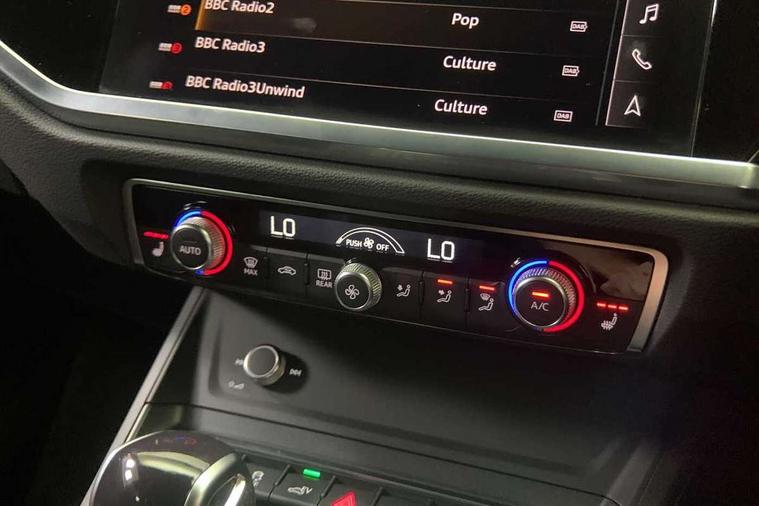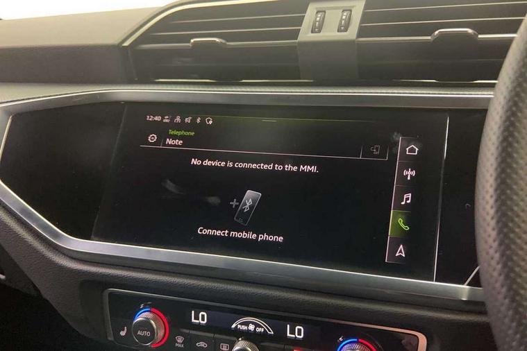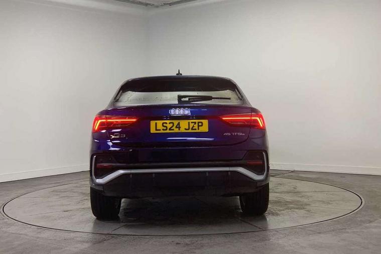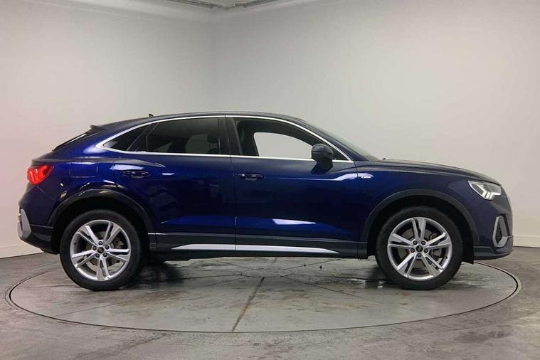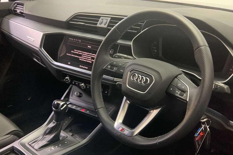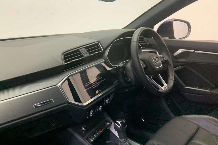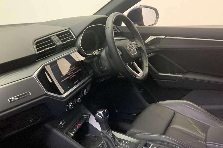 Audi drive select, Audi lane departure warning, Audi Virtual Cockpit - 10.25" display, Bluetooth interface, Camera based traffic sign recognition, Legal emergency call, MMI Navigation Plus with high resolution 10.1 inch touchscreen colour display, Power operated tailgate, Progressive steering, Service interval indicator, Smartphone interface includes wireless Apple carplay/Android Auto, Start stop system with recuperation, Voice control system with natural language interaction, 3 pin 10 amp domestic charging cable, 3.6 kw On-board charger, Standard suspension, Type 2 mode 3 32 amp charging cable, Type 2 socket for AC charging, 2 USB-C ports with charge and data functions, 6 passive loudspeakers, DAB digital radio module, Acoustic windscreen, Aluminium window trim, Auto dimming frameless rear view mirror, Diffuser grille in grained matt black, Diffuser trim in selenite silver, Electrically folding, adjustable and heated door mirrors with integrated LED side indicators and kerb view function for passenger side, Front and rear electric windows, Front fog lights, Front side air inlets in selenite silver, Front underbody protection in manhattan grey paint finish, Grille surround in aluminium silver matt, High gloss black finish B and C pillars, LED Dynamic rear indicators, LED headlights with LED daytime running lights, LED rear lights, LED third brake light, Privacy glass dark tinted rear and rear-side windows (from B-pillar backwards), Radiator grille in anthracite black with inlay in matt aluminium silver, Rain and light sensors, Rear side wing doors, Rear underbody protection in matt black, Rear wiper, S line badges on front wings, S line front and rear bumpers and side skirts in contrasting Manhattan grey paint finish, Side skirt insert in matt Platinium grey, Variable front intermittent wipers, 12V socket in rear centre console, 3 seat bench in 2nd row, 3 spoke leather multifunction steering wheel features S badging and grips in perforated leather with contrast stitching, 40:20:40 folding with manual adjustment for 60:40 forwards/backwards position and backrest angle, Adjustable rear seat bench/backrest with centre armrest and cupholder, Black cloth headlining, Dual zone electronic climate control, Front and rear black floor mats with contrast stitching, Front and rear headrests, Front and rear roof module including reading lights, Front centre armrest, Glove compartment lighting, Height and reach adjustable steering wheel, Illuminated door sill trims with S logo, ISOFIX child seat mounting for front passenger with airbag deactivation and outer rear seat including top tether attachment point for outer rear seats, Luggage compartment light right in white, Luggage compartment sill protection in stainless steel, Manual front seats with height adjustment, Perforated leather gearknob, Single front passenger seat, Stainless steel pedals, Ambient lighting pack - Q3, Non smoking pack - Q3, 3x3 point rear seatbelts, 6 airbags - Driver, front passenger, curtain and side windows, Audi pre-sense front with pedestrain and cyclist recognition, Electrically operated child locks on rear doors, Electromechanical parking brake, Electronic stabilisation control including ABS, ASR and EDL, Front seatbelt reminder, Hill descent control, Hill hold assist, Pre sense basic, Seatbelt monitoring, Tyre pressure warning, Warning triangle and first aid kit, Anti theft alarm, Anti theft wheel bolts, Immobiliser, Remote central locking, Aluminium look interior elements, Black dashboard, Dark matt brushed aluminium inlay, Detail dashboard around MMI touch colour display in glass look, black with surround in aluminium look, Leatherette door armrest, Tool kit, Tyre repair kit,