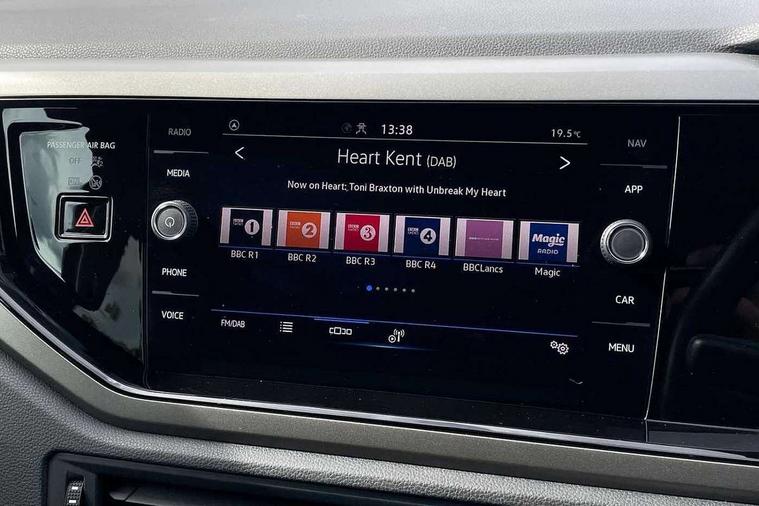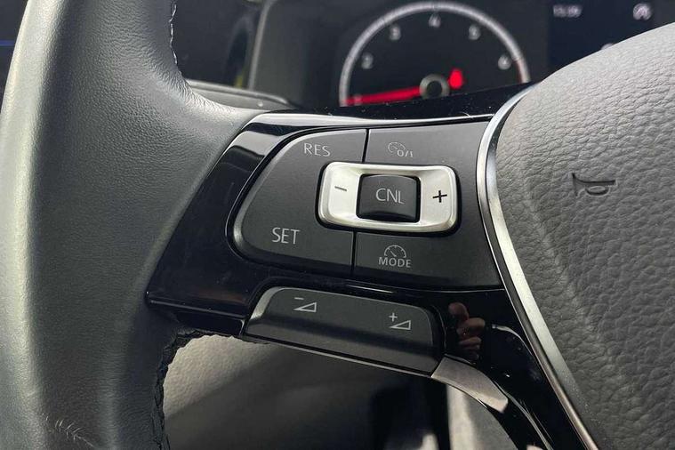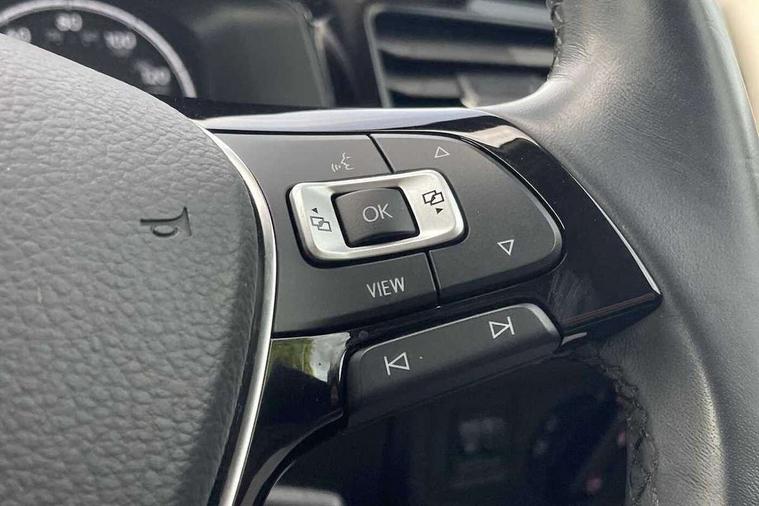 Cruise control + speed limiter, Digital clock, Driver alert system, Emergency call service, Multifunction computer plus, Power assisted speed sensitive steering, Speedo and rev counter, electronic odometer, trip, service interval display and fuel gauge, Start/stop system, Volkswagen connect, Warning buzzer and light for front seatbelts unfastened, Wireless app connect, Battery regeneration during braking, Galvanished body, Diversity antenna for FM reception, Front and rear 6 speakers, Black grille with chrome surround, Black radiator grille with chrome louvres, Body colour bumpers, Body colour door handles, Body colour rear spoiler, Body coloured side sills, Electric front windows, Electrically adjustable and heated door mirrors with reverse activated kerb view adjustment on passenger's side, Front windscreen washers and wipers with 4 speed intermittent delay, Heated rear window with auto timer, High level 3rd brake light, LED daytime running lights, LED rear number plate lights, Rear electric windows, Rear windscreen washer and wiper with interval delay, reverse activated, 2 bag hooks in luggage compartment, 2 front and 2 rear reading lights, 2 front cupholders and 12 V socket with cover, 3 rear head restraints, 4 grab handles, 60/40 split folding rear seat, Centre console storage with open storage compartment, Chrome interior door handles, Driver and front passenger seat height adjustment, Driver and front passenger sunvisors with illuminated vanity mirrors, Dust/pollen filter, Folding rear seat backrest, Front head restraints, Front seat backrest storage pockets, Gear lever gaiter in black trim surround, Glovebox, Handbrake grip button in chrome effect, Height/reach adjustable steering column, Instrument lighting, adjustable panel illumination, Interior light with delay, Isofix Preparation 2 Rear child seats, Leather gear knob and handbrake grip, Leather multifunction steering wheel, Luggage compartment cover, removable, Luggage compartment lighting, Luggage compartment with variable load floor, Storage compartment in front doors, Storage compartment in rear doors, Storage compartment under front seats, Sunglasses holder, 3 point height adj front seatbelts + pretensioners, 3x3 point rear seatbelts, ABS, Automatic post collision braking, Driver/front passenger airbag, Drivers and front passengers safety optimised head restraints, ESP with EDL + ASR, Front and rear passenger curtain airbags, Front disc brakes and rear drum brakes, Front passenger airbag deactivation, Front seat side impact airbags, Hill hold control, Hydraulic Brake Assist (HBA), Single tone horn, Tyre pressure monitoring system, Alarm with interior protection and deactivation via infotainment system, Electronic engine immobiliser, Remote central locking with 2 remote folding keys, Air vents in High gloss black, Limestone grey decorative inserts,