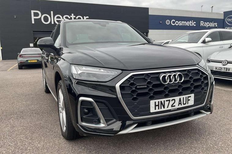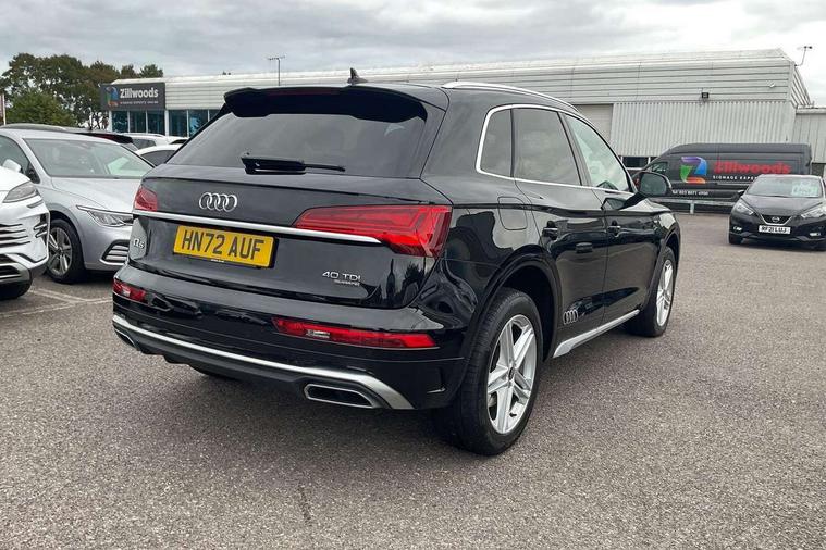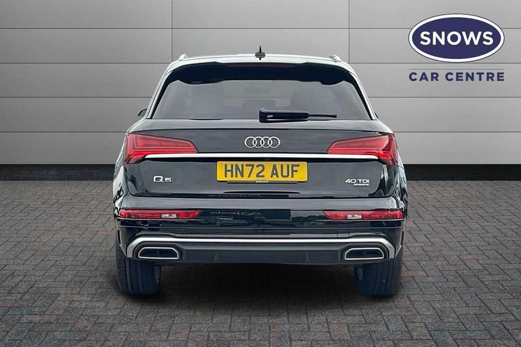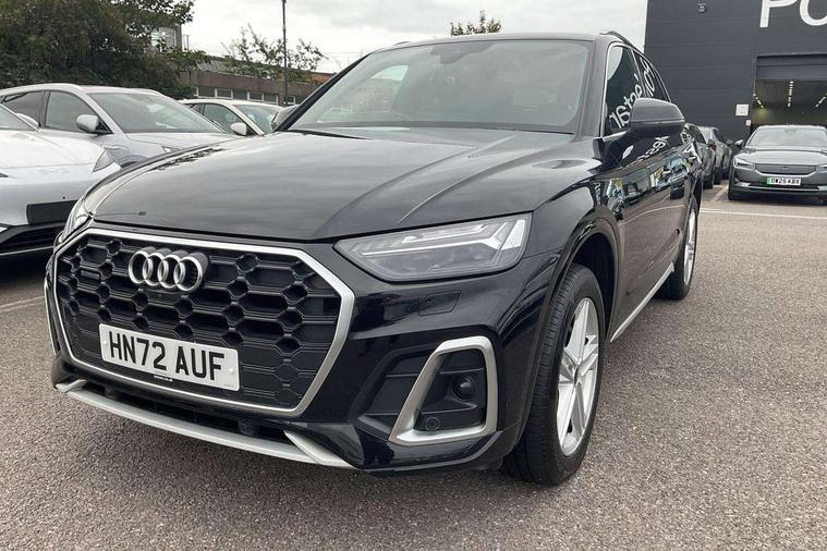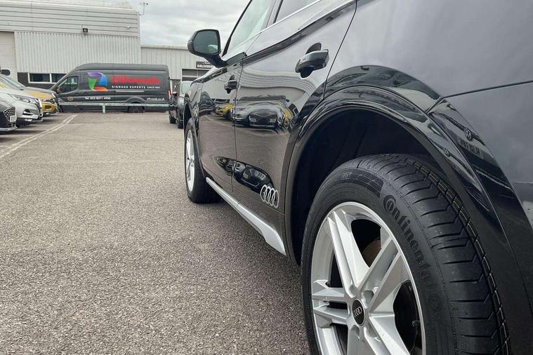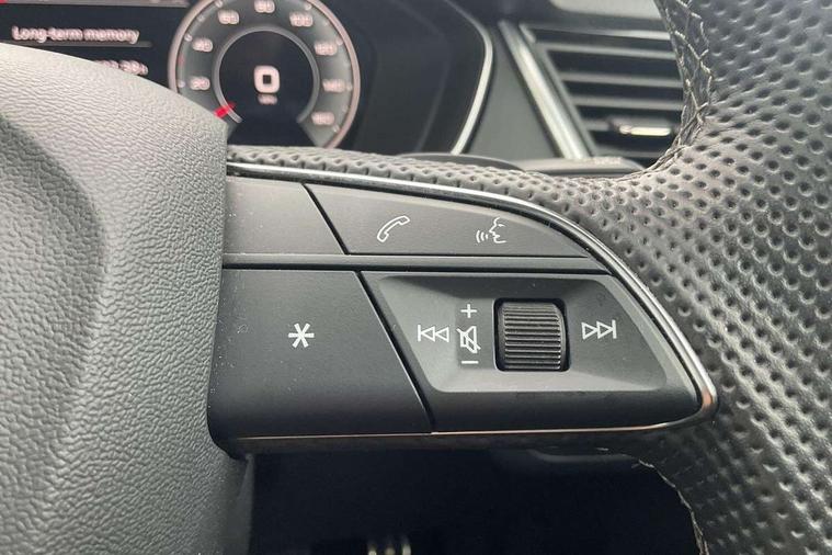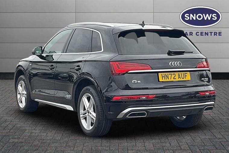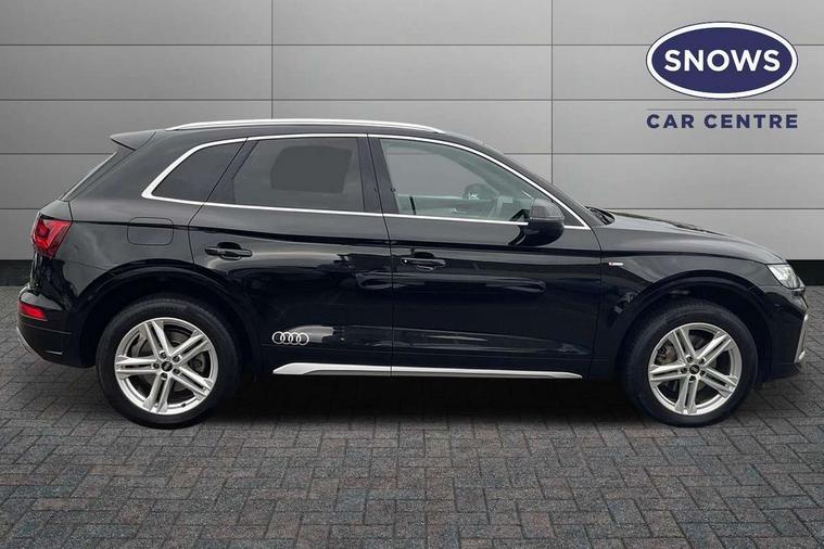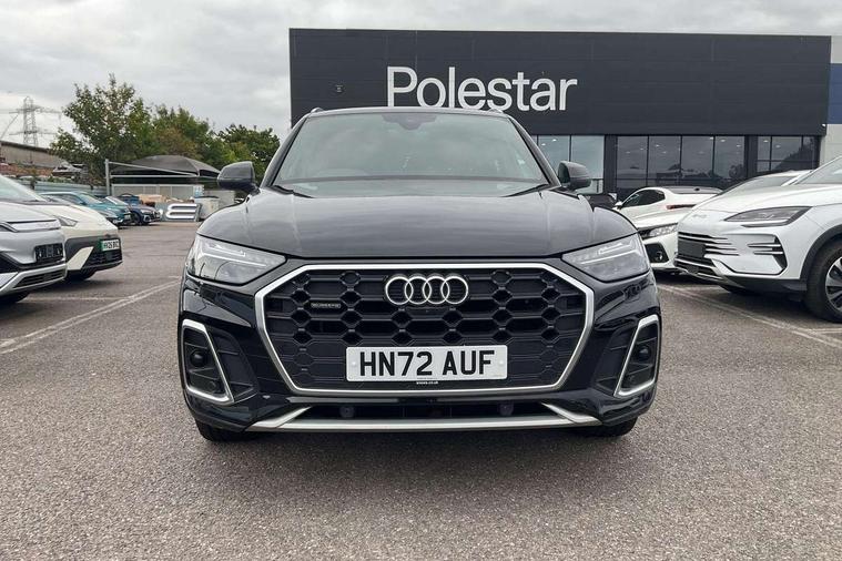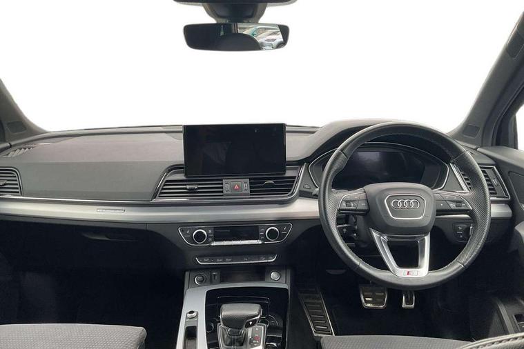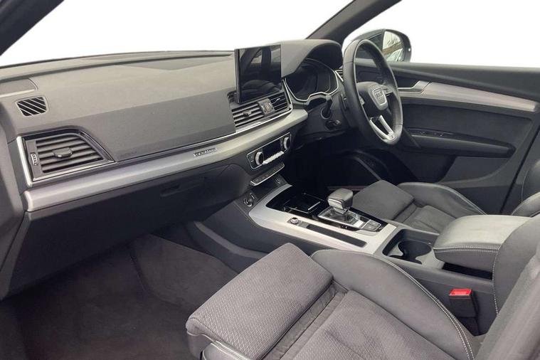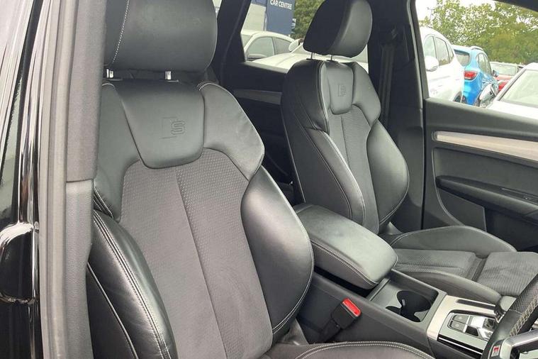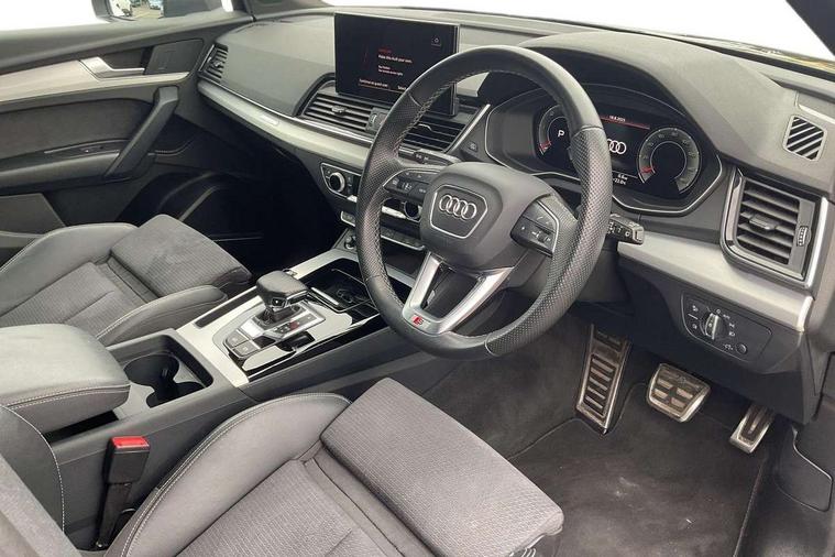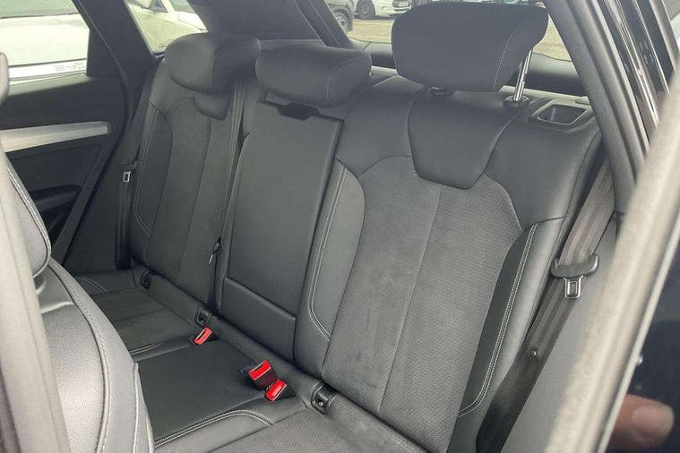 Audi connect safety and service (e-call), Audi connect with Amazon Alexa Integration, Audi drive select, Audi virtual cockpit plus with 12.3" screen and three different layout designs, Audi wireless smartphone interface, Automatic start-stop system with coasting functionality and efficiency programme, Bluetooth interface, Electro - mechanical power assisted steering, MMI navigation plus with 10.1" touch screen, Power tailgate, Reversing camera, Service interval indicator, Voice control system with Audi hotword activation "Hey Audi", Diesel particulate filter, Quattro on demand, S line sports suspension, DAB Digital radio, Acoustic windscreen, Aluminium roof rails, Audi matrix LED headlights with dynamic front and rear indicators, Auto dimming door mirrors, Auto dimming rear view mirror, Automatic headlight adjustment, Automatic headlights and windscreen wipers, Body colour bumpers, Body colour door mirrors, Body colour rear diffuser with matt aluminium silver surrounds, Body colour underbody protection, Chrome plated exhaust trims, Daytime running lights, Door sills in Selenite silver, Electric adjustable/heated/folding door mirrors, Front air inlet surrounds in aluminium, Front and rear electric windows, Front radiator grille in honeycomb design, Headlight washers, High level LED brake light, Lower bumpers painted in contrast Manhattan grey, Rear chrome trim strip below lights, Rear privacy glass and rear side windows, Rear side wing doors, Rear wiper, Roof bars, S Line badges on the front wings, S Line front and rear bumpers, S Line rear spoiler, S Line side skirts, 2 x USB charging port with aux input socket, 3 rear headrests, 40:20:40 split folding 3 rear bench seat in 2nd row with rear centre armrest, Black cloth headlining, Comfort front centre armrest, Contrast stitching on seats, steering wheel and gear lever gaiter, Deluxe 3 zone electronic climate control, Front/rear floor mats, Gear lever in black leather, Heated front seats, Height adjustable front head restraints, Height/reach adjustable steering column, Illuminated door sill trims with S logo, ISOFIX child seat mounting and top tether, Luggage compartment cover, Manual seat adjustment with 4-way electric lumbar support, Removable luggage compartment floor, Single front passenger seat, Stainless steel pedals, Sunvisors with vanity mirrors, High gloss pack - Q5, LED interior light pack - Q5, 3 point seatbelts on all seats, 6 airbags - Driver, front passenger, curtain and side airbags, Electrically operated child locks on rear doors, Electromechanical parking brake, Electronic stabilisation control including ABS, ASR and EDL, Front passenger airbag deactivation, Hill descent control, Hill hold assist, Multi collision brake assist, Pop-up bonnet for pedestrian protection, Pre sense city, Seat belt force limiter, Seatbelt monitoring, Tyre pressure warning, Warning triangle and first aid kit, Anti theft alarm, Anti-theft wheel bolts, Keyless Go access/ignition system, Remote central locking, Matt brushed aluminium inlays,