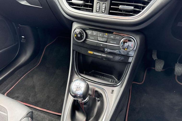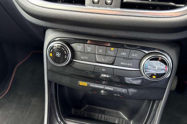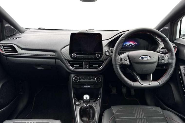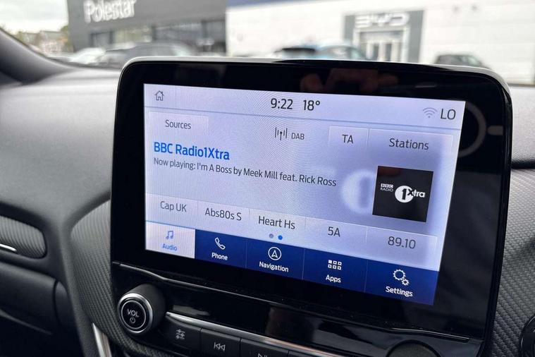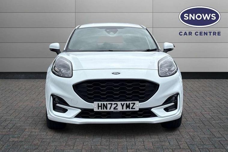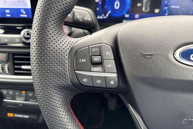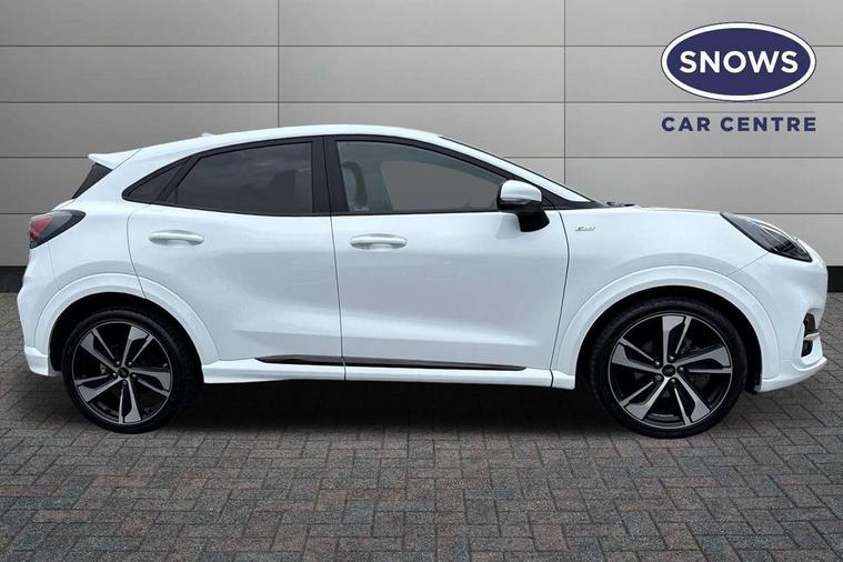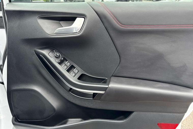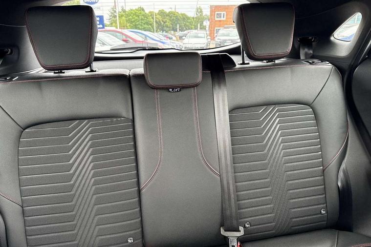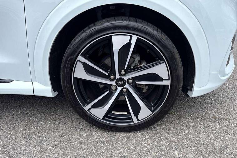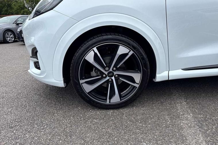 Driver impairment monitor, Emergency call service, Ford easy fuel, Full digital 12.3" instrument cluster, Lane keeping aid with lane departure warning, Power assist steering, Power start button, Rear parking sensor, Selectable drive modes(Normal, sport, Eco, trail, slippery), Speed sign recognition, Sport suspension, Automatic headlights with auto high beam, Automatic rain sensing wipers, Front fog lamps, LED daytime running lights, LED rear lamps, Power foldable heated door mirrors with puddle lamps, Privacy glass to side rear windows and tailgate glass, Quickclear heated windscreen, Rear side wing doors, Rear wiper, ST-Line body styling kit with unique grille and large body colour rear spoiler, Third brake light, 3 seat bench in 2nd row, Centre console with armrest and stowage, Ford megabox extended bootspace, Front and rear head restraints, Front floor mats, Manual 4 way driver seat adjust with lumbar adjustment, Manual 4 way passenger seat with lumbar seat adjustment, Sensico partial premium upholstery, Single front passenger seat, ST-Line flat bottomed sensico leather steering wheel with leather handbrake and aluminium gear knob, Wireless charging pad with electronic air temperature control (EATC), B&O Premium Audio system + Ford SYNC 3 navigation pack - Puma, 3 rear seatbelts, Child safety lock, Electronic stability control (ESC) and hill start assist, Pedestrian/cyclist detection & post-collision braking, Pre collision assist system, Tyre pressure monitoring system (TPMS), Thatcham alarm, Carbon look interior deco spears,