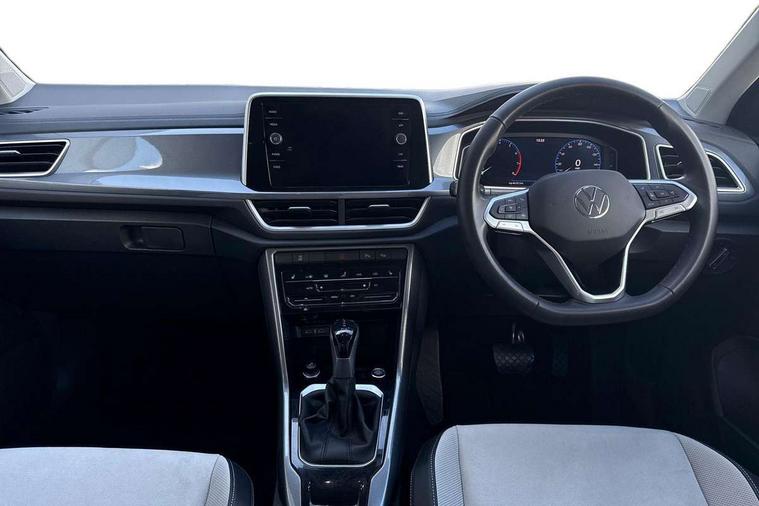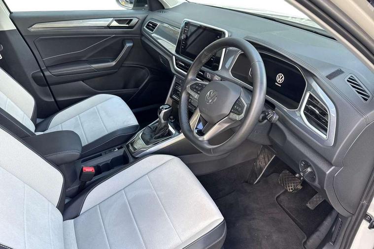 10.25" Digital cockpit pro, Bluetooth mobile phone interface, Driver alert system with fatigue detection, Driver tips and journey analysis, Emergency call service, Lane keeping system Lane Assist, Modified key software - reduce switch off time for key status change to Long no motion, Online services, Park assist including front and rear parking sensors, Service interval indicator, Tailgate/trunk lid release from outside, Think blue trainer driver tips and journey analysis, Warning sound and light for front seatbelts unfastened, Wireless app connect, Battery regeneration during braking, Start/stop function with battery regeneration, Diversity antenna for FM reception, Music playback - MP3, WMA and AAC files, Premium USB cable in choice of either Apple or Android smartphone compatibility, SD card slot, Simultaneous pairing of 2 compatible mobile devices, Title and cover art display, We Connect and We Connect Plus functionality, 3rd brake light, Auto dimming interior rear view mirror, Automatic hazard lights activation under emergency braking, Automatic headlight control with LED separate daytime running lights with coming/leaving home function, Body colour sports bumpers with silver metallic underbody fascia, Dynamic headlight range control with self adjusting whilst driving, Extended roof spoiler, Exterior mirrors aspherical on driver side, convex on front passenger side, External USB type C socket and charging sockets, Front windscreen wiper with intermittent wipe and 4 position delay, Heated rear window, LED rear combination lamps, LED rear number plate lights, LED tail lamp rear comination lamps, Light mode for poor weather, rain, fog or snow, Power windows with comfort operation and circuit breaker, Rain sensor, Rear exhaust tailpipe, Rear fog light on one side and reversing lights on both sides, Rear side wing doors, Rear wash/wipe with intermittent wipe setting, Remote electrically foldable door mirrors, puddle lights and reverse activated passenger's door mirror, 12V power socket in centre console, 3 rear head restraints, 3 seat bench in 2nd row, 4 load lashing points in luggage compartment, Air care climatronic air conditoning system with active combination filter and 2-zone temperature control, Chrome plated radiator grille inserts, air vent surrounds and light switch surrounds, Door and side trim panel with leatherette insert, Drawer under drivers seat, Front + rear carpet mats, Front centre armrest, Front comfort sports seats, Front cupholders x 2, Front footwell illumination, Instrument lighting, white adjustable panel illumination, Interior ambient lighting and surround lighting, Interior light delay, Isofix child seat preparation, Leather gearshift handle, LED interior light with switch off delay/dimmer and 2 front/rear LED reading lights, Load-through provision with cup holder when folded down ('Unsplit rear seat bench, split folding backrest, with centre armrest), Luggage compartment lighting, Non-folding front passenger seat backrest, Single front passenger seat, Storage compartment in left and right luggage area, Storage compartment in rear doors, Storage compartments in driver and front passenger doors, Sunvisors with illuminated vanity mirrors, Variable boot floor, height adjustable and removable, Driver assistance pack without proactive passenger protection - T-Roc, 3 point height adj front seatbelts + pretensioners, 3 point seatbelts in outer rear with ECE label, ABS, Child locks on rear doors, Driver and front passenger airbag with front passenger airbag deactivation, Driver and front passenger safety-optimised head restraints, Drivers seatbelt reminder, Electronic parking brake, Electronic Stability Control (ESC) inc EDL (Electronic Differential Lock) and ASR (Traction Control), Front and rear passengers curtain airbag system including front side airbags, Front assist with city emergency braking and pedestrian monitoring, Front seat side impact airbags, Predictive pedestrian protection, Rear disc brakes, Single tone horn, Tyre pressure loss indicator, Volkswagen roadside assistance, Anti-theft alarm system with interior monitoring, backup horn, and towing protection, Remote central locking with SAFELOCK, radio remote control with 2 remote control folding keys, Trims for alloy wheels,
