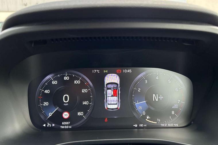12.3" Active TFT crystal driver's instrument display, 9" centre console portrait touch screen, Adjustable steering wheel force, Bluetooth hands free telephone kit, Drive mode selector, Lane keep assist with driver alert control, Oncoming Lane Mitigation, Power operated tailgate, Sensus navigation with European mapping and traffic information, Speed limiter, Speed sensitive steering, Voice activated control for key functions, Volvo on call, Sports chassis, DAB Digital radio, Steering wheel mounted remote controls, Adaptive brake lights with high level LED brake lights, Auto dimming interior mirror, Automatic headlamp levelling, Black stone door mirrors, Black stone roof, Colour coordinated auto folding and heated power door mirrors, Dark tinted windows for rear door side windows and cargo compartment, Dual integrated exhaust pipes with high gloss black surround, Front aluminium tread plates, Front and rear electric windows, High gloss black front and rear skid plate, High gloss black lower front bumper, High gloss black mesh front grille with high gloss black surround, High gloss black roof rails, High gloss black sensus surround deco, High gloss black window trim, Home safe and approach lighting, LED Headlights + Active high beam incorporating daytime running lights, Rain sensor with automatic windscreen wiper activation, Rear side wing doors, Rear wiper, Roof antenna, Roof spoiler, Visible VIN plate, 12V socket in front tunnel console and luggage compartment, 2 zone electronic climate control and rear air vent, 3 seat bench in 2nd row, 60/40 versatile split folding rear seat, A-pillar parking ticket holder, Centre console cupholders and storage, Charcoal headlining, Driver's side lower dashboard credit card storage compartment, Front footwell illumination, Front headrests, Front reading light and theatre lighting, Front seat cushion extensions, Glovebox bag hook, Height/reach adjustable steering column, Illuminated glovebox, Illuminated luggage compartment, Illuminated vanity mirrors, Isofix attachments on outer rear seats, Key integrated remote, Leather gearknob, Load protection net, Multi directional lumbar support, Rear armrest / integral cup holders / storage tray, Rear coat hook, Single front passenger seat, Sports floor mats, Sports pedals, Sports tailored steering wheel, Underfloor cargo storage, 3x3 point rear seatbelts, City safety includes pedestrian, cyclist and large animal detection and front collision warning with full auto brake, Drivers knee airbag, Dual stage driver/passenger airbags, Electronic parking brake with auto hold, First aid kit, Front and outer rear seatbelt reminder and pretensioners, Front seats SIPS airbags, Hill descent control, Hill start assist, Inflatable curtain, Passenger airbag cut-off device, Road sign information display, Run off Road Mitigation, Run off Road Protection, SIPS (Side Impact Protection System), Slippery road and hazard light alert, Stability and Traction Control with Spin control, Engine Drag Control and Corner Traction Control, Tyre pressure monitoring system, Vehicle deceleration control with Anti-lock Brake System, Electronic Brake Distribution and Emergency Brake Assist, Warning triangle, WHIPS whiplash protection system - front, Anti-theft alarm including immobiliser/volume sensor + level sensor, Care key with user defined top speed, Key integrated remote control central locking + fuel flap with deadlocking system and auto open/close power windows, Locking wheel nuts, Private locking for tailgate, Cutting edge aluminium inlay, Lower dashboard, tunnel console and door panel in charcoal,